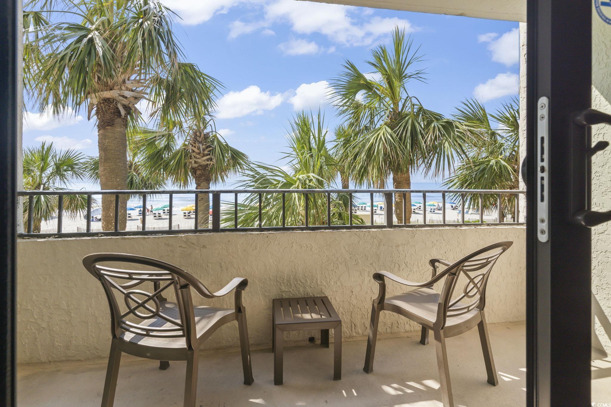 Enjoy the ultimate beachfront escape in this fully furnished, oceanfront condo located in the highly sought-after Ocean Reef Resort North Tower. Inside, youll find a thoughtfully arranged open layout with two queen beds, a cozy sitting area, and a dining nook. The kitchenette includes a full-size refrigerator, microwave, and coffee makereverything you need for added comfort and convenience during your stay. The spacious bathroom offers a large vanity, full tub and shower combo, and tile flooring for easy upkeep. Step outside to your private balcony and take in stunning views of the Atlantic Ocean framed by swaying palm trees. Its the perfect place to relax with your morning coffee or unwind after a day at the beach. Ocean Reef Resort offers a wide range of amenities including indoor and outdoor pools, a lazy river, waterpark, fitness center, game room, shuffleboard, on-site dining, and direct beach access. Located along the quieter northern end of Myrtle Beach, the resort is just minutes from popular attractions, golf, shopping, and restaurants. Whether youre looking for a personal retreat or a turn-key investment property, this oceanfront condo delivers on both lifestyle and location. Schedule your showing today and start living the coastal dream.