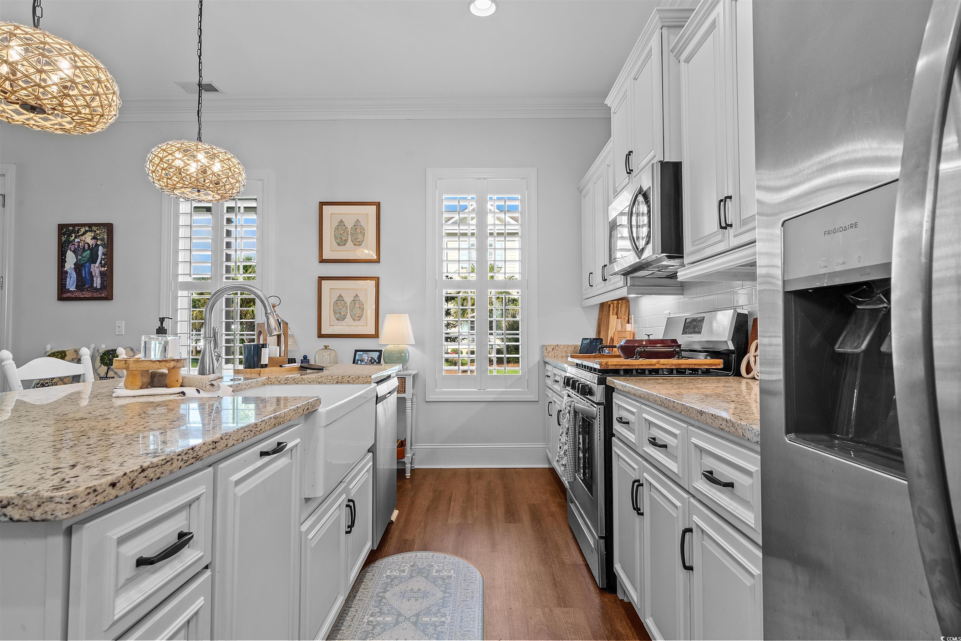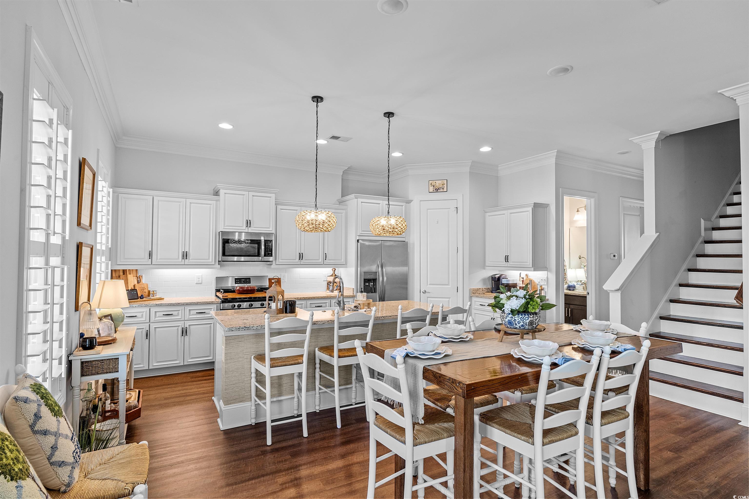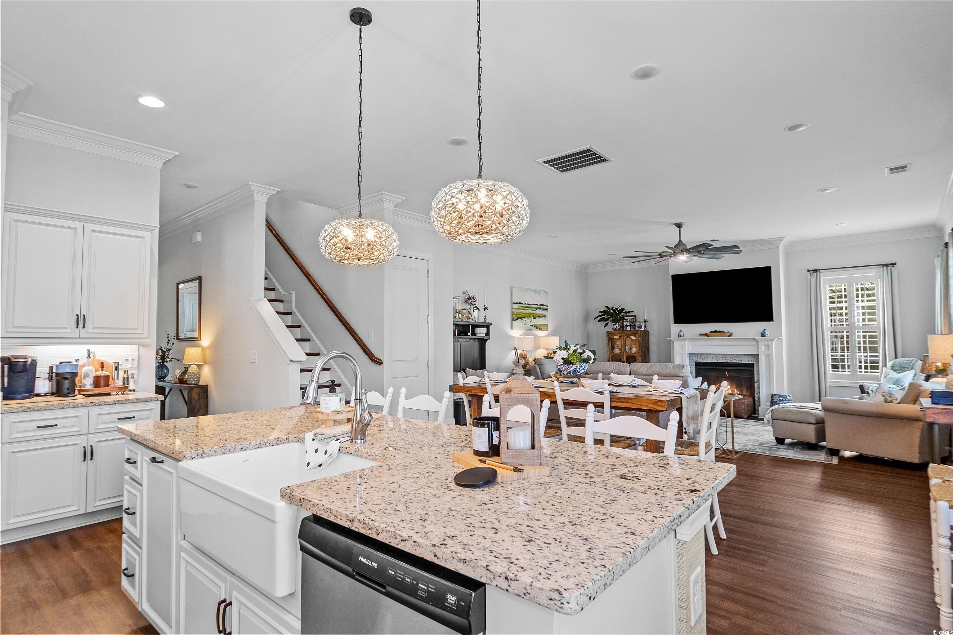 North Myrtle Beach... Cherry Grove Beach Section... Spectacular 4 Bedroom 3.5 Bath, 2 Car Garage Charlestonian Low Country Home Located in the Well Sought After Charleston Landing a Cherry Grove Beach Inlet Community... Enter this Magnificent Home from the Covered Charming Low Country Front Porch with Pine Plank Ceiling and Recessed Lighting into the Living Area Greeted with Flowing Wood Design Floors Open to the Kitchen and Dining Areas... The Gourmet Kitchen Features Granite Countertops, Elkay Farmhouse Sink, Subway Tile Backsplash, Under Cabinet Lighting, Stainless Steel Appliances, Gas Range, Working Island with Breakfast Bar- Additional Counter Space, Pendant Lighting and Pantry... Great Room Features a Glowing Natural Gas Fireplace and Upgraded Ceiling Fan... Private Hallway Leads to the Large Open Master Bedroom Suite Featuring a Ceiling Fan, Walk-In Closet Space, Master Bath with Granite Countertops, Double Sinks and Walk-In Tile Shower... On the 2nd Floor are 3 Bedrooms Including an Additional 2nd Master Suite with a Private Bathroom offering Granite Vanity Counter Tops, Tub Shower combination and a Bonus/ Flex Room that could be transformed into an Office, Game Room or 5th Bedroom... Jack and Jill Style Bathroom with a Double Grantie Vanity Sink Granite Sink, Shower Tub Combination with Direct Access from 2 Bedrooms... Laundry Room to Help with Daily Tasks.... LED Recessed Lighting, 10' Smooth Ceilings and 9' Doorways, Tankless Gas Hot Water Heater, Plantation Shutters and Custom Crown Molding for a Finishing Touch Throughout... Beautiful Furnishings, Window Treatments and Decor Convey... Oversized 2 Car Garage... HOA Amenities include an Inlet/ Marsh Front Pool with Cabana and Amazing Coastal Views of the Ocean, Boat Storage, Playground, Basketball Court as well as Lake front Gazebo... Convenient Short Golf-Cart Ride or Bike to the Beach... Close to Main Street North Myrtle Beach Festivities, Entertainment, Recreational Facilities, Restaurants, Hospitals, Schools, Malls, Outlets, Grocery Plaza's, Sports Grills, Inlets, Rivers, Fishing, Golf, Marinas, Boat Landings and the Most Spectacular White Sandy Blue Water Ocean Beaches of the Grand Strand's Great Atlantic Ocean... This Well-Cared-For-Home Truly has All the Comfort, Convenience and an Unbeatable Location. Your Time has come to Enjoy the Best of Coastal Living!