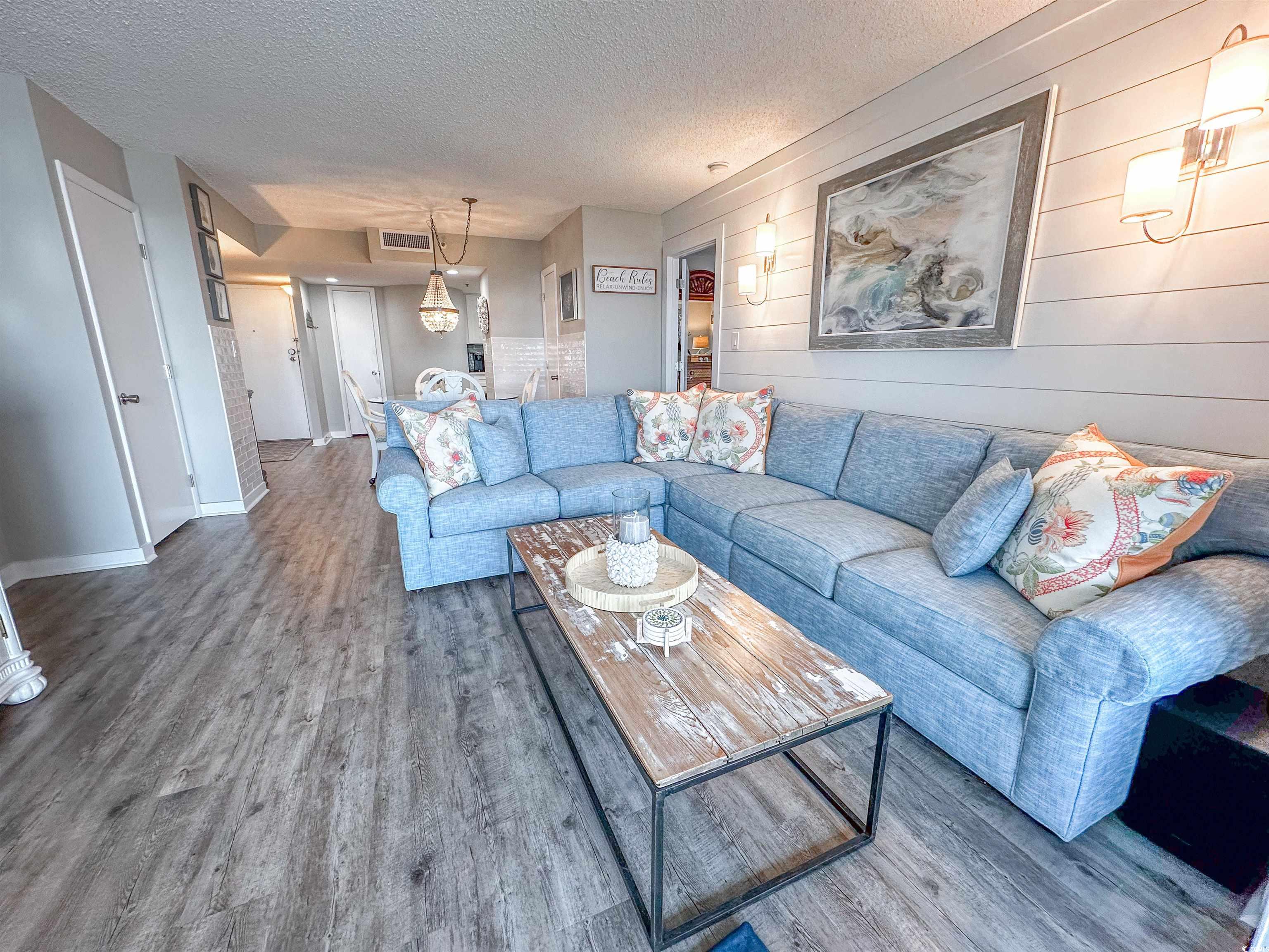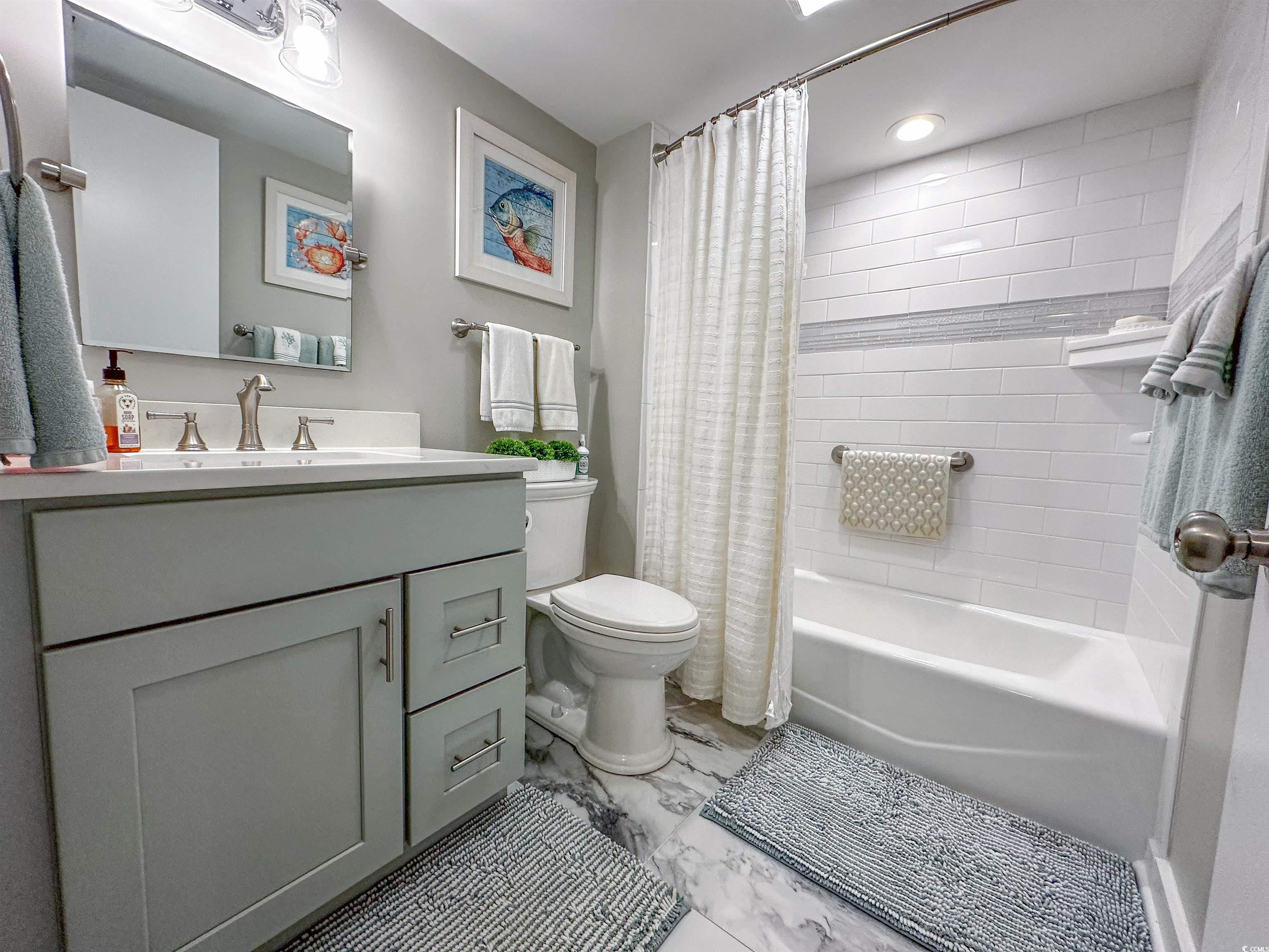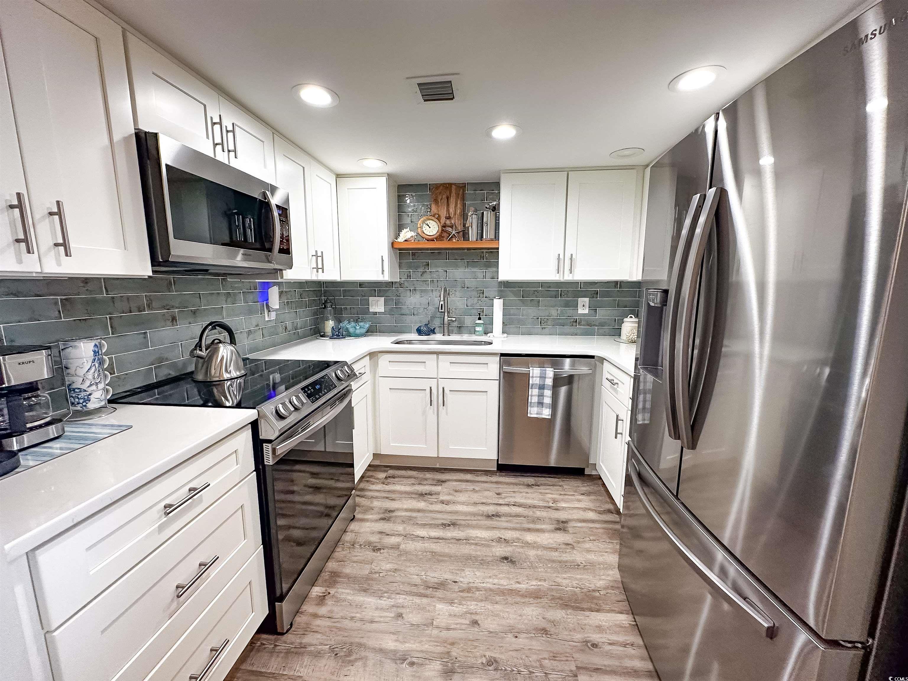 This home looks like something right out of HGTV -- maybe even better!!! This two bedroom, two full bathroom residence is in Kingston Resort's boutique oceanfront tower... The North Hampton. A smaller, quiet building (only 125 residences) that's locked 24 hours a day and offers a private, year-round, indoor pool. 1,532 Total sq. ft. inclusive of a 44' long deck that's 8' deep overlooking the ocean! The interior is nothing less than stunning! Recently renovated with shaker style cabinets, quartz countertops, stainless steel appliances and a gorgeous backsplash in the kitchen. LVP flooring in the main areas and bedrooms and elegant tile in the bathrooms. The living room is charming, highlighted by a shiplap wall. Walk into an enormous master suite with a beautifully updated bath -- tile, flooring, vanity, lighting/fixtures and a dazzling walk-in shower. This is a ""split-bedroom"" floorplan with bedrooms on the opposite sides of the residence. You'll find the guest bedroom equally large and guest bath very inviting. Immaculate condition!! Kingston Plantation is a 145-acre, master planned community in the heart of Myrtle Beach. Kingston offers a combination of amenities and preserved natural environment that's unparalleled. One-half mile of white sand beach, twelve acres of freshwater lakes and mature trees, all surrounded by beautifully manicured grounds. The Plantation offers amenities such as a magnificent Spa and Fitness Center, four clay and hard surface tennis courts, four pickleball courts, multiple pools, badminton, croquet, beach volleyball and much more! Kingston offers a selection of one, two, three and four bedroom villas, townhomes, lakefront lodges and oceanfront high-rises through the community. Use of developer-owned amenities is subject to change.