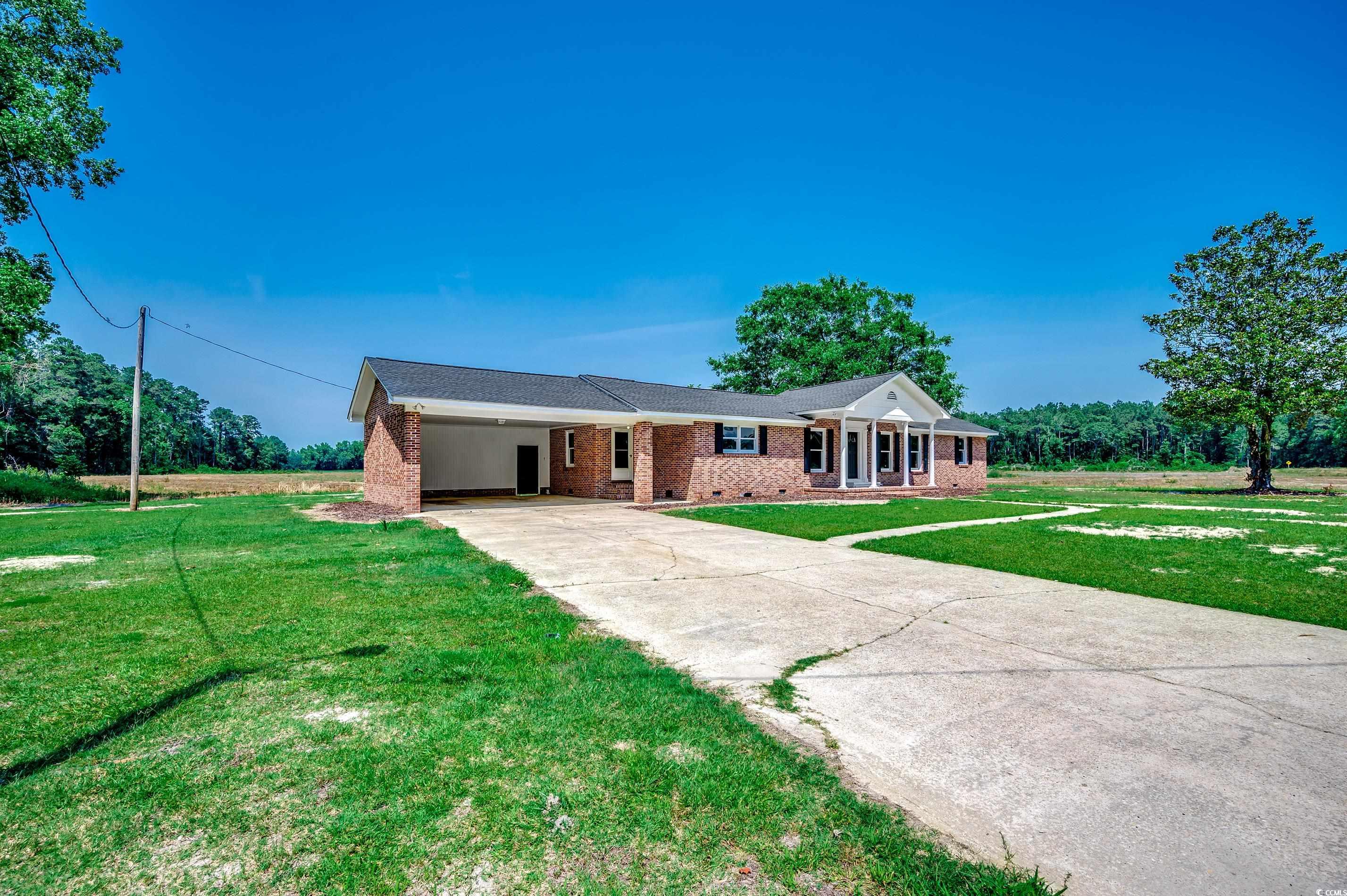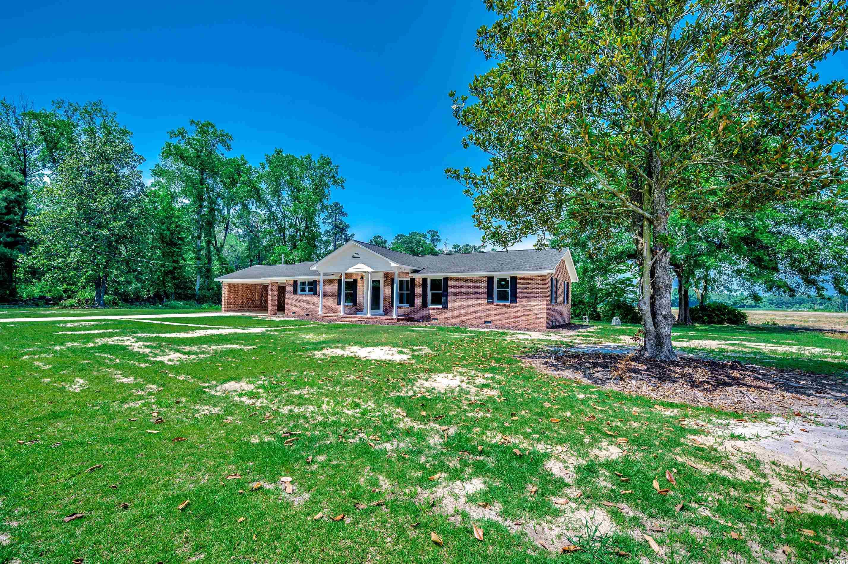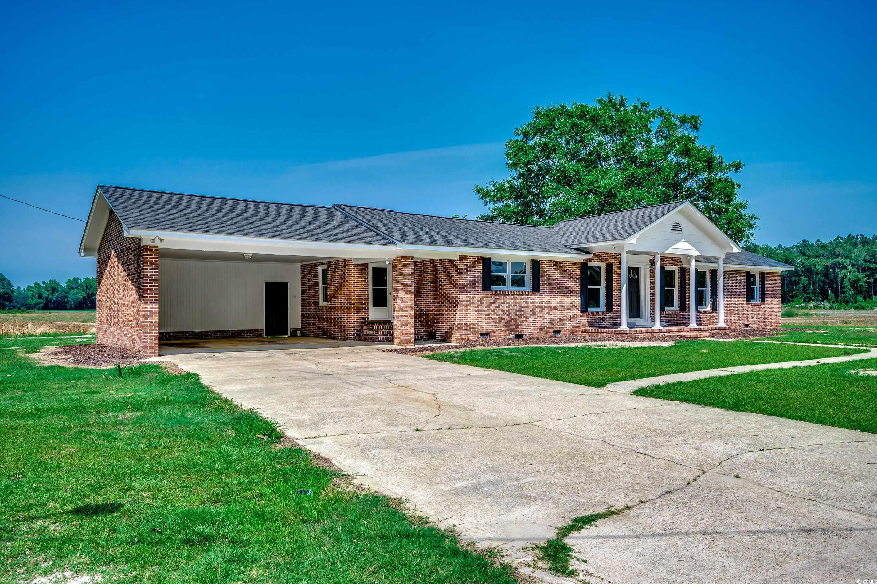 Tired of HOA's, noise and traffic. Here is your chance to live in the country, surrounded by farmland, trees, birds and peace & quiet. This beautiful home has been meticulously renovated and is almost completely new. Home features 2 large living room/dining room areas, split bedroom floor plan, 2800 SF under roof and 2200 HSF, two car carport, 8/10 of an acre, fireplace and large rooms throughout. Some of the renovations include but not limited to, new ac/heat pump, roof replaced in 2023, new electrical throughout, new floor joist, sheetrock, paint throughout, windows, shutters, porch columns, LVP flooring throughout, plumbing, light fixtures, recessed lighting, interior doors, trim, crown molding, Stainless Steel stove, 150 sf laundry room, refrigerator, microwave and dishwasher, and cabinets. The primary bedroom is huge and has en suite bathroom with tub and shower. Schedule your appointment today and enjoy your home for years to come.