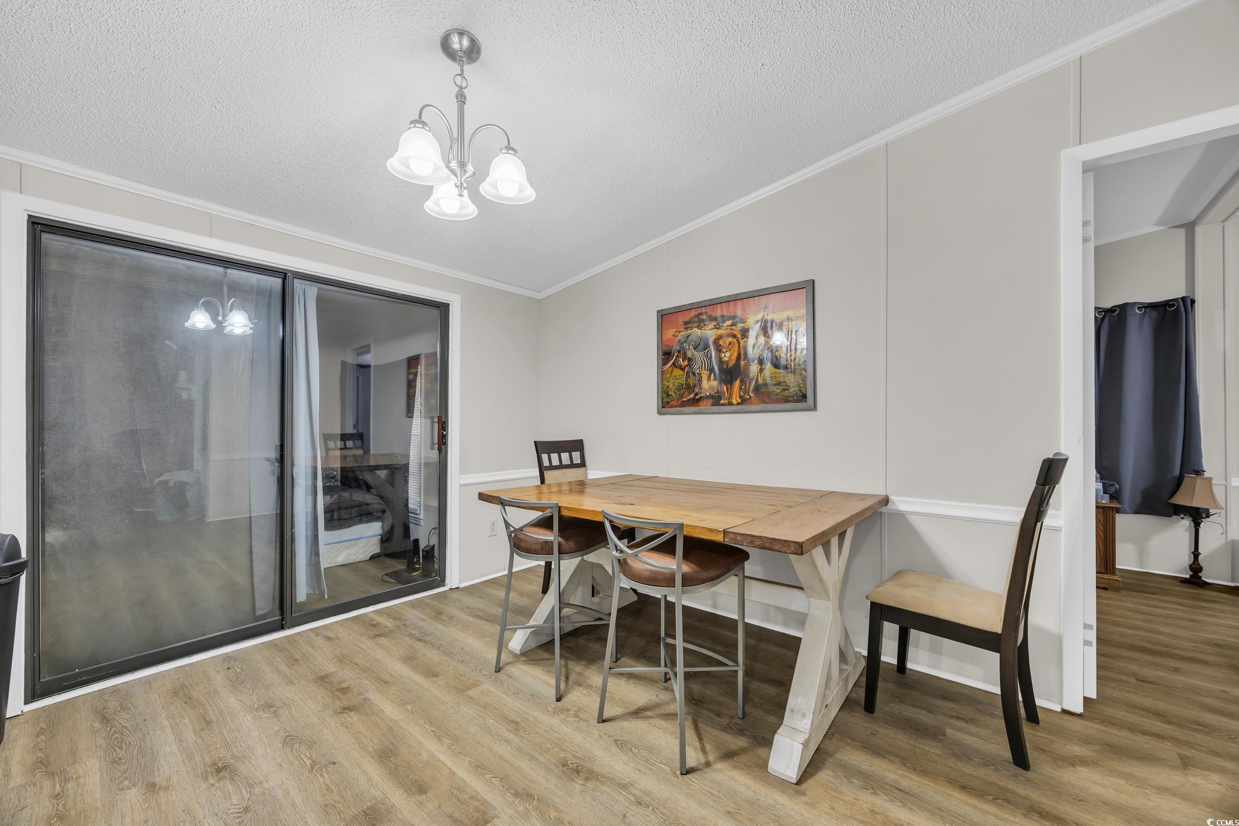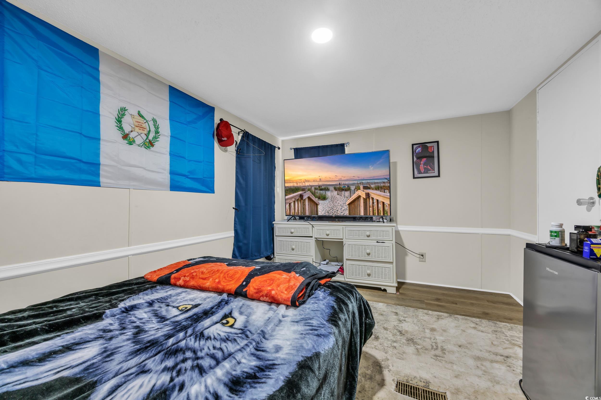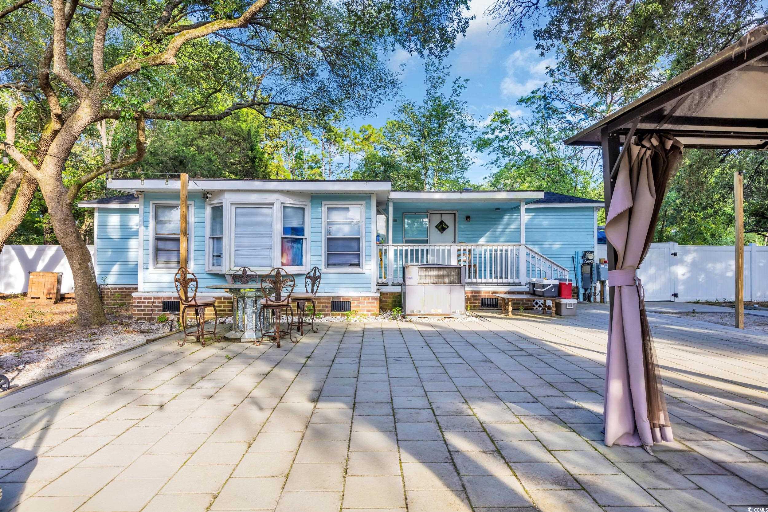 Ultra-Welcoming Manufactured Home with Two Sheds, Paver Patio, and Carolina Room! Nestled on a beautiful 0.33-acre lot less than 7.5-miles from the beach, this 3BR/2BA, 1,456 sqft property captivates with an updated traditional brick skirt, mature shade trees, and a cozy front porch. Designed for easy entertaining, the split-floorplan home dazzles with chic luxury vinyl plank flooring, neutral paint hues, an openly flowing layout, crown molding, elegant built-ins, and a large living room boasting a rustic stone fireplace. Chefs and foodies will agree a galley kitchen is the best for convenience and function. Whip up delicious meals with stainless-steel appliances, stylish laminate counters, white cabinetry, stainless-steel sinks, electric stove, built-in microwave, dishwasher, refrigerator, breakfast bar, and an adjoining dining room. Blissful dreams are discovered in the spacious and private primary bedroom. Three closets allow for fabulous organizational possibilities, while the attached en suite provides the ultimate comfort. Two extra bedrooms are well-sized for guests or flex spaces, while the full hallway bathroom satisfies multigenerational needs with a shower/tub combo and storage vanity. When cool South Carolina evenings entice with their gentle, salt-scented breezes, the Carolina room beckons for good conversation and great company. Host BBQs outdoors in the fenced-in backyard with the sprawling paver patio and covered patio. As you grill tasty treats, friends can relax beneath the shade of the gazebo or the glorious mature trees found throughout the yard. Additional considerations include a gravel driveway with ample parking, laundry room, two storage sheds, updated LED lights, septic system replaced for sewer, NO HOA, 8.7-miles to Myrtle Beach State Park, close to Corporal Dennis Lyden Memorial Hwy, Highway 544, world-famous beaches, schools, shopping, restaurants, and golf courses, and more! Schedule your showing today, and have the good life in Myrtle Beach!