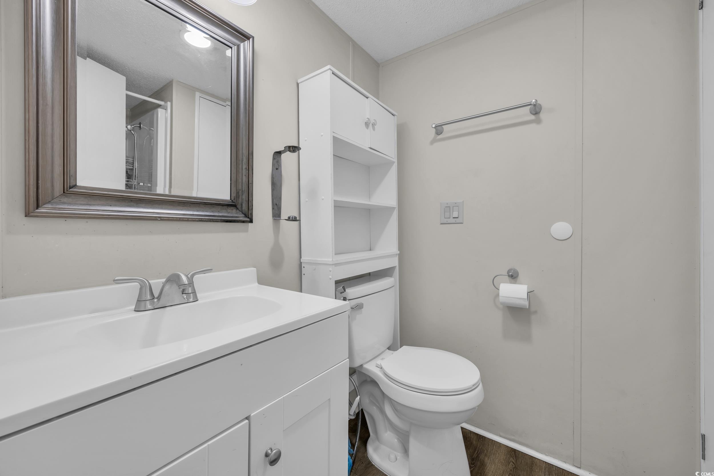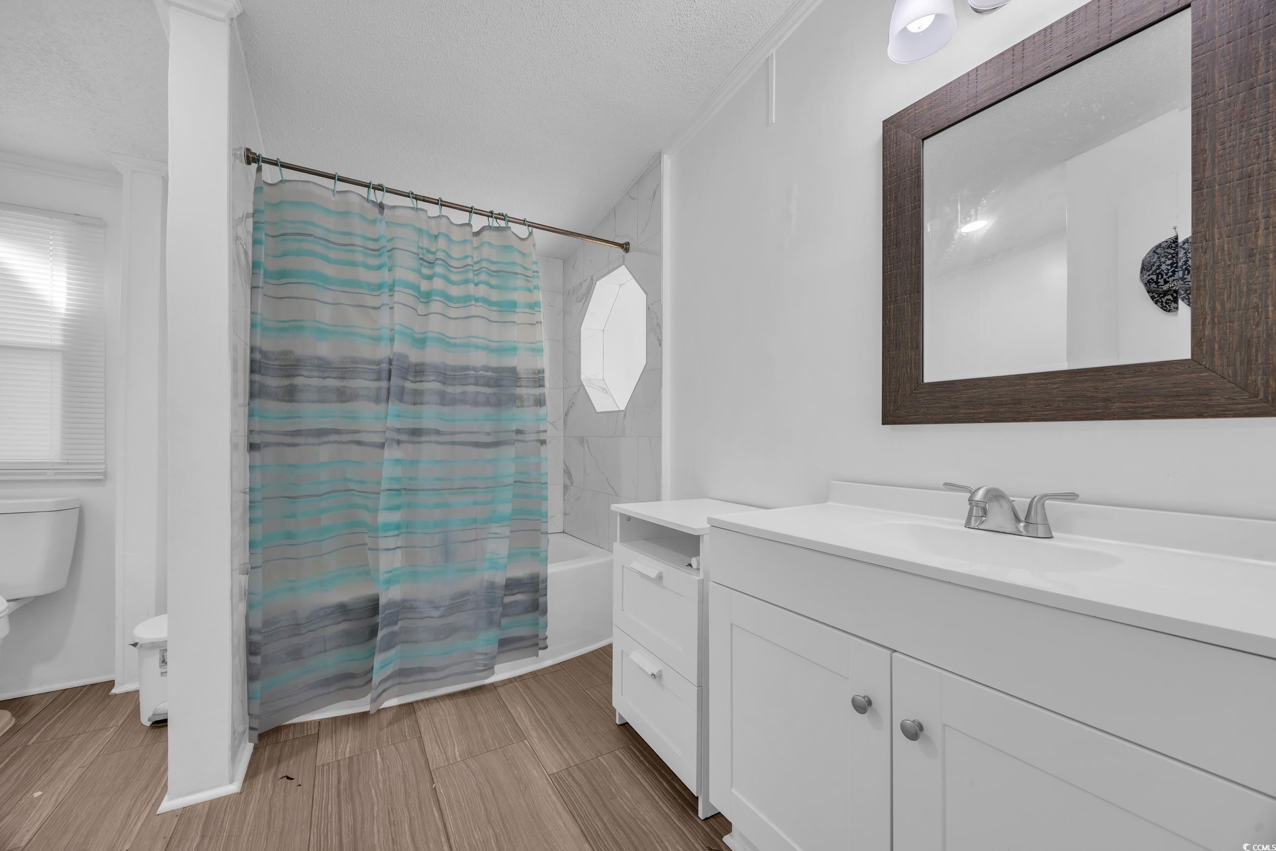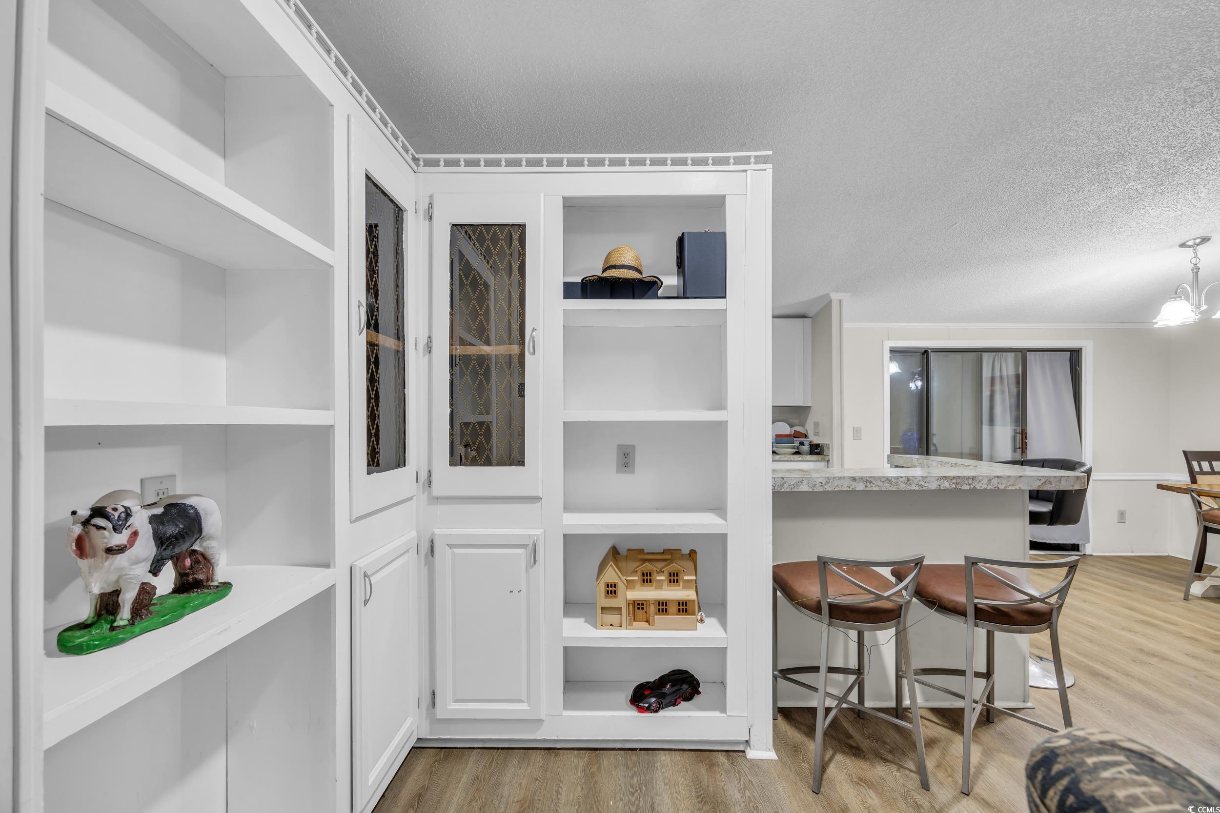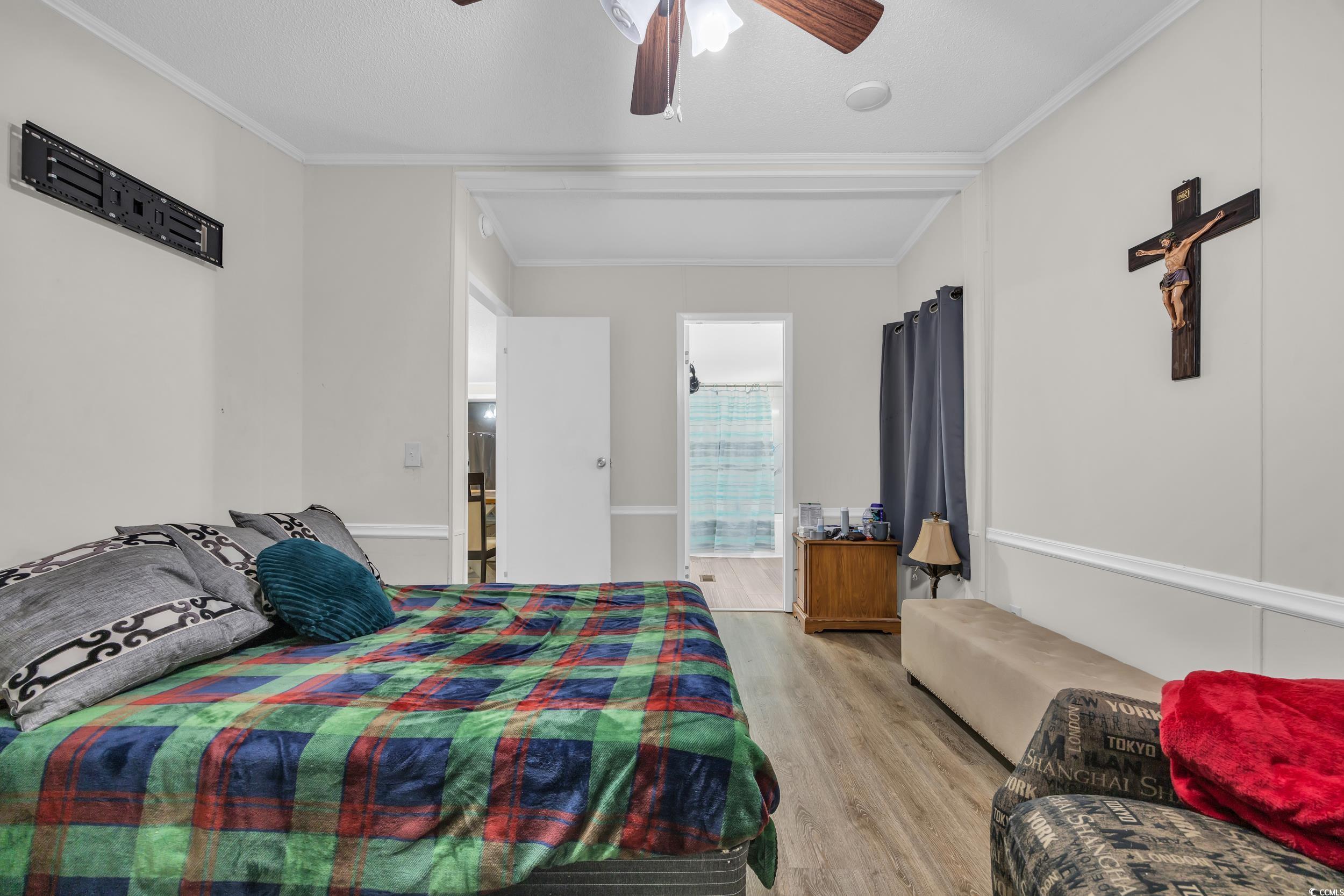 Ultra-Welcoming Manufactured Home with Two Sheds, Paver Patio, and Carolina Room! Nestled on a beautiful 0.33-acre lot less than 7.5-miles from the beach, this 3BR/2BA, 1,456 sqft property captivates with an updated traditional brick skirt, mature shade trees, and a cozy front porch. Designed for easy entertaining, the split-floorplan home dazzles with chic luxury vinyl plank flooring, neutral paint hues, an openly flowing layout, crown molding, elegant built-ins, and a large living room boasting a rustic stone fireplace. Chefs and foodies will agree a galley kitchen is the best for convenience and function. Whip up delicious meals with stainless-steel appliances, stylish laminate counters, white cabinetry, stainless-steel sinks, electric stove, built-in microwave, dishwasher, refrigerator, breakfast bar, and an adjoining dining room. Blissful dreams are discovered in the spacious and private primary bedroom. Three closets allow for fabulous organizational possibilities, while the attached en suite provides the ultimate comfort. Two extra bedrooms are well-sized for guests or flex spaces, while the full hallway bathroom satisfies multigenerational needs with a shower/tub combo and storage vanity. When cool South Carolina evenings entice with their gentle, salt-scented breezes, the Carolina room beckons for good conversation and great company. Host BBQs outdoors in the fenced-in backyard with the sprawling paver patio and covered patio. As you grill tasty treats, friends can relax beneath the shade of the gazebo or the glorious mature trees found throughout the yard. Additional considerations include a gravel driveway with ample parking, laundry room, two storage sheds, updated LED lights, septic system replaced for sewer, NO HOA, 8.7-miles to Myrtle Beach State Park, close to Corporal Dennis Lyden Memorial Hwy, Highway 544, world-famous beaches, schools, shopping, restaurants, and golf courses, and more! Schedule your showing today, and have the good life in Myrtle Beach!