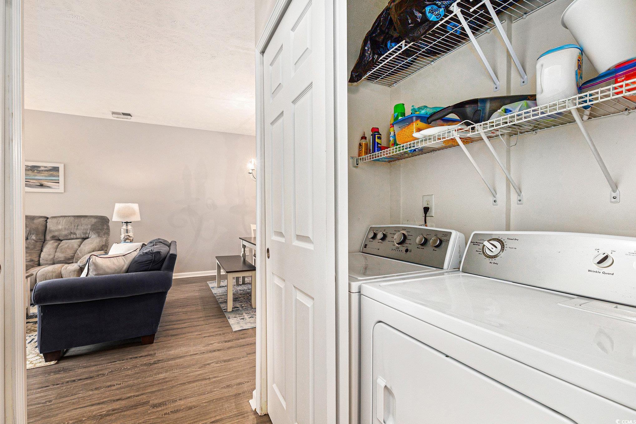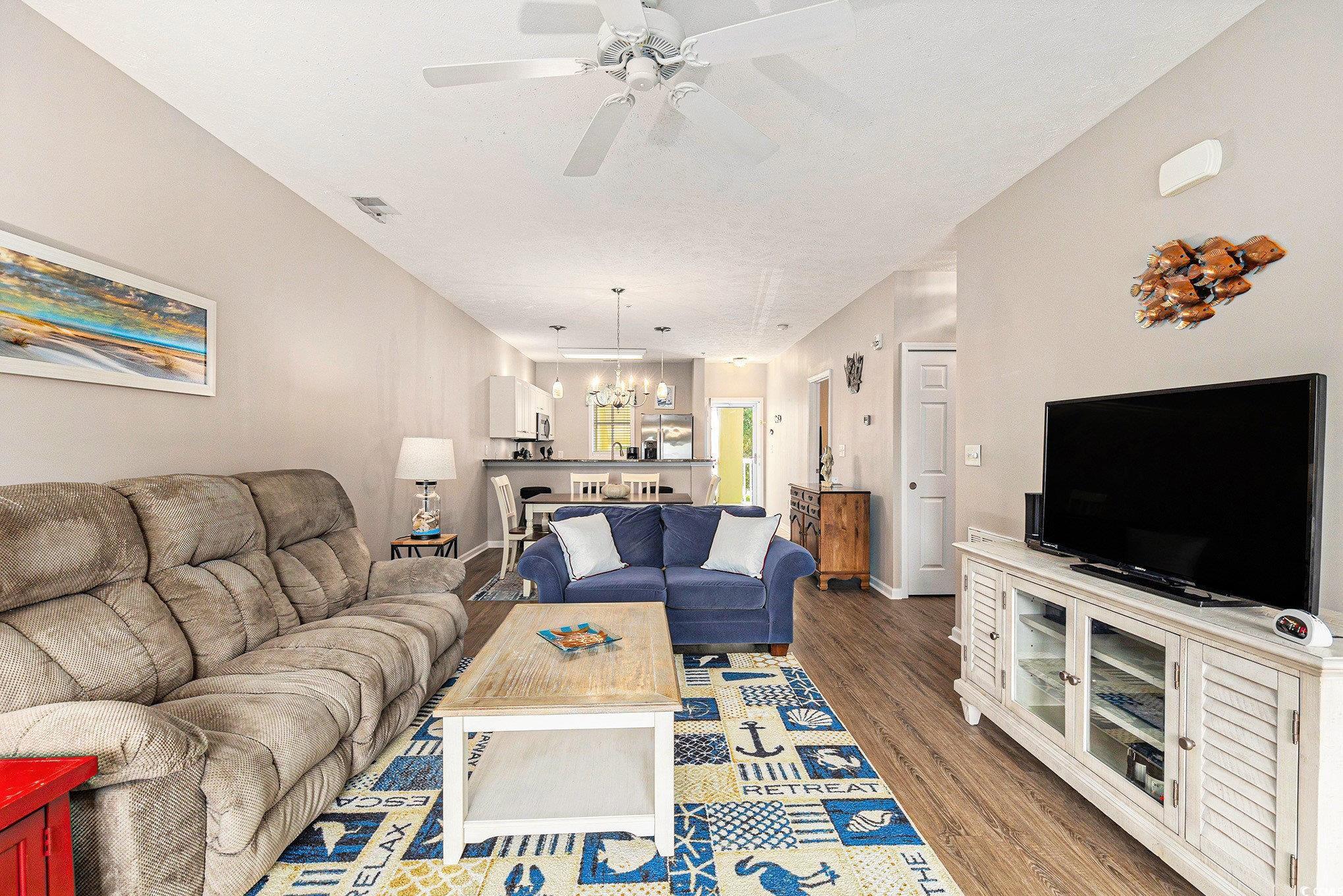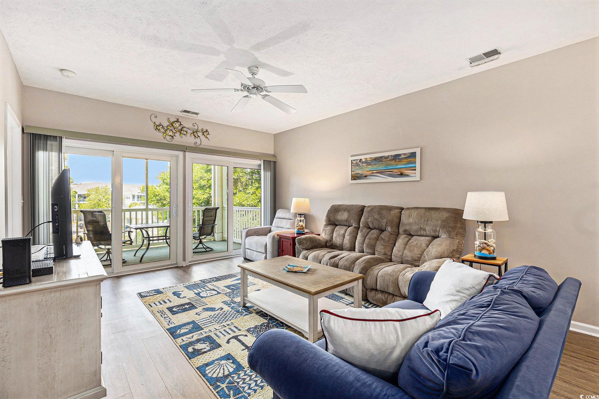 MOVE-IN READY, 2BR, 2BA CONDO located in the popular gated community of Ocean Keyes in the Ocean Drive section of North Myrtle Beach. This subsection is home to the stucco buildings in this complex and does not require a wait list for owner-used golf carts. Third floor unit, elevator building, and private screened balcony shaded by mature trees and overlooking tennis courts. The spacious layout of this charming coastal condo offers an open floor plan with fully equipped kitchen, stainless steel appliances, granite counters, eat-in breakfast bar and separate dining space. This well-maintained unit comes FULLY FURNISHED and offers LVP and tile flooring, carpet in bedrooms and full-sized side-by-side washer/dryer. The spacious primary bedroom features a full private bath and walk-in closet. Guest bedroom and guest bath with step-in shower. Storage closet in the hall outside the unit to hold beach accessories. Enjoy a sunny day poolside by one of the 6 community pools or spend the day enjoying the wonderful amenities which include hot tubs, clubhouse, fitness center, tennis courts, basketball court, picnic/grilling areas, and lush landscaped grounds. This location is prime for the beachgoer, a short golf cart ride to Cherry Grove, two blocks to the beach and one block to Main Street in OD where you will find local restaurants, beach clubs, live bands, free concerts, arcades, ice cream shops, parks, beach shopping and summer festivals, fun for the entire family. This coastal retreat is perfect for a beach getaway or investment opportunity. Schedule your private showing today and make beach life, your best life!