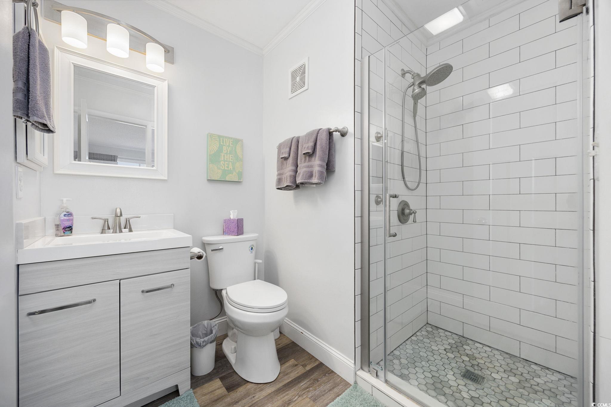 Open House Sept 8, form 12-3pm Experience coastal living at its finest in this beautifully maintained 3-bedroom, 2.5-bathroom oceanfront condo located in the sought-after Tilghman Beach & Racquet Club. Situated on the top floor of a low-rise building with elevator access, this fully furnished end unit offers open living space enhanced by skylights and abundant natural light. The open-concept layout features luxury vinyl plank flooring throughout, a wet bar, and a spacious living area that seamlessly connects to a private balcony with breathtaking ocean views. The kitchen boasts solid surface countertops, a breakfast bar, and ample cabinetry. The primary suite includes a ceiling fan and an updated bathroom with a tiled shower and new vanity. Additional updates encompass fresh paint, new ceiling fans in all bedrooms, and upgraded vanities in the half bath. Community amenities include outdoor pools, tennis courts, and direct beach access. Located just off Main Street in North Myrtle Beach, this property offers proximity to shopping, dining, and entertainment options. Ideal as a vacation retreat, investment property, or full-time residence