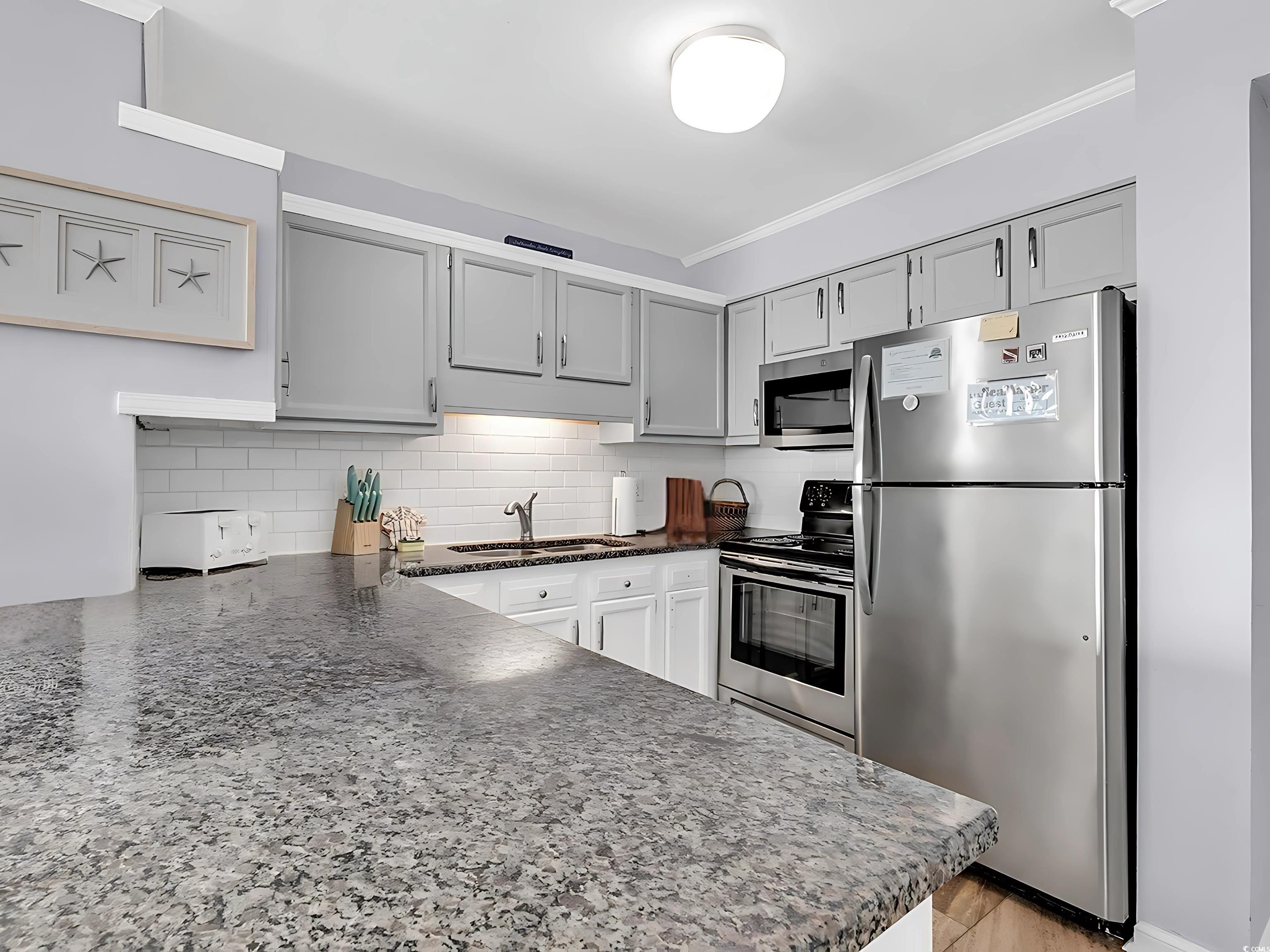 Introducing your retreat by the seaside! Recently renovated and showcasing the luxurious comforts of beachfront living, this condo in Murrells Inlet stands as a beacon of relaxation and sophistication. Boasting three spacious bedrooms and three elegantly appointed bathrooms, this home is tailor-made for both tranquility and entertaining. The primary oceanfront bedroom features unobstructed ocean views, and direct balcony access invites you to start your day with coffee while enjoying the rhythmic sounds of the waves. The living room, also with direct access to the balcony, sets the stage for unforgettable evenings under a canopy of stars. HVAC and Hot water heater have been recently replaced. Life here is as convenient as it is beautiful, with the Garden City Pier, local shops, and vibrant eateries all within easy reach. Whether you prefer a quiet evening or exploring the local area, everything you need is conveniently located nearby. Refinement and attention to detail are evident throughout the unit, which has been professionally decorated to create a comfortable and stylish ambiance. The kitchen shines with polished granite countertops and stainless appliances, ensuring that every meal is a culinary adventure. The residence comes fully furnished with tasteful choices from notable brands, making it move-in ready or a prime rental opportunity with lucrative potential. For relaxation outdoors, the Sea Master complex offers a sprawling oceanfront pool and sundeck, ideal for sunbathing or dipping in the refreshing pool on hot summer days. The Sea Master complex boasts two elevators for easy access. Also this unit has it's own stackable washer and dryer located in closet inside of the unit. This property isnt just a place to liveits a lifestyle.
