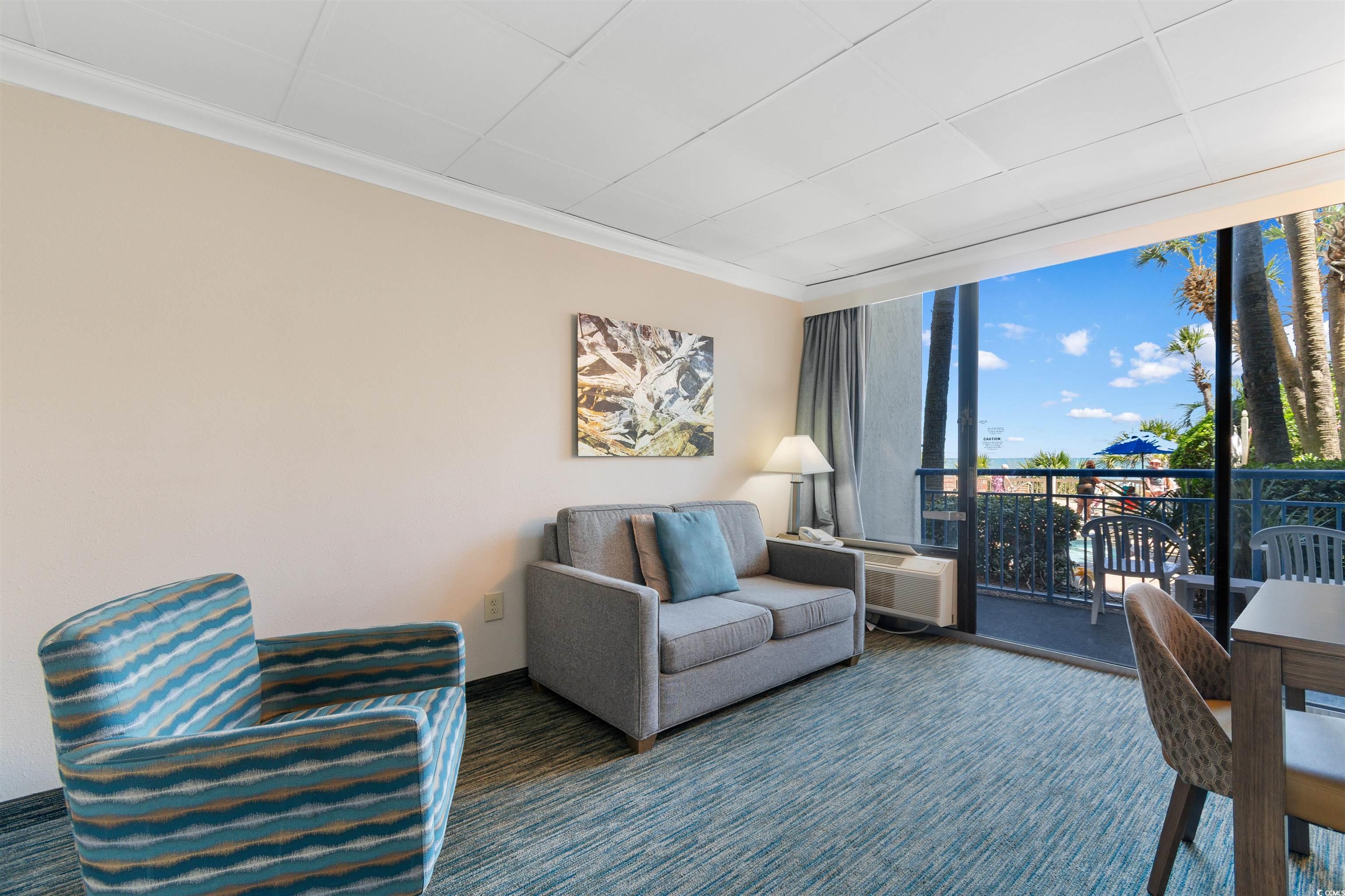 Dont miss this incredible opportunity to own a fully furnished 1-bedroom, 1-bath condo at the highly sought-after Coral Beach Resort in Myrtle Beach! This first-floor unit offers unbeatable accessjust step outside and youre mere moments from the beach. Plus, enjoy beautiful views of the Atlantic Ocean right from your condo, blending convenience with the soothing sights and sounds of the coast. The interior is tastefully decorated with stylish coastal furnishings and welcoming dcor. The bedroom features dual beds, and an additional Murphy bed in the living area comfortably accommodates extra guests. The kitchen comes equipped with granite countertops and all the essentials you need to cook and dine in with ease. Coral Beach Resort offers some of the best amenities on the Grand Strand, including indoor and outdoor pools, a lazy river, hot tubs, a kid-friendly water park area, fitness center, arcade, bowling alley, and on-site restaurants and barssomething for everyone to enjoy! Located in the heart of Myrtle Beach, youre just minutes from the Boardwalk, Family Kingdom Amusement Park, shopping, top golf courses, restaurants, entertainment, and the airport. Whether youre looking for a personal beach escape or a high-demand rental property, this ocean-view condo offers it all. Schedule your private showing today!