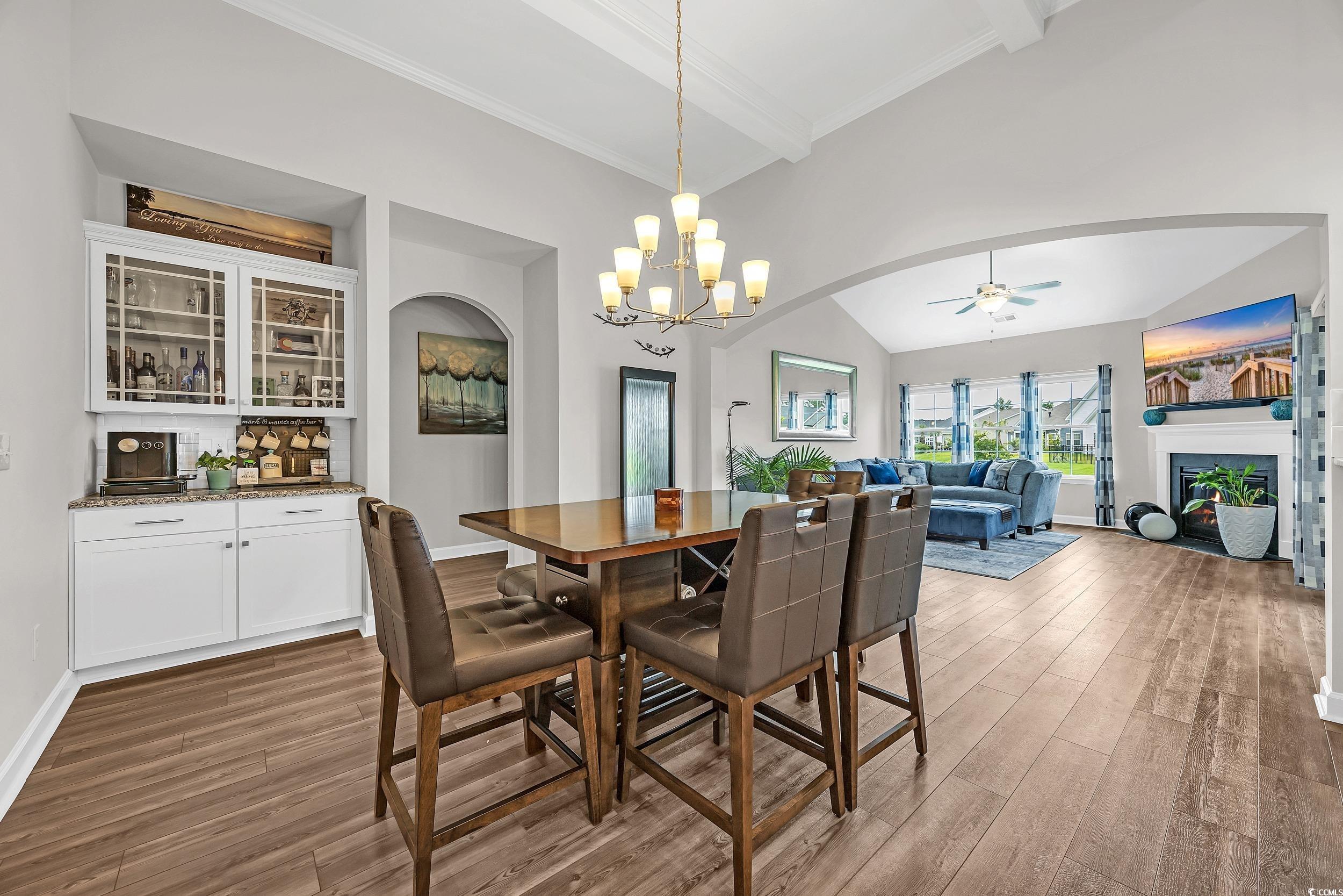 Elegant coastal living awaits in this rare Evans Park gem on a corner lot with serene pond views. Two luxurious primary suites, dual fireplaces, and a chefs kitchen with premium appliances and butlers pantry make entertaining effortless. Upstairs, a bonus suite with full bath offers flexible space for guests or work-from-home life. Minutes from Murrells Inlet MarshWalk, beaches, and golf, this home blends upscale style with the ultimate coastal lifestyle. Homes like this seldom come on the market, schedule your private showing today.