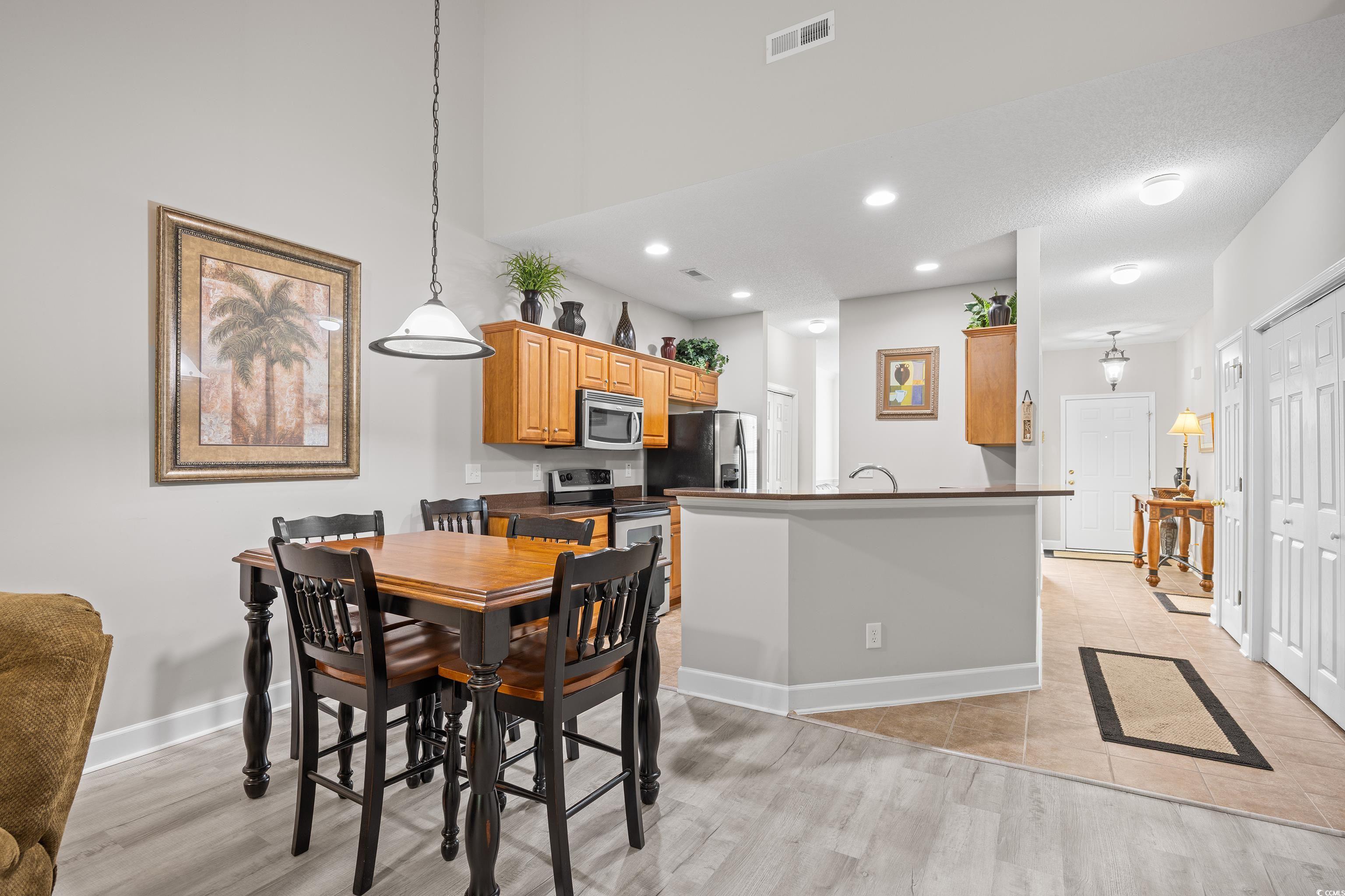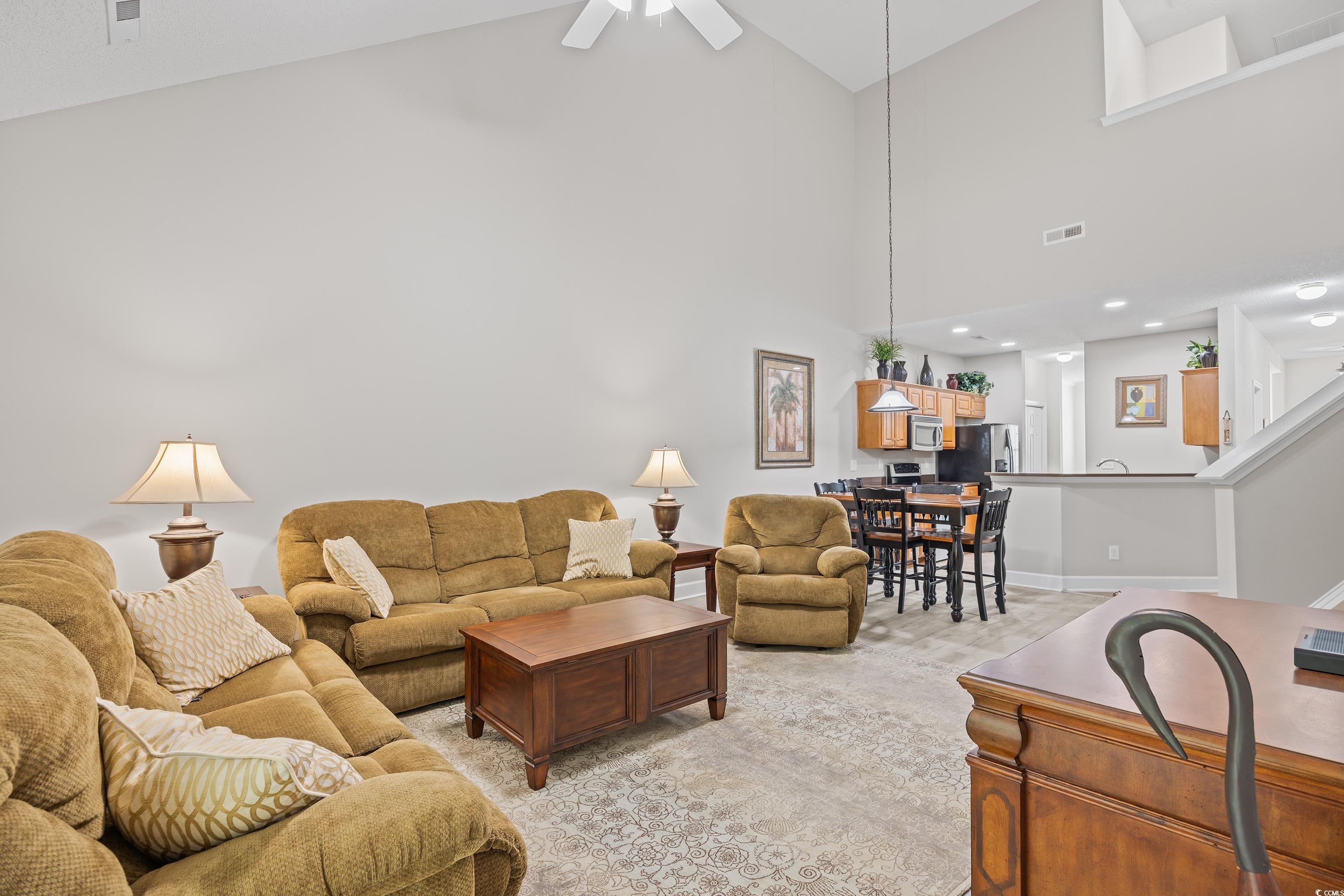 Nestled along the 11th green of the Norman Golf Course in the prestigious Havens community in Barefoot Resort, this elegant 3-bedroom, 3.5-bathroom townhome offers a perfect blend of luxury and comfort. The open-concept design features vaulted ceilings that enhance the spaciousness of the kitchen, dining, and living areas, creating an inviting atmosphere for both entertaining and daily living. A versatile flex room on the first floor provides the ideal space for a formal dining area, home office, or study, adapting seamlessly to your lifestyle needs. The main level boasts a generously sized primary bedroom with an en-suite bathroom, offering convenience and privacy. A screened porch extends your living space outdoors, providing serene views of the golf course and a perfect spot for morning coffee or evening relaxation. Additional features include a private one-car garage and a half bath on the main floor, enhancing the home's functionality. Upstairs, you'll find two additional bedrooms, one featuring its own en-suite bathroom, and another full bathroom to accommodate family or guests. An extra bonus room upstairs offers additional space for a home office, playroom, or media room, providing flexibility to suit your needs. This townhome offers a TRANSFERABLE GOLF MEMBERSHIP (for a small fee), granting access to Barefoot Resort's renowned golf courses designed by Greg Norman, Davis Love III, Tom Fazio, and Pete Dye. Residents of The Havens enjoy a wealth of amenities, including a private beachfront cabana, seasonal beach shuttle service, community pool and grilling areas, and proximity to Barefoot Landing's shopping, dining, and entertainment options. Experience the best of coastal living in this exceptional townhome that combines elegant design with resort-style amenities.