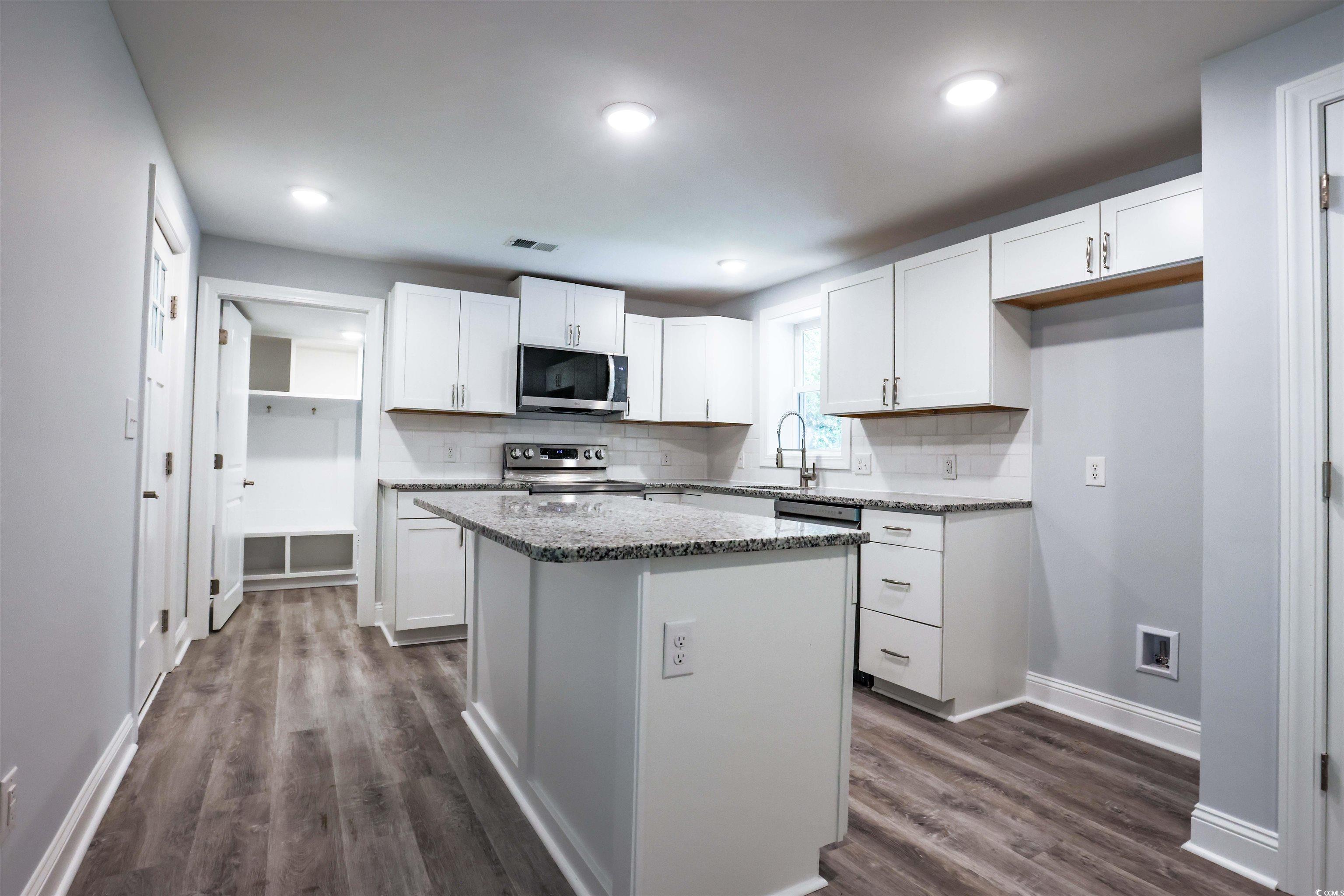This beautiful 3 bedroom and 2 bathroom home is an all brick home situated on 0.63 acres with No HOA. The home has a brand new HVAC system along with all new plumbing. It has all brand new windows and a new roof. There is brand new luxury vinyl plank flooring throughout the entire home. The home features a spacious kitchen with high end solid wood white cabinets along with granite counter tops. The kitchen has a brand new stove, microwave, and dishwasher along with a spacious double door pantry with shelving. The open living room features a cathedral ceiling with white wood beams along with a cozy white brick fireplace. The primary bedroom has dual closets, two vanities with granite countertops, and a tile shower. The other two bedrooms are a good size, offer spacious closets, and brand new ceiling fans. The second bathroom has a tub/shower combination. The spacious laundry room has a drop zone to place your coats and shoes. The outside back deck features luxury vinyl railings along with a fenced in backyard. There is a storage shed for extra storage as well. This beautiful traditional style home in Little River is just a short drive to the ICW that offers many restaurants, the Big ""M"" casino boats, and Little River's Crab and Shrimp Festival. It's just a short drive to Cherry Grove Beach and Calabash, NC. Hurry and schedule your showing before it's too late!