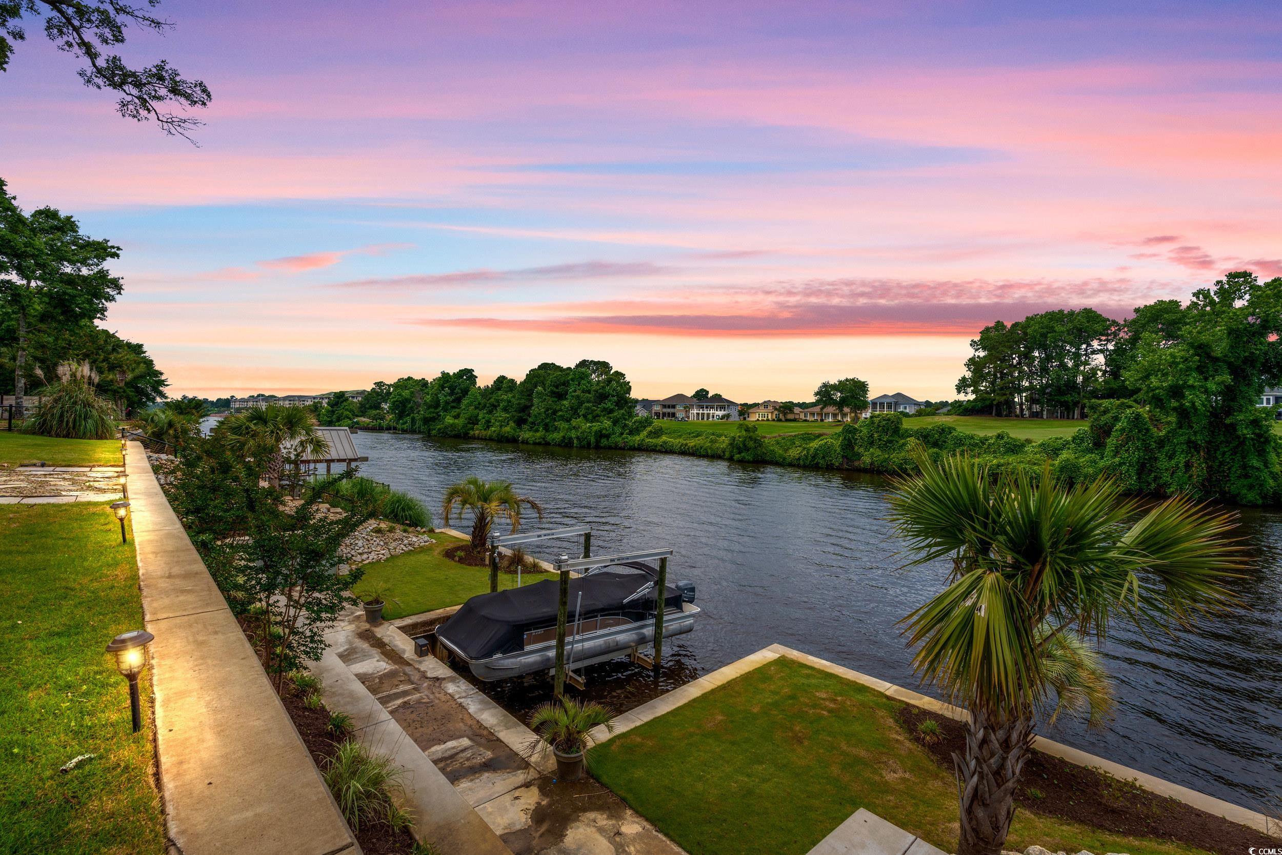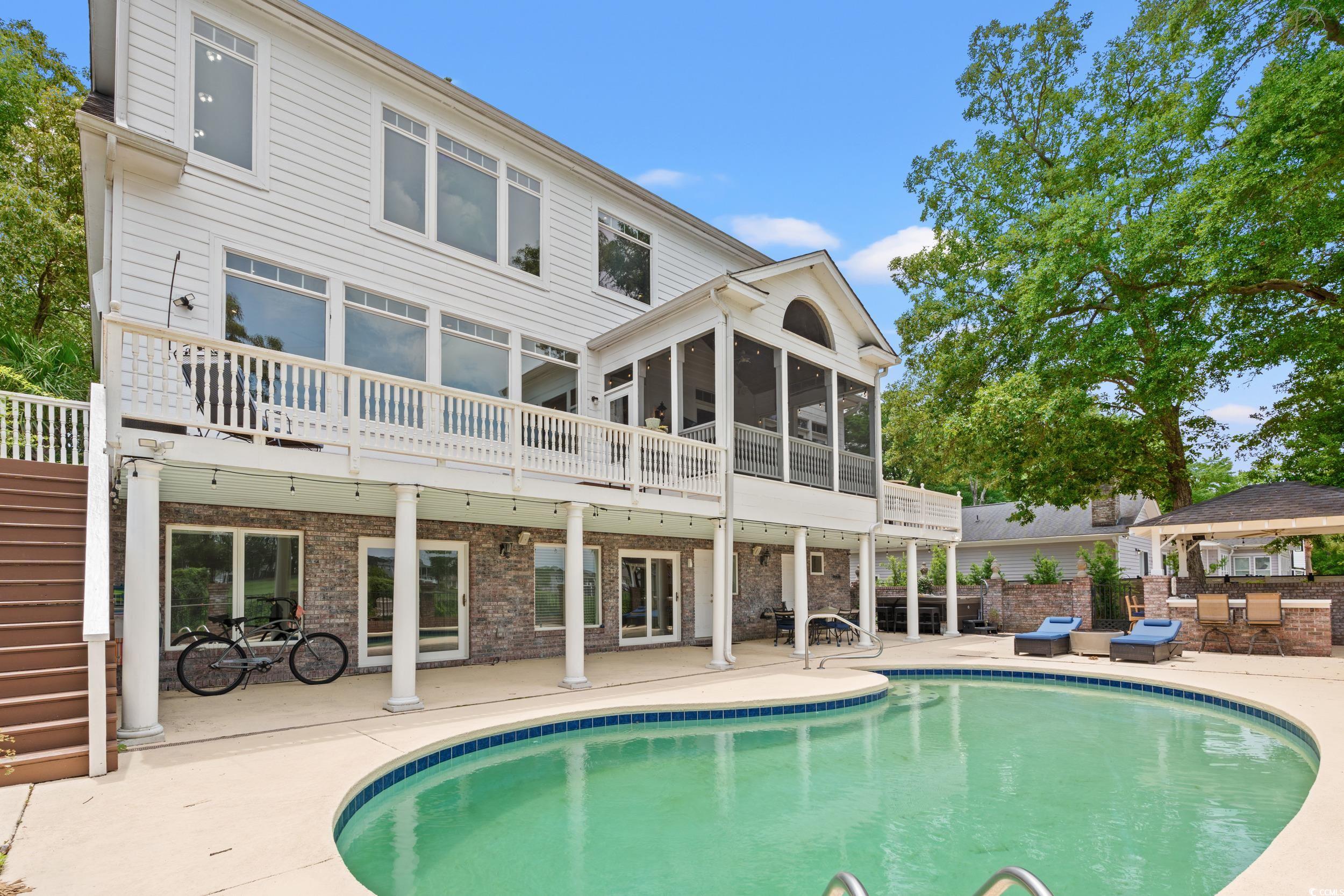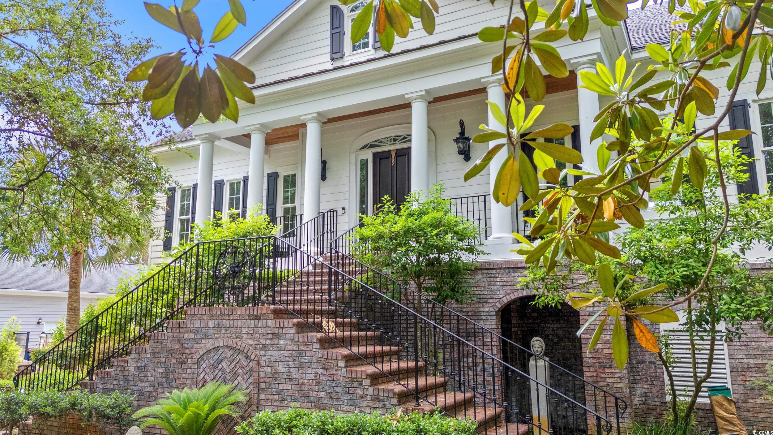 Nestled within the exclusive Forest community in Briarcliff, this Charleston southern-style home stands tall across three stories, boasting5 bedrooms, 4 full baths, and one half bath. Positioned conveniently on the Intracoastal Waterway between Myrtle Beach and North Myrtle Beach, this residence offers unparalleled privacy. As you approach, the distinctiveness of this property becomes evident. The circular entrance drive, adorned with brick and custom wrought iron railings, leads to the grand front entrance featuring large colonial Tuscan pillars. The first floor comprises 3 bedrooms, 2 full baths, a 3-car garage, and a wine cellar, creating a welcoming and functional space. The second level impresses with high ceilings and a parlor complete with a fireplace. The upgraded kitchen is a chef's dream, featuring a stainless Sub-Zero refrigerator, Viking professional cooktop, 2 Bosch dishwashers, and granite countertops. The open family room and dining room offer captivating window wall views of the Intracoastal Waterway. A screened-in porch and deck off the kitchen make it the perfect spot for entertaining family and friends. Ascending to the third floor, a balcony overlooks the foyer, adorned with iron railings. Two bedrooms on this level include a guest bedroom with a full bath and stunning waterway views. The primary suite is a luxurious retreat, featuring French doors, a ceiling fan, breathtaking waterway views, an extra-large bathroom with granite floors, and his and her closets with built-in vanities boasting brass sinks. Don't miss the amazing backyard complete with a newly resurfaced sparkling pool including new pool heater, gazebo with built-in kitchen and Koi Pond, surely an entertainer's dream! Notably, the property has been shored up by a brand new bulkhead and the owners have added a dock with an electric boat lift making this the perfect property for those seeking a waterfront lifestyle. The upgrades do not stop here. The owner has installed a whole house Generac generator, new hardwood floors upstairs, new windows in the den, a well irrigation system, landscape lighting system, two new garage door systems, and a garage HVAC unit. This turnkey home is ready for immediate occupancy. If you desire a property on the waterway that exudes charm and luxury, your search ends here!