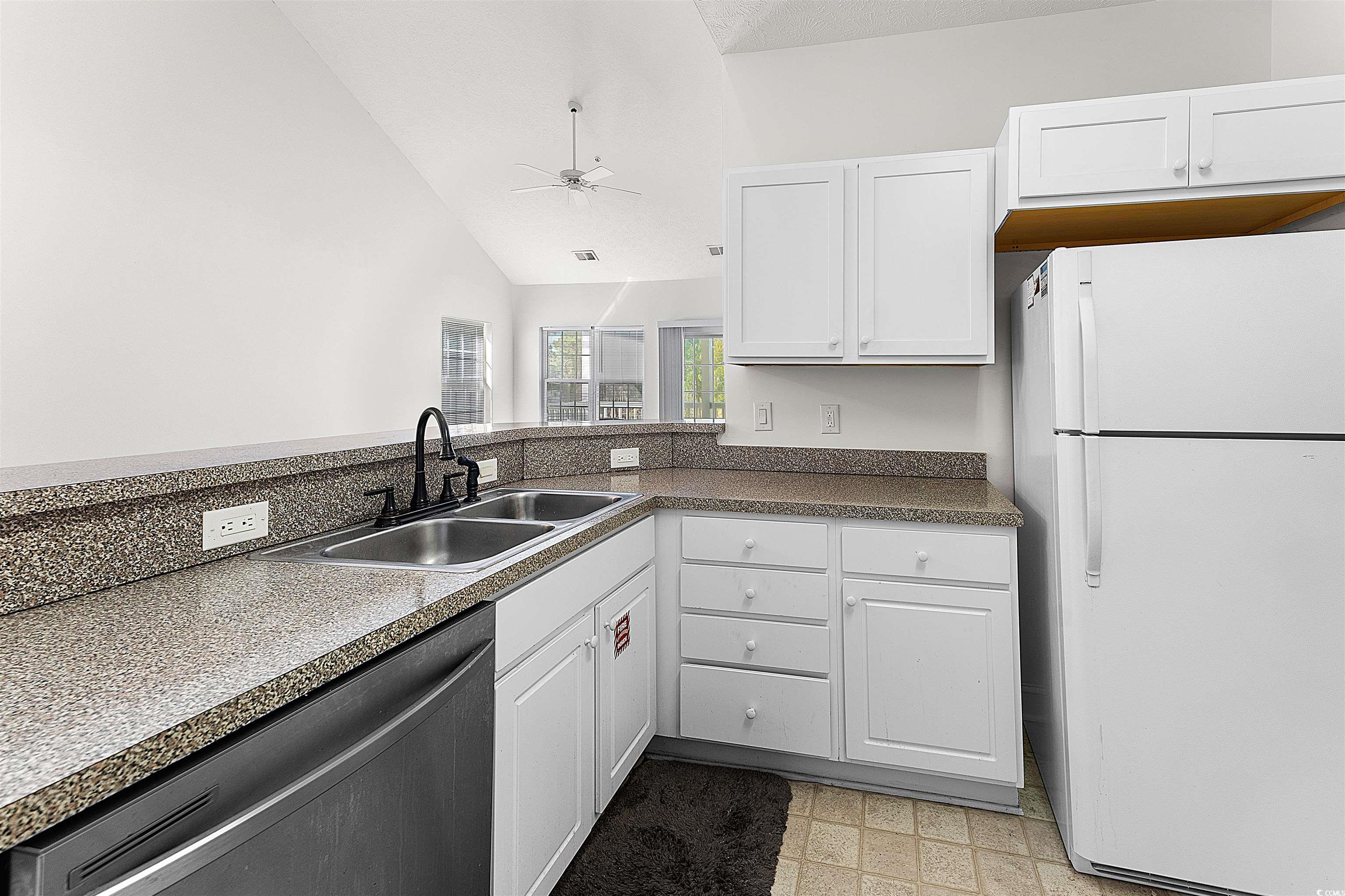 Spacious, 3-bedroom, 2-bath condo in Windsor Green..With one of the best views in the entire neighborhood, this beautiful end unit features vaulted ceilings and provides extra natural light to flow in..New luxury vinyl flooring, new paint, new HVAC in 2023.. Both the living room and the master bedroom lead out to the large screened-in porch where you can enjoy the sights and sounds of the nature, combined with gorgeous views of the golf course..The community features several lakes, gazebo, an outdoor pool, picnic and grilling area and playground..Conveniently located, Windsor Green is close to beach, golf courses, shopping, entertainment, restaurants, and all the Grand Strand area has to offer.