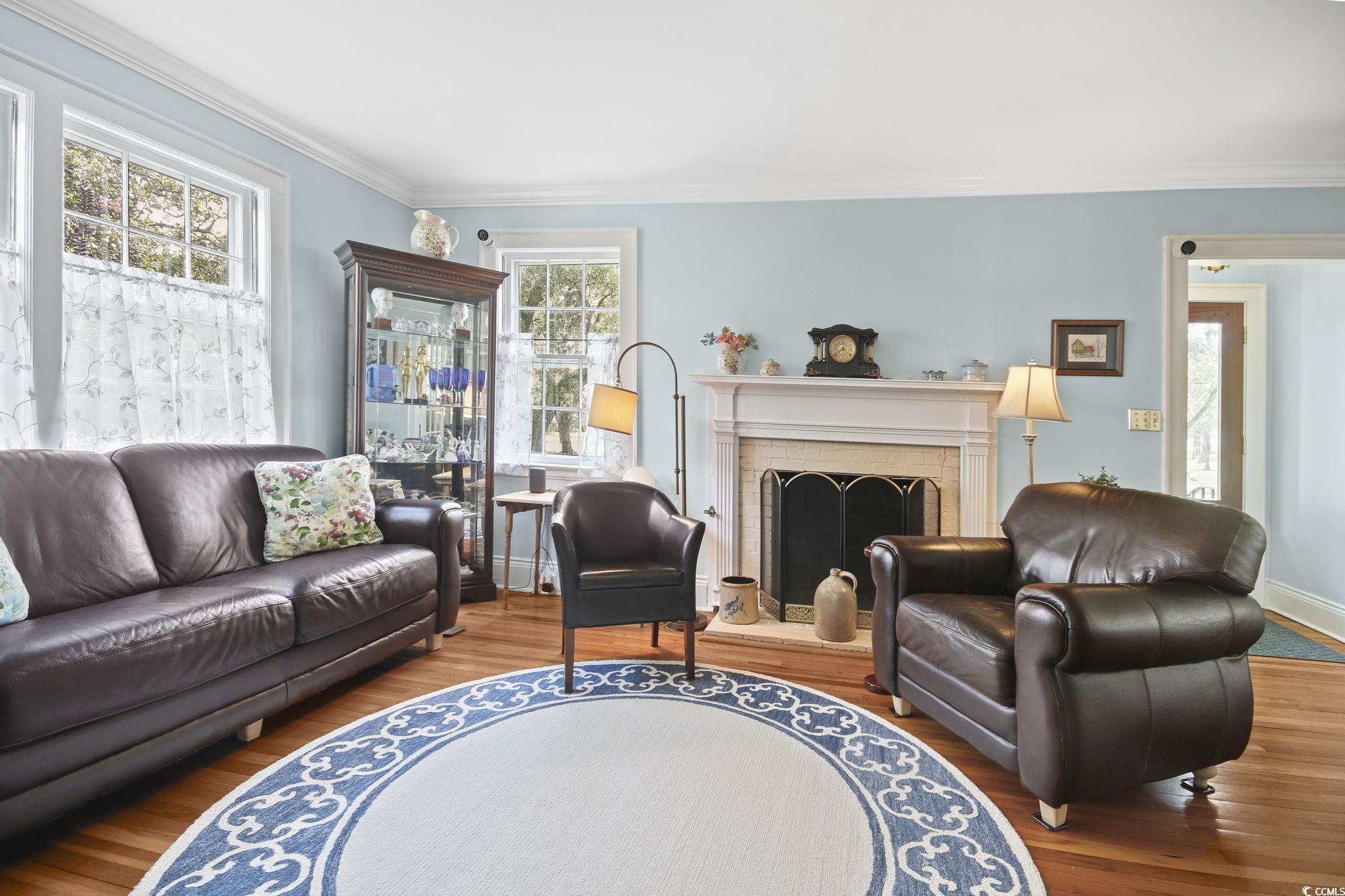 What gorgeous sunrises you will enjoy! Charming Downtown Georgetown is the place to be, especially across from the more than 13-acre East Bay Park and with picturesque Winyah Bay beyond. 104 East Bay Street, a well-maintained and consistently upgraded four-bedroom brick-faced cape, offers both charm and comfort, with a welcoming, classic layout. Entering in the front, you will first notice the abundance of light from this homes many windows. You will see the living room to your right and the sunroom/den to your left. A door on the far side of the sunroom opens to the delightful screened-in porch. From the living room you first enter the dining room with original built-in china cabinet, and then the updated kitchen with breakfast area. The kitchen features granite countertops, stainless steel appliances, gas stove, and plenty of storage. Also on the first floor are 2 bedrooms, new bathroom with walk-in shower, and laundry area. Crown moulding adds to the beauty of most of the first-floor rooms. Upstairs are 2 additional bedrooms, full bathroom, closet-lined hallway, and 3 walk-in attic spaces. You will find oak hardwood floors on both the first and second floors. This house boasts a tankless gas water heater (2023), and 2 recently-replaced HVAC systems (2020 and 2022). There are improvements from top to bottom including the 50-year roof (2020) and the professionally encapsulated crawl space with dehumidifier (2022). Included with the property is a detached garage/work space and storage room, with a 1-bedroom apartment above. Embrace the Lowcountry lifestyle at home on 104 East Bay, an easy walk to shops and restaurants, fascinating museums, the beautiful Harborwalk, and seasonal in-town festivities. And, if boating is your sport, the East Bay Public Boat Ramp is just 3 blocks away.