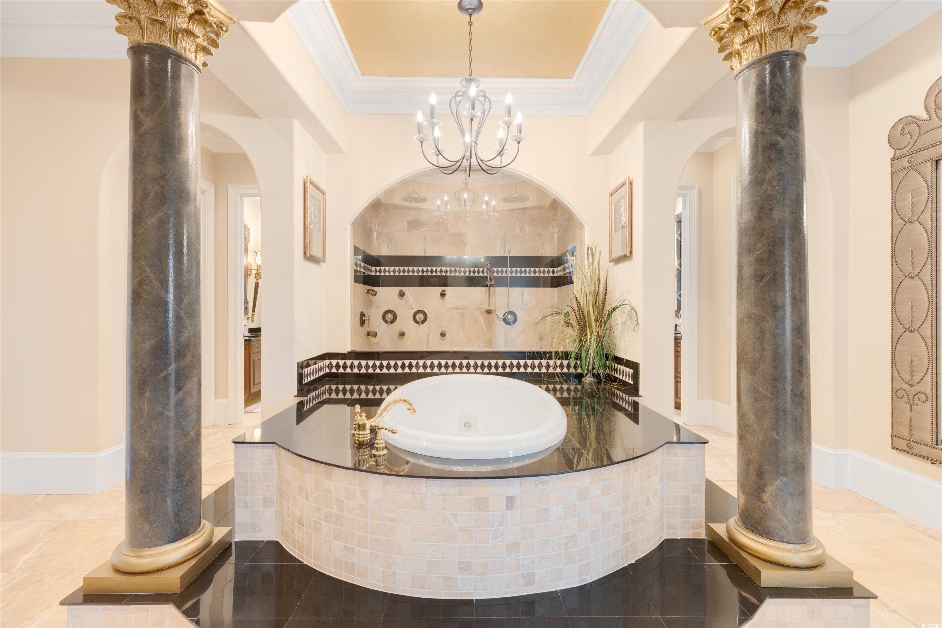 Interior Features: TrayCeilings, CeilingFans, CentralVacuum, DualSinks, Elevator, Fireplace, GardenTubRomanTub, JettedTub, MainLevelPrimary, SittingAreaInPrimary, SplitBedrooms, SeparateShower, VaultedCeilings, WalkInClosets, WindowTreatments, BreakfastBar, BedroomOnMainLevel, BreakfastArea, EntranceFoyer, InLawFloorplan, KitchenIsland