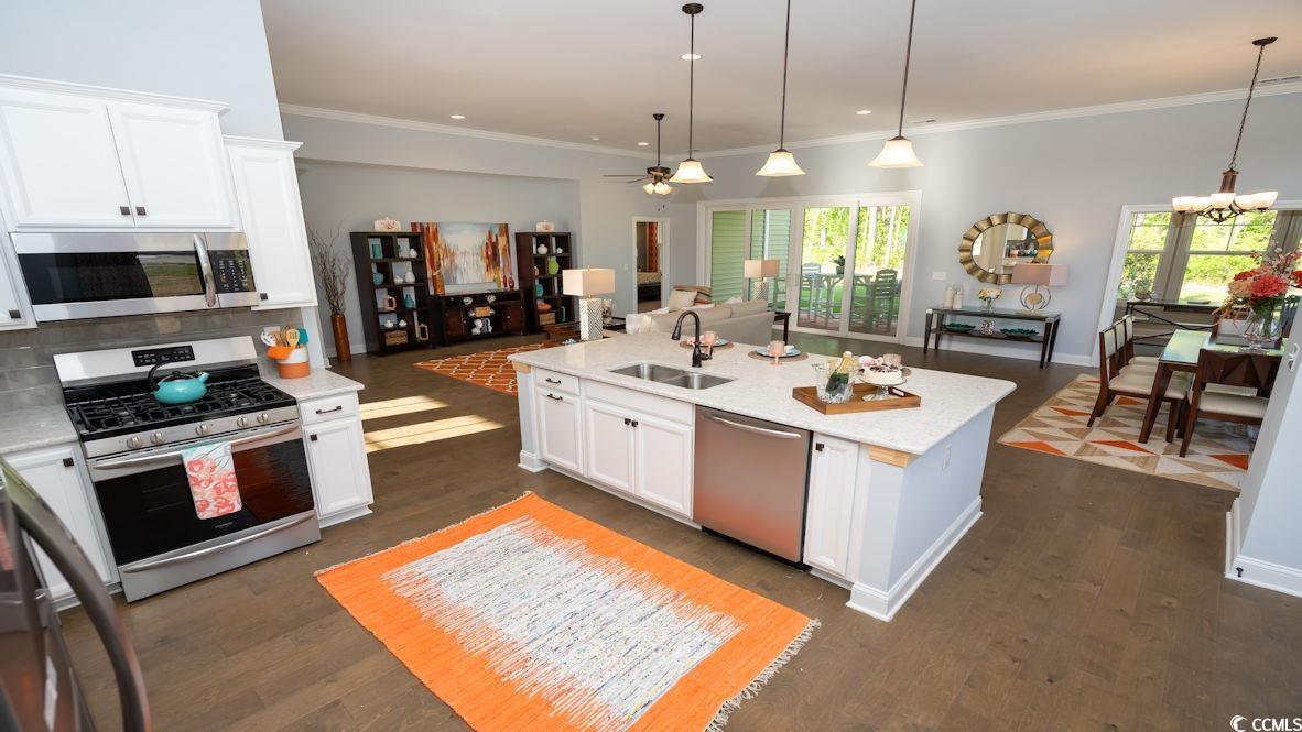 Waterbridge community is in the sought-after Carolina Forest area. Minutes from grocery stores, shopping centers, golf courses, attractions and the beach! The community is filled with resort-style amenities that make it hard to leave home. This gated community features a clubhouse, the largest residential swimming pool in SC, fitness center, tennis, pickleball, basketball, volleyball, and bocce ball, a lake and boat launch! Elegant 5-Bedroom Home with Luxurious Finishes & Exceptional Layout! Welcome to your dream homewhere modern elegance meets thoughtful design in this stunning 5-bedroom, 3.5-bathroom residence with a spacious 3-car garage. From the moment you arrive, the striking stacked stone front elevation and inviting front porch with glass double door entry set the tone for the elegance inside. Step into a grand open foyer with tray ceiling, leading seamlessly into an expansive open-concept great room featuring a cozy fireplace, formal dining area, and a gourmet kitchen designed to impress. The kitchen boasts quartz countertops, a large island with breakfast bar, stainless steel appliances including a gas range, pantry, and a sun-drenched morning room. Perfect for entertaining or everyday living, the great room opens to a large covered porch through an impressive 4-panel glass sliding door, creating effortless indoor-outdoor flow. Retreat to the private primary suite tucked at the rear of the home, complete with a tray ceiling, luxurious en-suite bath featuring a 5-foot tile shower, dual vanity, linen closet, water closet, and a generously sized walk-in closet. A private office is also located at the rear of the home, offering a quiet space for remote work or study. At the front of the home, two well-appointed secondary bedrooms share a full bathroom with a double vanity, ideal for guests or family. Upstairs, youll find two additional bedrooms, a full bathroom, and a cozy sitting area, perfect for a reading nook or play space. This home offers exceptional space, style, and functioncrafted for modern living and timeless comfort. Dont miss your opportunity to own this one-of-a-kind gem! This is America's Smart Home! Each of our homes comes with an industry leading smart home technology package that will allow you to control the thermostat, front door light and lock, and video doorbell from your smartphone or with voice commands to Alexa. *Photos are of a similar Cumberland home. Pictures, photographs, colors, features, and sizes are for illustration purposes only and will vary from the homes as built. Home and community information, including pricing, included features, terms, availability and amenities, are subject to change and prior sale at any time without notice or obligation. Square footage dimensions are approximate. Equal housing opportunity builder.