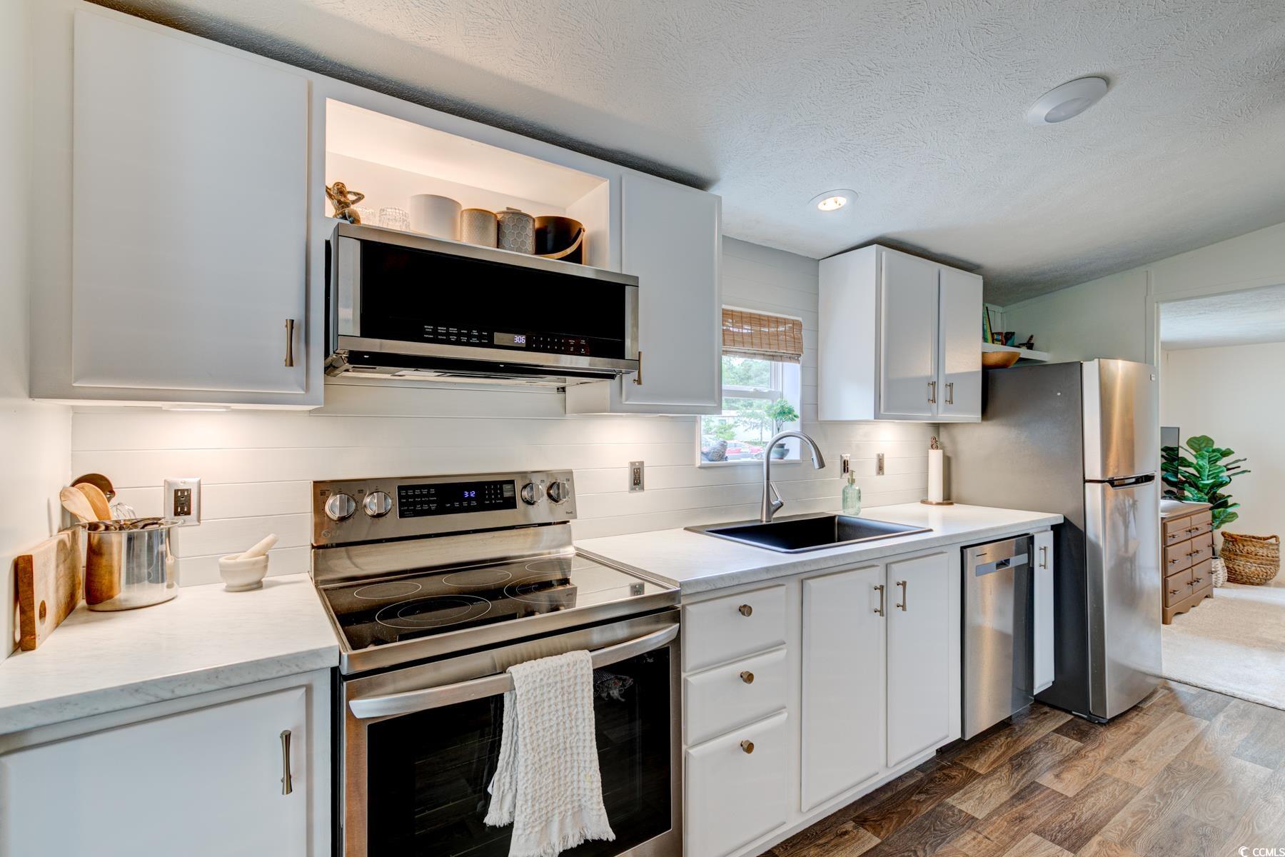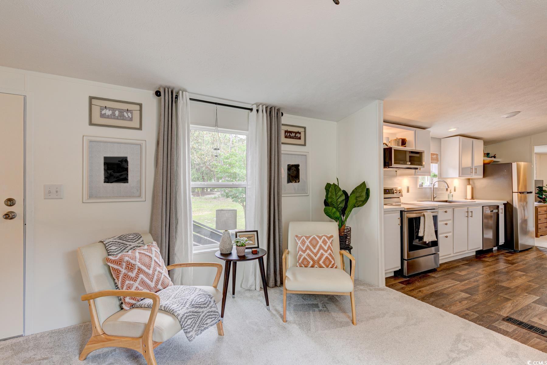 AIRBNB INVESTOR OPPORTUNITY or YOUR OWN PRIVATE RETREAT! Spacious 3BR/2BA on Acre with Wooded Backyard! Looking for an income-producing vacation rental, a coastal second home, or your primary residence with room to breathe? This beautifully updated 3-bedroom, 2-bath manufactured home offers the perfect blend of comfort, modern design, and serene outdoor living all nestled on a peaceful 0.5-acre lot surrounded by trees. From the moment you arrive, the welcoming front porch invites you to slow down and enjoy the quiet. Step inside to find a neutral color palette, natural light, and a thoughtfully designed split floor plan for easy living and privacy. The open-concept kitchen and dining area are a showstopper featuring white granite countertops, shiplap accents, crisp white cabinetry, gold hardware, and stainless steel appliances. The primary suite is your private retreat with a ensuite bath, granite vanity, and walk in shower. Two additional bedrooms and a full guest bath sit on the opposite side of the home, offering flexibility for guests, family, or office space. Step out back to unwind on your rear porch, overlooking a wooded backyard, fire pit, and a serenity path that winds through the trees a peaceful escape that feels worlds away, yet close to everything. Whether youre looking for a smart investment, a weekend getaway, or your next forever home, this one has it all. Schedule your showing today and experience how style, comfort, and nature come together perfectly here.