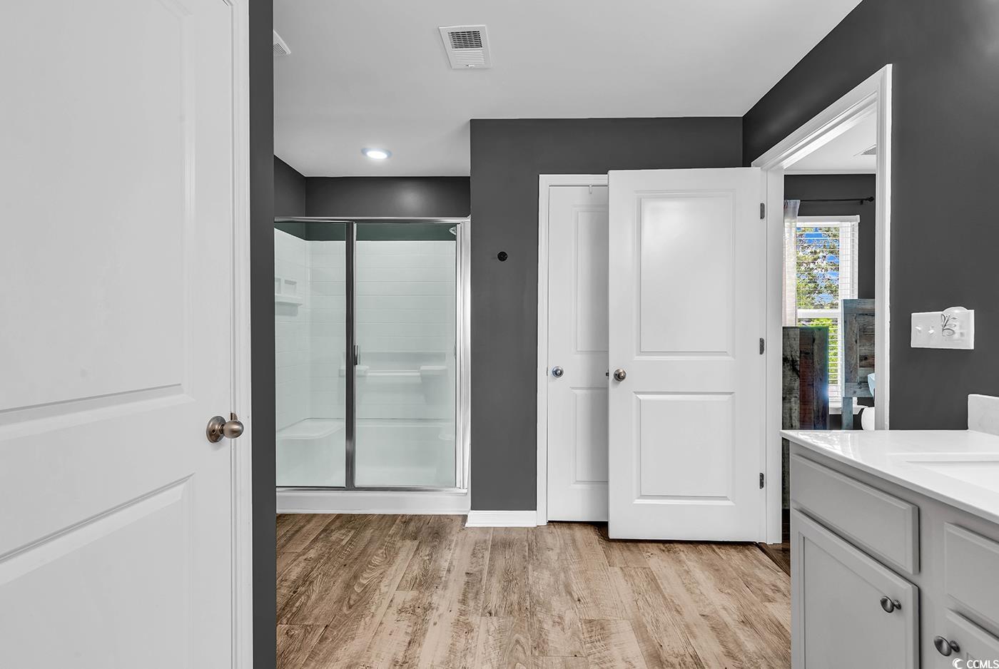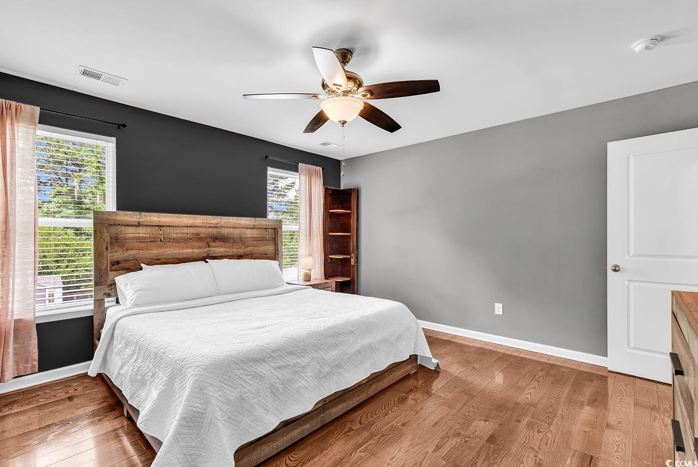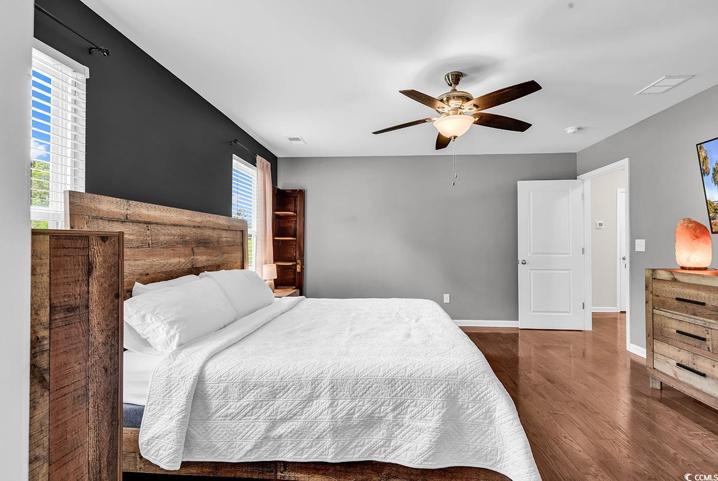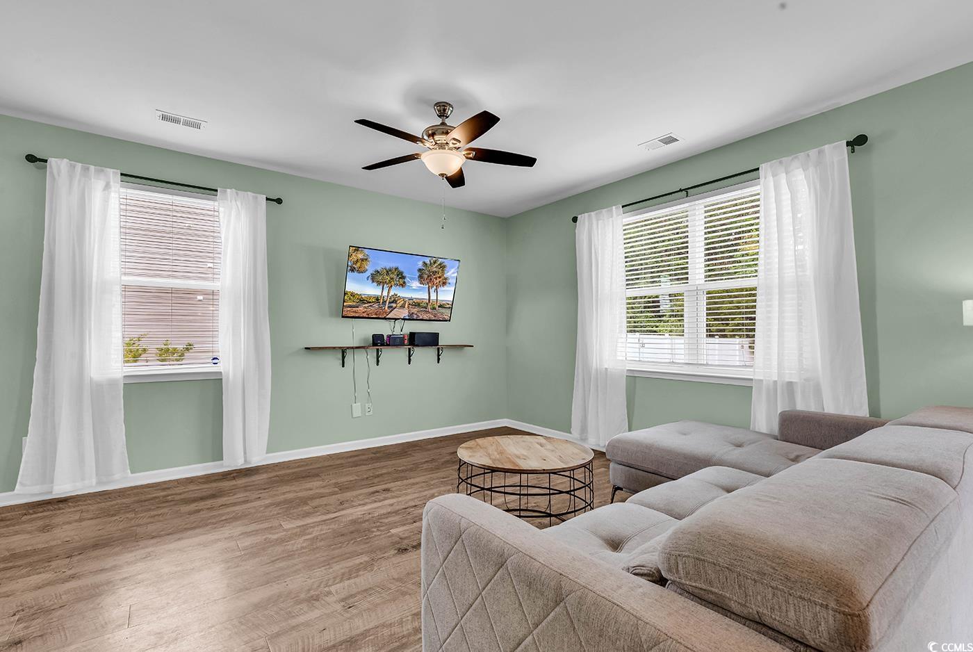 Come and see this gorgeous 4 bedroom, 2.5 bathroom home in the highly sought after Reflections community! Situated on a large fenced in lot backing up to trees, this home offers a spacious, open gathering area and generous bedrooms! As you enter the home, there is a convenient half bathroom on the first floor and stairs leading to the second floor. The living room, dining area, and kitchen all flow seamlessly, for plenty of space to gather together and to entertain. The kitchen boasts stainless steel appliances and a gas range, with granite counters and a large pantry. You'll also find storage under the stairs that has been opened up and that the sellers are using as an office area too! Sliding glass doors lead to an extended paver patio and huge backyard that is already fenced in with a storage shed. Traveling upstairs, wooden stairs and floors open up to four bedrooms, two full bathrooms and a laundry room with even more storage. The primary suite has an ensuite full bathroom with dual sink vanity, step in shower, water closet, and linen closet, and an impressive walk-in closet with built in shelving. Three additional bedrooms are found upstairs and a second full bathroom with a dual sink upgraded vanity. This home has everything you need and want, including being part of a small neighborhood with a community pool and fitness center. Part of the Carolina Forest school district and just minutes to downtown Conway, and International Drive, make sure you take the 3D tour and schedule your showing today!