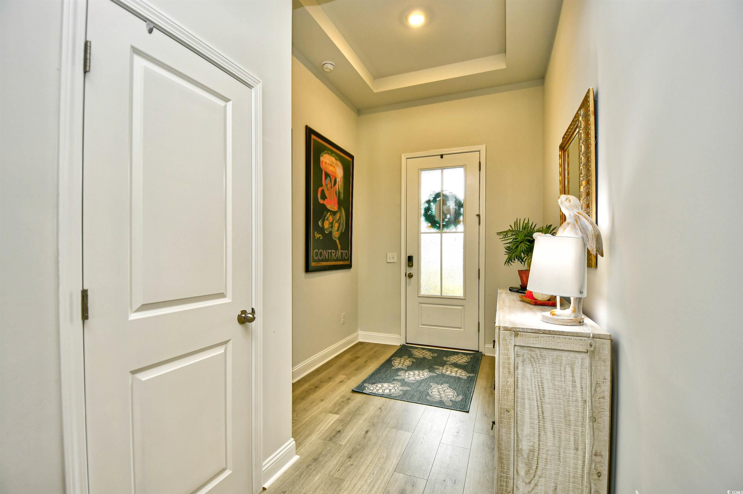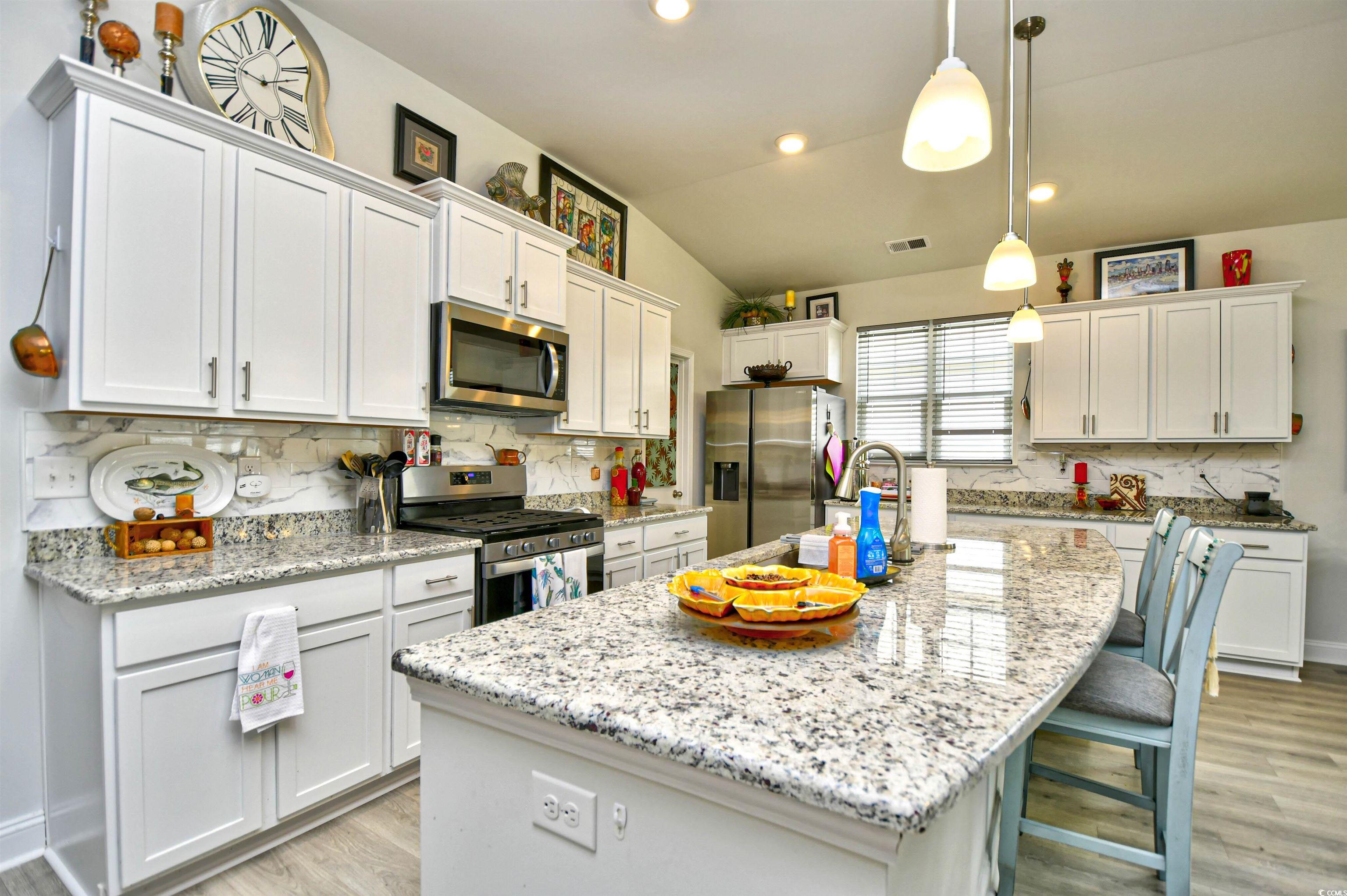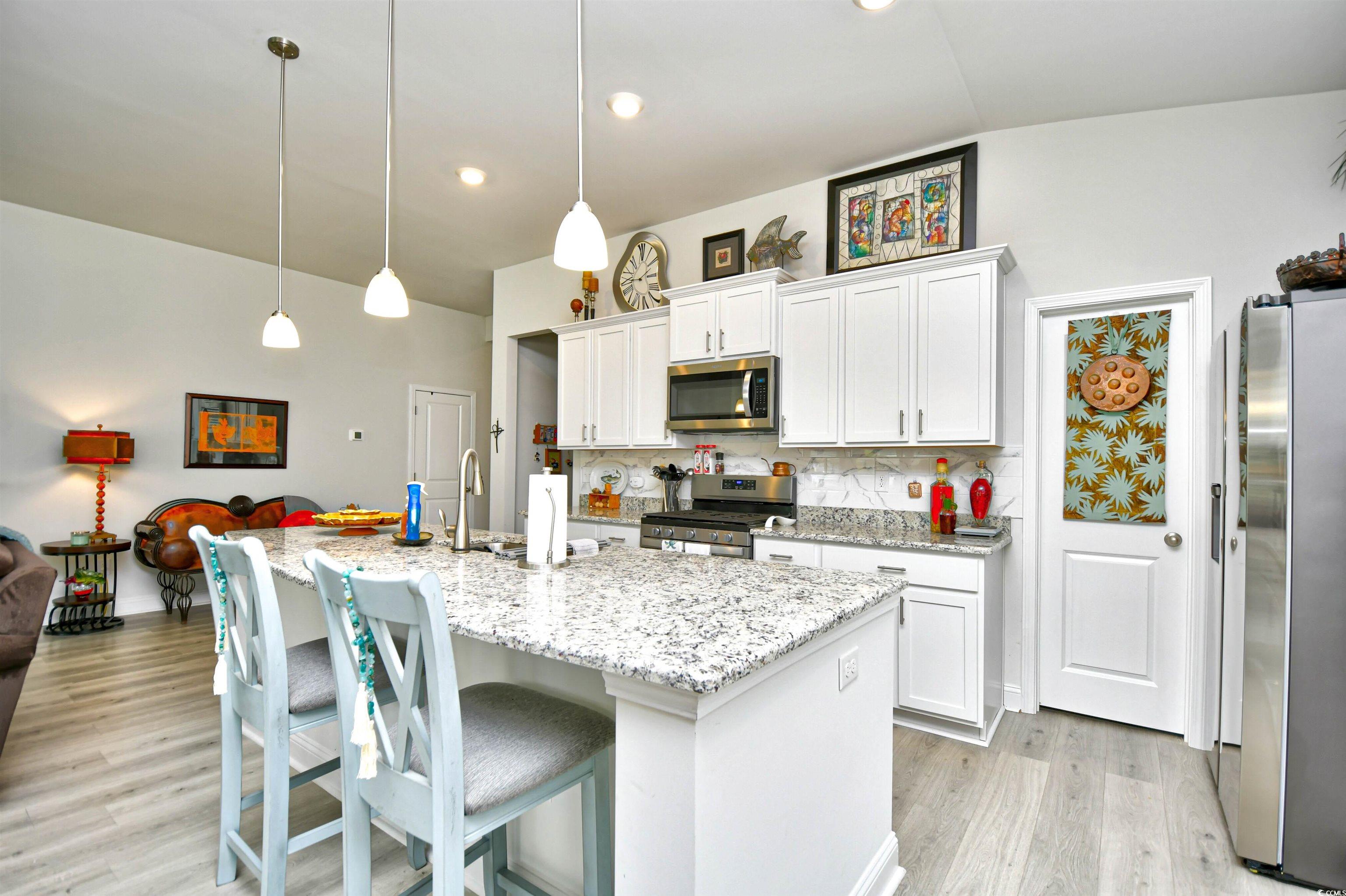 This beautiful home features an open concept floor plan with 9-foot high ceilings and an abundance of natural light. The gourmet kitchen includes granite countertops, white 36 staggered cabinets, stainless steel appliances and a huge walk-in pantry. The luxurious primary bedroom comes with tray ceiling and en suite bathroom with double vanities and two linen closets. The split floor plan provides the ultimate privacy between the owners suite and secondary bedrooms located towards the front of the home. The fenced-in backyard features beautiful palm trees. Hidden Brooke is just minutes away from the beach, restaurants and shopping in North Myrtle Beach. The community has a pool, lake, fire pit and exercise room. Very convenient to highway 9 and easy access to highway 31. Seller is a licensed SC the real estate agent