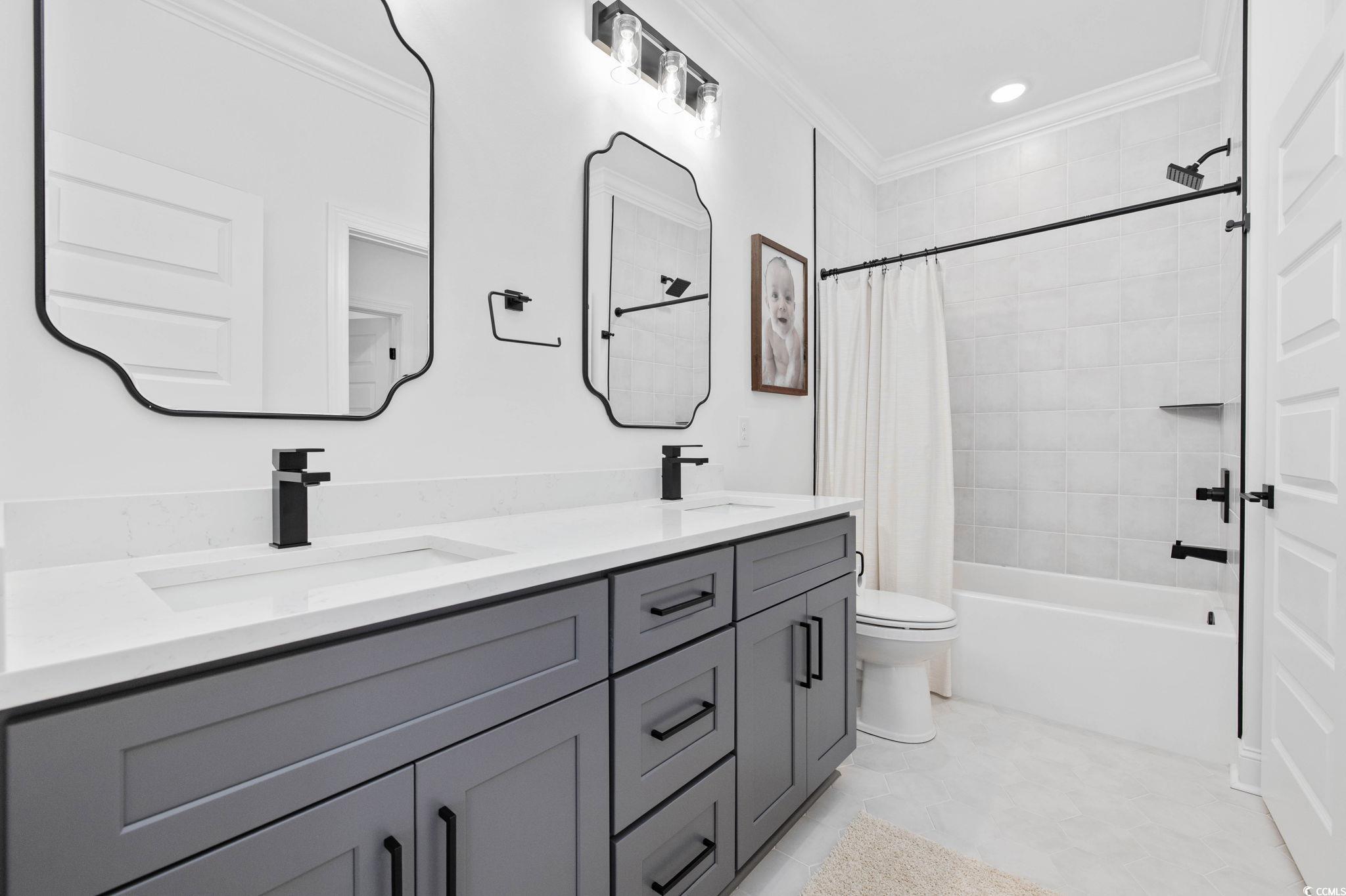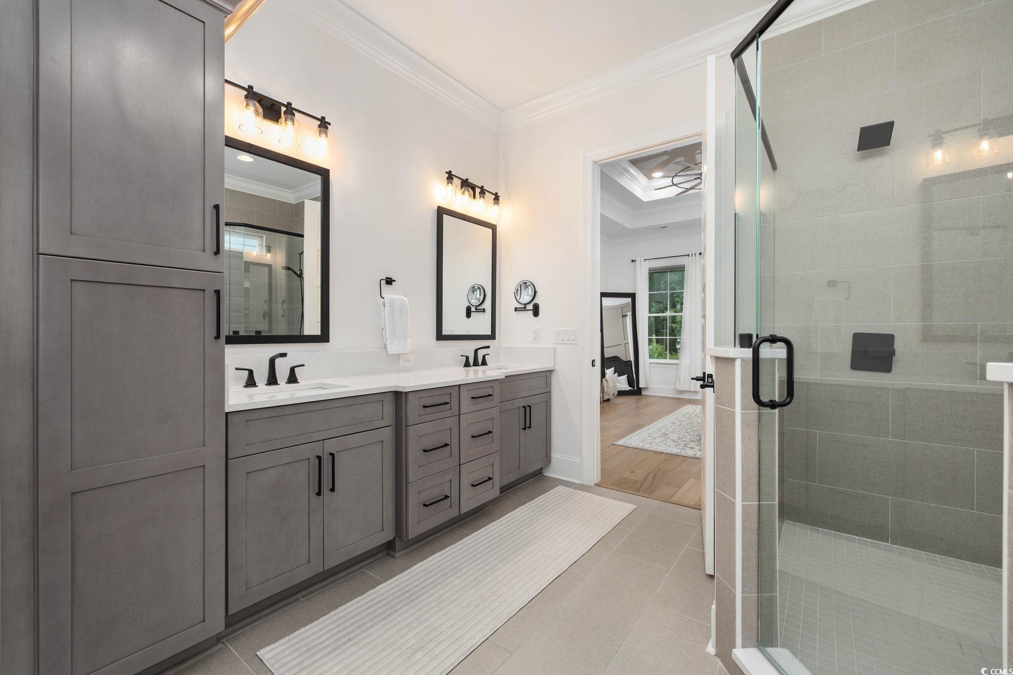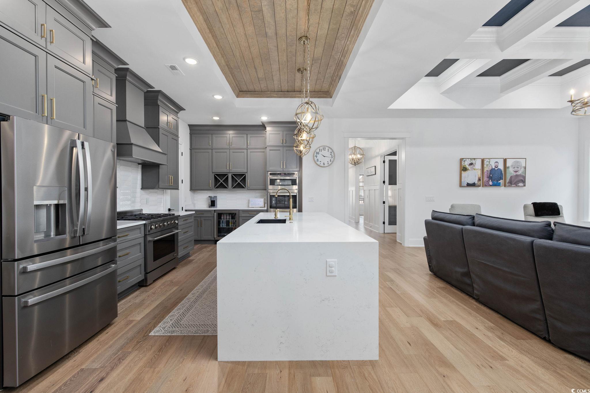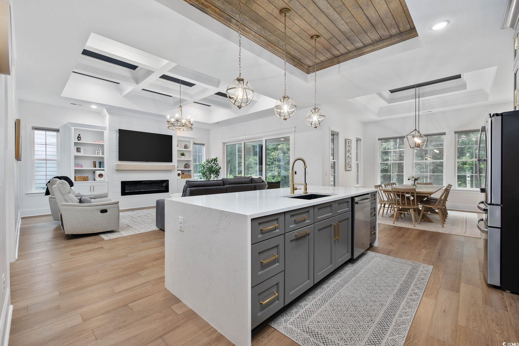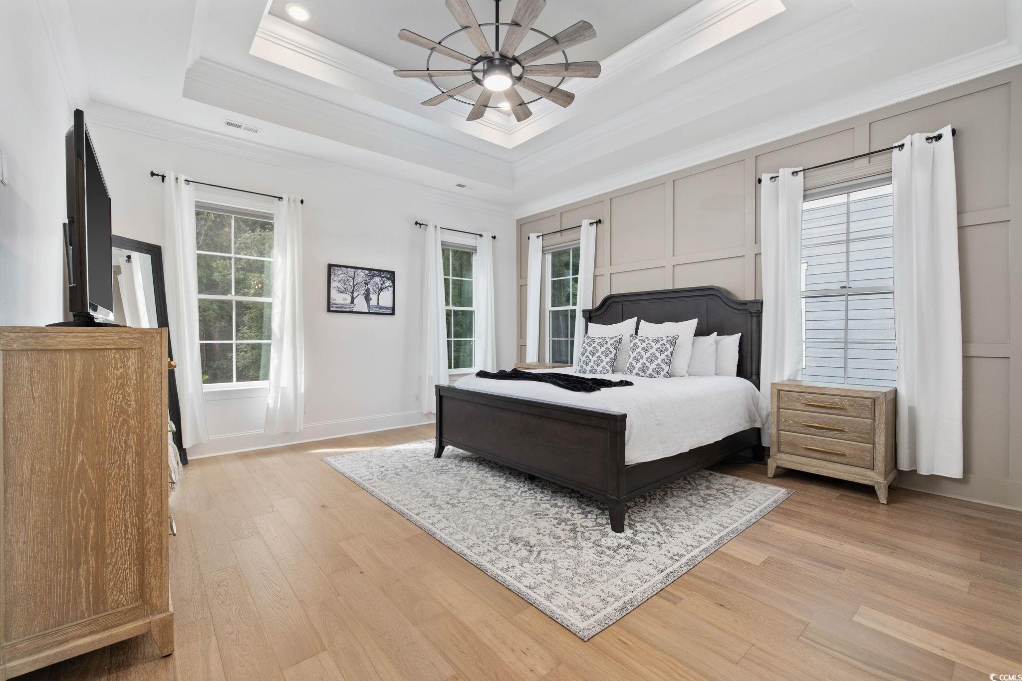 Introducing one of Myrtle Beachs most exquisite custom homes, perfectly positioned in the exclusive gated community of Waterway Palms Plantation. From the moment you step inside you'll see that this residence is a true Coastal masterpiece, offering nearly 3,700 heated square feet of meticulously designed living space, including 6 bedrooms, 4 bathrooms, and many quality upgrades. The beautifully landscaped exterior and classic Southern front porch, adorned with tapered columns and a wooden accent ceiling, set an inviting tone. As you enter, you'll find the foyer illuminated by statement lighting with a contemporary flair. The open concept living room impresses with a coffered ceiling, built-in bookshelves, a fireplace, and three sliding glass doors that open to the screened back porch. Stepping outside you'll be able to relax in a porch swing and have views of a fully fenced backyard. The chefs kitchen is a true culinary haven. It features ceiling-height custom cabinetry, a wood-accented tray ceiling, and a stylish tile backsplash. A quartz island, gas range, farmhouse sink, stainless steel appliances, and a spacious walk-in pantry with upper and lower storage complete the space. The formal dining room, with its large windows and tray ceiling, is perfect for elegant gatherings. The first-floor owners suite is a luxurious retreat, featuring a wooden accent wall, tray ceiling, a spa-like ensuite with a custom shower, soaking tub, dual vanities, and a massive walk-in closet complete with custom shelving and a center. Also on the main level: a second bedroom and full bath with tile floors and glass shower doors, a sitting room with wainscoting and chandelier, a laundry room with sink and cabinetry, and a custom mudroom with boot storage and coat hooks. Upstairs features three additional bedrooms, each with access to bathrooms featuring dual vanities, a large bonus room, and ample walk-in attic storage. Throughout the home, youll find durable and stylish luxury vinyl plank flooring. An attached two-car garage completes the home, while community amenities include a resort-style pool, clubhouse, pickleball court, tennis courts, playground, dry dock storage, and boat launch along the Intracoastal Waterway. This extraordinary home offers luxury, functionality, and communityeverything youve been searching for in the heart of Myrtle Beach.