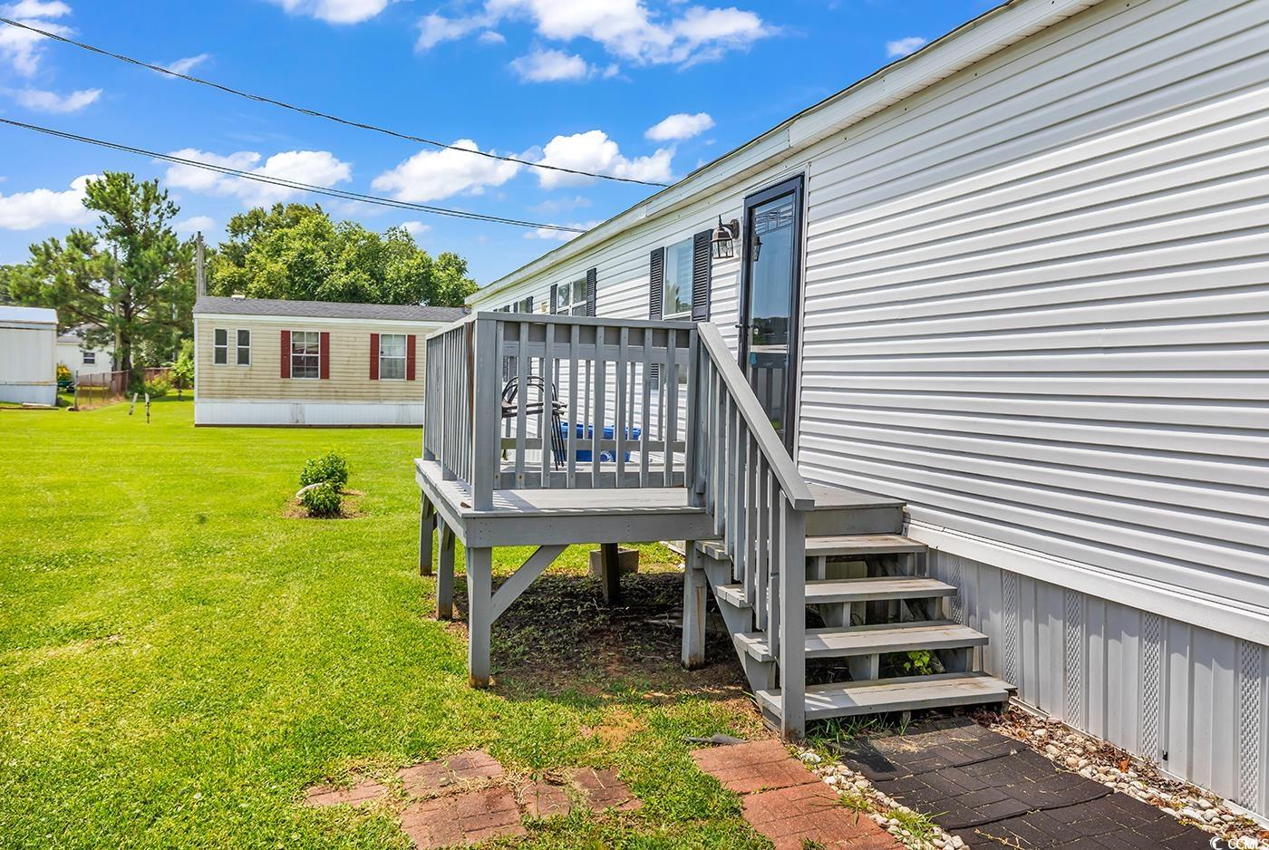 Welcome to 2100 HWY 15 Lot 18, Myrtle Beach SC, 29577. This gem of a property offers a simplistic yet luxurious lifestyle. Nestled within the heart of Myrtle Beach, it's a home designed with a blend of comfort and style. This beautiful abode features two spacious bedrooms and two full bathrooms, providing ample space for relaxation and tranquility. The home is adorned with premium carpeting and top-notch appliances, ensuring a lifestyle of convenience and sophistication. The primary suite is a haven of luxury with its stunning bamboo floorings, offering an elegant touch to the overall design. The unique feature of air/heat vents in the ceiling, commonly found in custom-built homes, ensures a comfortable living environment all year round. But it's not just the house that's impressive. The location is a dream come true. Just a stone's throw away from the beach, you can enjoy the sun, sand, and surf whenever your heart desires. For those who love shopping, malls are in close proximity, offering a diverse range of retail and dining options. Essential amenities like pharmacies are also within easy reach, adding convenience to your daily life. This property is more than just a house; it is a lifestyle choice. It offers a unique blend of comfort, style, and convenience, making it a perfect choice for those seeking a home in Myrtle Beach. Come and experience the charm of this property and the vibrant community around it. You won't be disappointed!