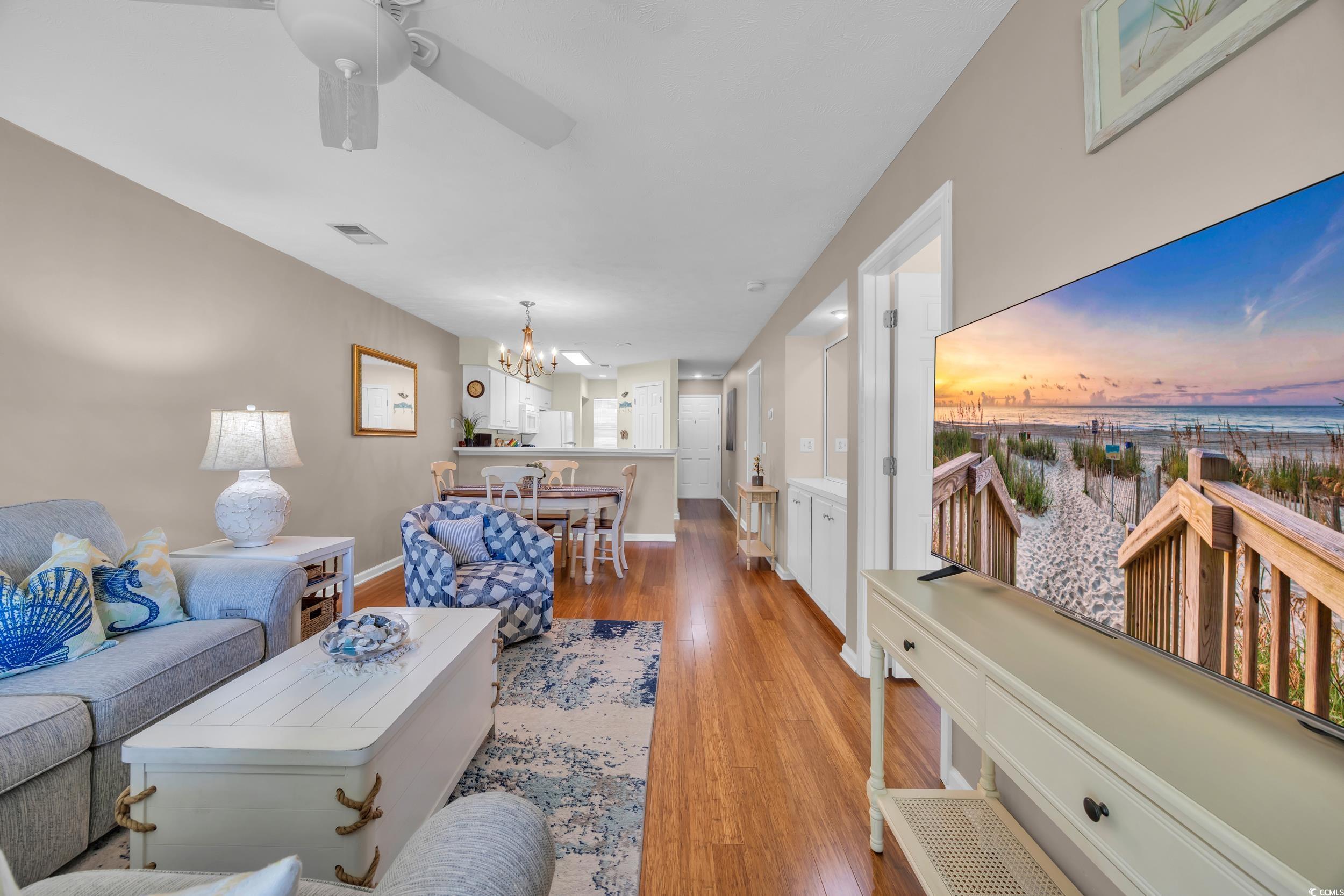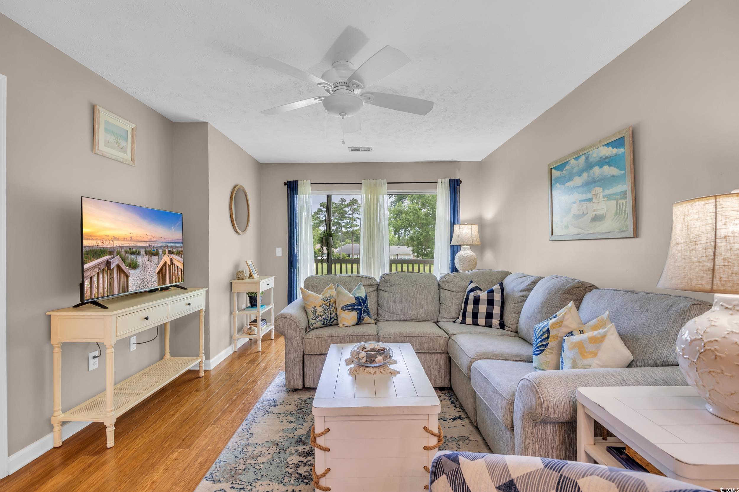 Welcome to this beautifully furnished 2-bedroom, 2-bath condo offering comfort, convenience, and stunning golf course views. Step inside to a bright and open living space, complete with a new HVAC system installed in 2023 for year-round comfort. Sliding glass doors lead to an oversized screened porch, perfect for relaxing and enjoying the peaceful view of the fairway. The well-equipped kitchen features plenty of cabinet space and comes with all major appliancesincluding refrigerator, range, microwave, and dishwashermaking meal prep easy and convenient. A full-size washer and dryer are also included for added convenience. This move-in-ready condo comes completely furnished, with everything you need already in place. Just bring your suitcase! Enjoy resort-style amenities including a sparkling pool, tennis courts, and a community waterway dock for kayaking, fishing, or simply taking in the scenery. Whether you're looking for a vacation getaway or full-time living, this condo has it all.