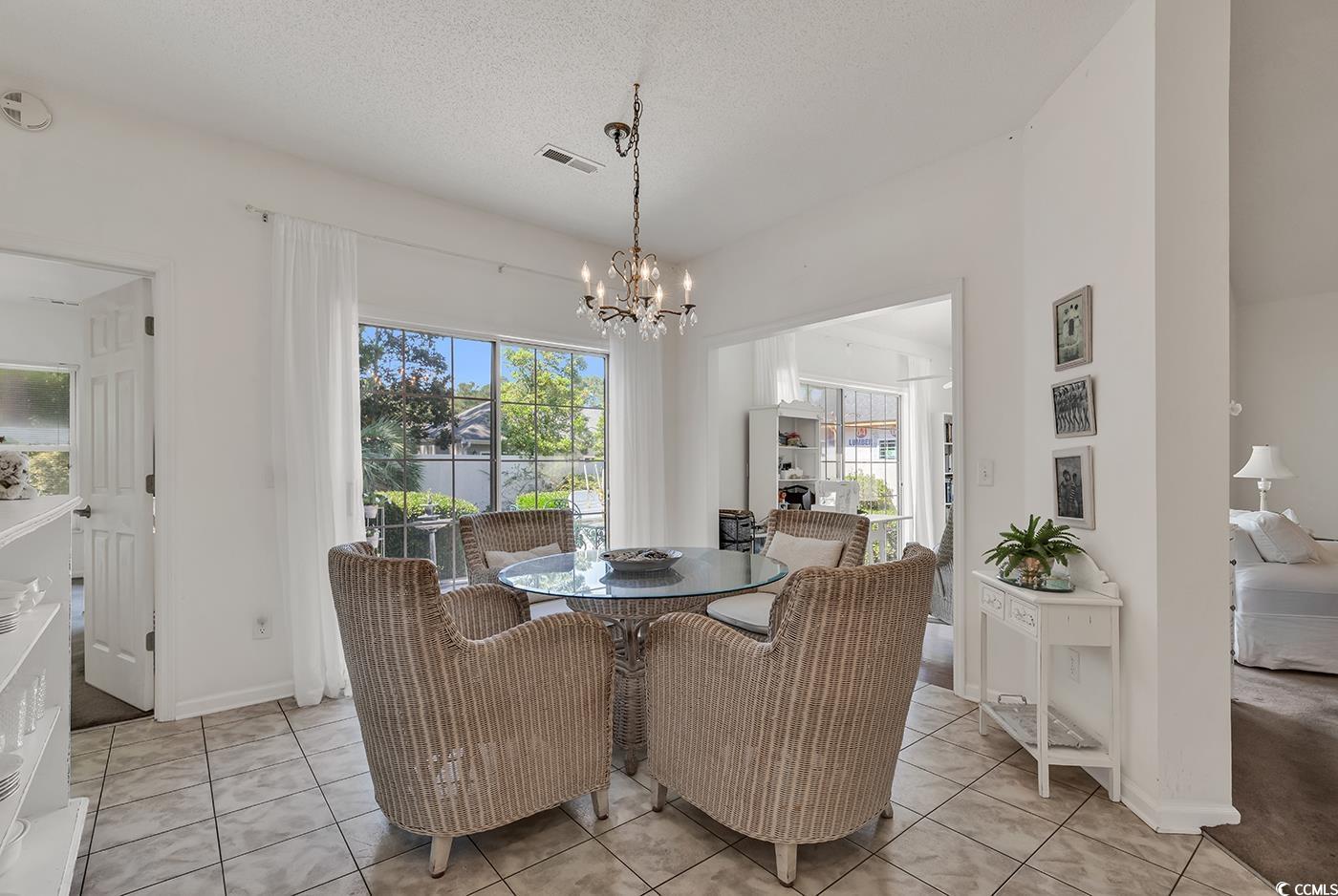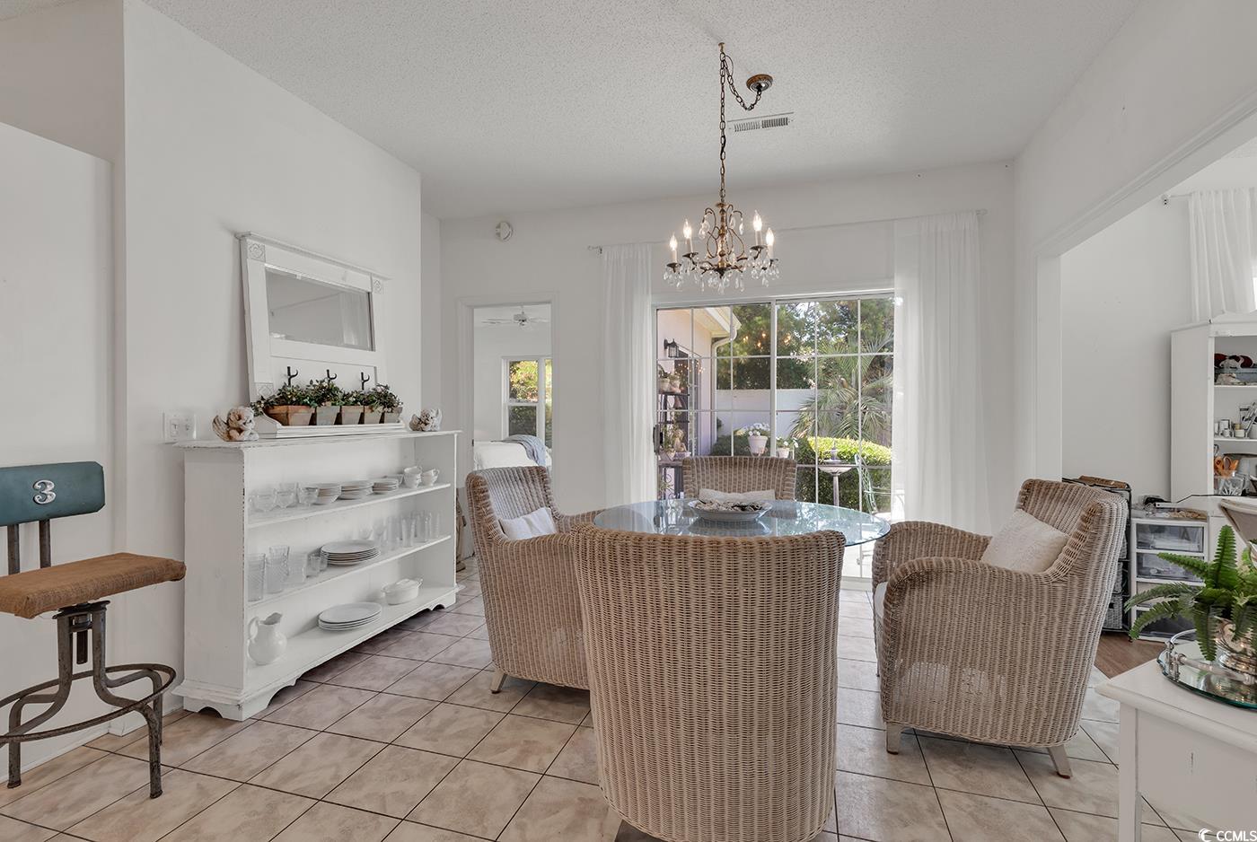 Welcome to 1208 Trisail Lane in the highly sought after Tidewater Plantation Golf Community in North Myrtle Beach, South Carolina! Nestled in the Courtyard Park section of Tidewater, the lovely mature trees add a feeling of quiet seclusion and peaceful tranquility. This home boasts 3 large bedrooms with 2 full bathrooms; a split bedroom floor plan with the Primary bedroom suite located in the back of the home and secondary bedrooms near the front. As you enter the front door, you are welcomed by an expansive Foyer, flooded with natural light and airiness exuding from the cathedral ceilings that carry you to the open floorplan Living and Dining Rooms. The kitchen has plenty of light, multiple counter top spaces for meal preparation, lots of cabinets for storage, and easy access to all of the main living spaces! The attached 2 car garage is spacious and allows direct access to the home through your laundry room, which connects to the kitchen for quick transfer of groceries and supplies from the car to inside. There are 2 options for dining: a Formal Dining Room space with a lovely chandelier and a separate Kitchen Nook dining space for everyday meals. Finally, you have direct access to the secluded patio from 3 separate living spaces at the back of the home: the Primary Bedroom, Kitchen Nook, and Sitting Room. Your fully enclosed, tree-lined, stone-walled backyard has meticulously manicured shrubs and Palmetto trees. Perfect for enjoying your morning coffee or evening beverages in the peace and quiet of the neighborhood. Don't forget the Golf Club, which is nestled between the Intracoastal Waterway and Cherry Grove Inlet, delivering stunning natural beauty and a layout that has been ranked among the nations top 100 public golf courses. Lastly, treat yourself to the ""hidden gem"" that is Joey's Clubhouse Grill located within the gates of Tidewater Golf Club, which offers American cuisine and pristine golf course views as you dine. The weather is changing, so it's a perfect time to fall in love with this beautiful home and make it your own!