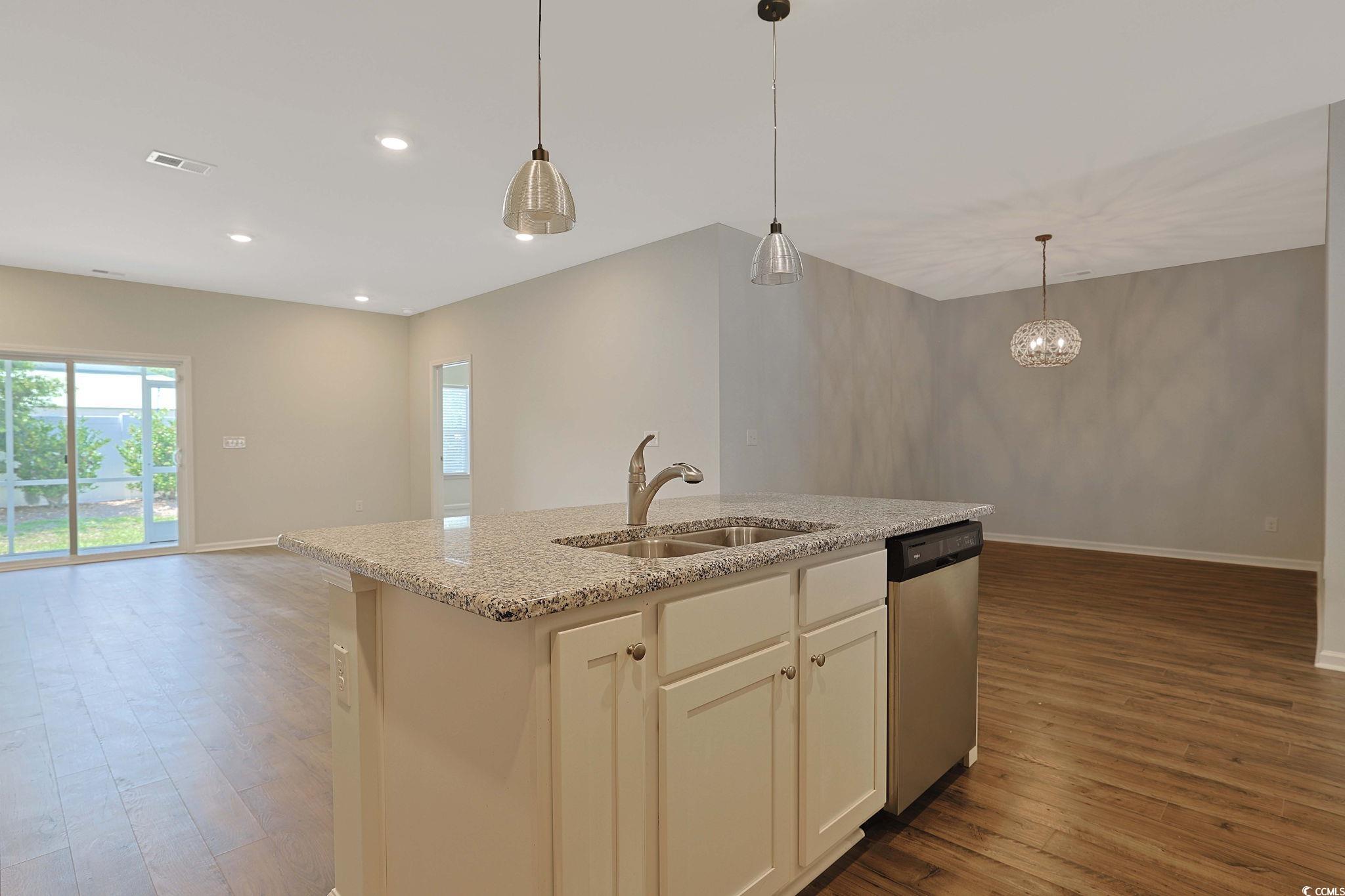Introducing this exceptional, move-in ready, 2 bedroom 2 bath townhome located in the Inlet View community within walking distance of The Murrells Inlet Marsh Walk Restaurant/Shopping complex. This unit features new paint throughout, new carpeting, wood look LVP, tile & carpet flooring, smooth flat ceilings, recessed lighting, a formal dining area, a living room that showcases sliders that open up to the relaxing screened-in back patio. The family friendly kitchen is equipped with a stainless steel appliance package, granite counter tops, cabinets topped with crown moulding, a kitchen island with a delightful breakfast bar, and a practical pantry. The primary bedroom offers a single step tray ceiling with a fan, private access to the ensuite bath hosting a vanity with dual sinks, a comfort station, a deluxe step-in shower, and a large walk-in closet. This peaceful home is completed with an additional bedroom, a full guest bath with double sink, tub/tile, extra closet space, and a single car attached garage with an epoxied floor and a pull-down ladder for storage over the garage. This home affords you easy access to the beach and golfing along with all of the other activities and happenings in Myrtle Beach & Murrells Inlet including fun eateries, award winning off-Broadway shows, public fishing piers, Marsh Walk, and intriguing shopping adventures along the Grand Strand. Conveniently located to your everyday needs, including grocery stores, banks, post offices, medical centers, doctors offices, and pharmacies. Check out our state of the art 3-D Virtual Tour.