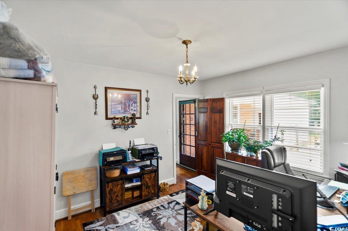 Back on MARKET! Buyer financing fell through. Discover a rare opportunity to own a beautifully maintained 3-bedroom brick home on nearly half an acre, ideally situated on a spacious corner lot in one of downtown Marions most established and sought-after neighborhoods. This home combines timeless character with modern convenience, all just 45 minutes from Myrtle Beach and moments from local shopping, dining, and parks. From the moment you arrive, the wide horseshoe driveway and two-car carport set the stage for comfort and functionality. Inside, a thoughtfully designed layout offers a spacious formal living room with a fireplace, a formal dining room perfect for entertaining, and a large great room ideal for family gatherings. The kitchen features custom cabinetry, granite countertops, and ample workspace to satisfy any home chef. Original hardwood floors run throughout most of the home, adding warmth and charm. A built-in security system is already in place for peace of mind. The generous lot includes a large backyard and an attached workshop with a roll-up doorideal for storing golf carts, motorcycles, tools, or lawn equipment. Just down the street, you'll find a popular midtown park complete with tennis courts, a playground, and a walking path. Whether you're looking for a peaceful place to call home or a spacious property with an unbeatable location, this one checks all the boxes. Don't miss your chance to own one of the largest residential lots in Marion. Homes in this neighborhood dont last longschedule your private showing today and make this beautifully crafted home yours.
