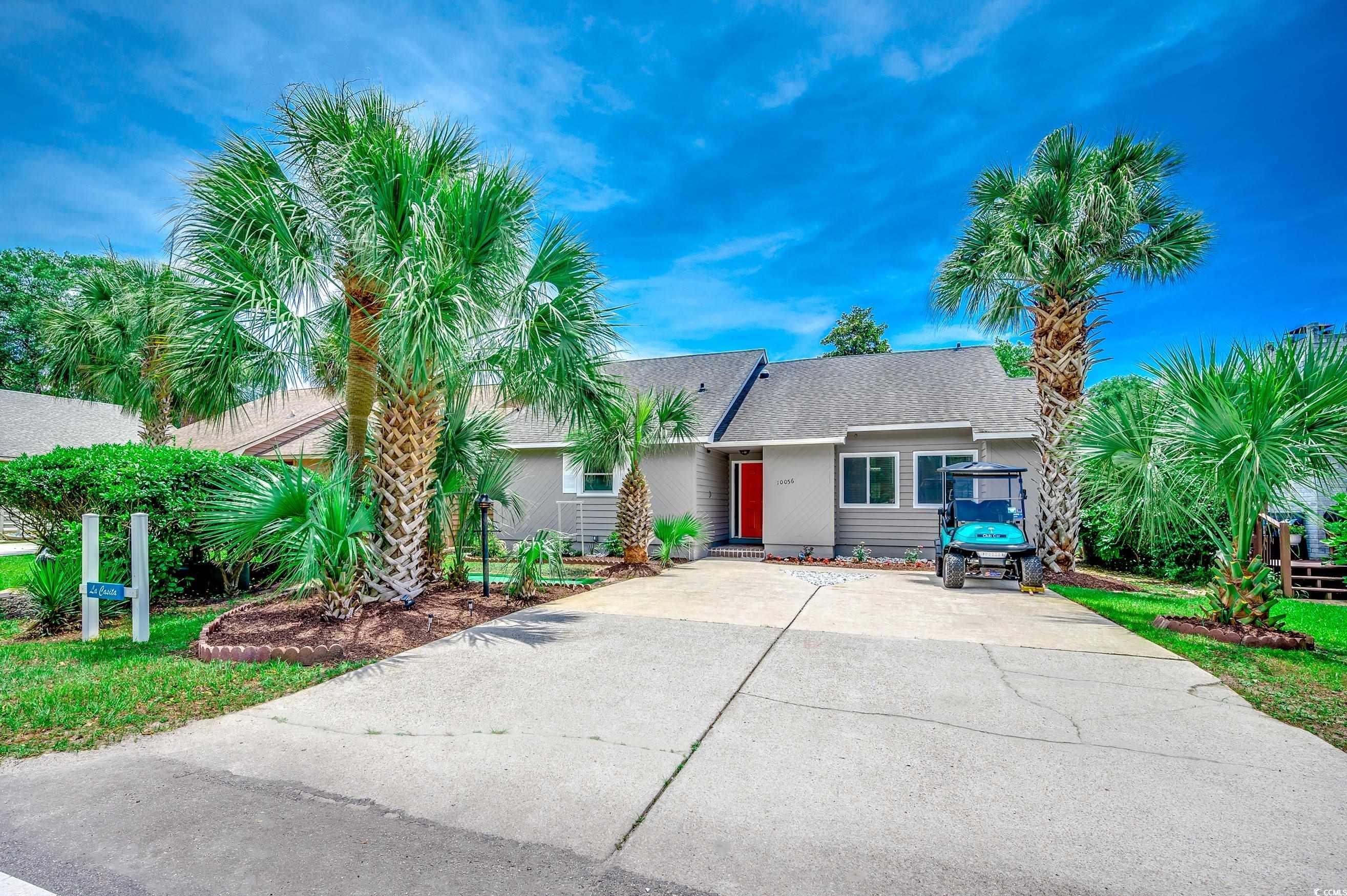OPEN HOUSE on Dec. 7th between 2-4pm! Come take a stroll to the beach whenever your heart desires from this lovely home located in Arcadian Shores. This fully-furnished beauty is completely move-in-ready and short-term rentals are allowed. It's currently being used as a vacation home and a turnkey short term rental, but it could also be a great primary residence. There is NO HOA and this wonderful home is located outside the city limits, so you can fully enjoy your freedom! This is a single-level home, which makes it easily accessible. As you arrive, you will notice lots of palm trees and your very own putting green. This one-of-a-kind home has an open concept with a split floor plan. When you come through the covered entry, you will see a long bar with a spacious dining area, which is perfect for entertaining. The kitchen features granite countertops with a modern waterfall edge, stainless steel appliances, and a custom tile backsplash. There's a wet bar in the living room with a stylish copper sink. This unique home has vaulted ceilings in the main living area and a propane fireplace. There's a solar tube in the foyer and it has upscale lighting throughout along with laminate flooring. The large owner's suite has two closets, one of which is a walk-in. This bedroom has private access to the side porch, which is a delightful place to get some fresh air in the mornings. The attached bath has a whirpool tub/shower combo and both bathrooms have beautiful vessel sinks. The owner is offering a home warranty for extra peace of mind. The 6x21 side porch can easily be screened-in and it would be a great place to relax in the shade. The washer/dryer will be included along with all of the window treatments. The back porch is the perfect place to enjoy the ocean breeze and there is a patio for grilling out. The yard has been fenced in so you can let all of your furry friends out to play. The landscaping has been recently revitalized with flowers in the front and sod in the rear. You can rinse off under the outdoor shower and then sit by the fire pit on those cooler nights. There are two storage rooms on the other side of the house for all your beach gear. Golf carts and motorcycles are allowed. You could even park a small camper or a boat in the driveway if you wanted. Arcadian Shores is right across the street and you can enjoy views of the golf course from all of the bedrooms. This rare home is located close to everything that the Grand Strand has to offer. The Tanger Oulets are only a few minutes away along with Barefoot Landing and Ocean Annie's Tiki Bar where you can listen to live music! This is truly a must-see and you don't want to miss out! Schedule your showing today and don't forget to check out the virtual tour! Square footage is approximate and not guaranteed. Buyers responsible for verification.