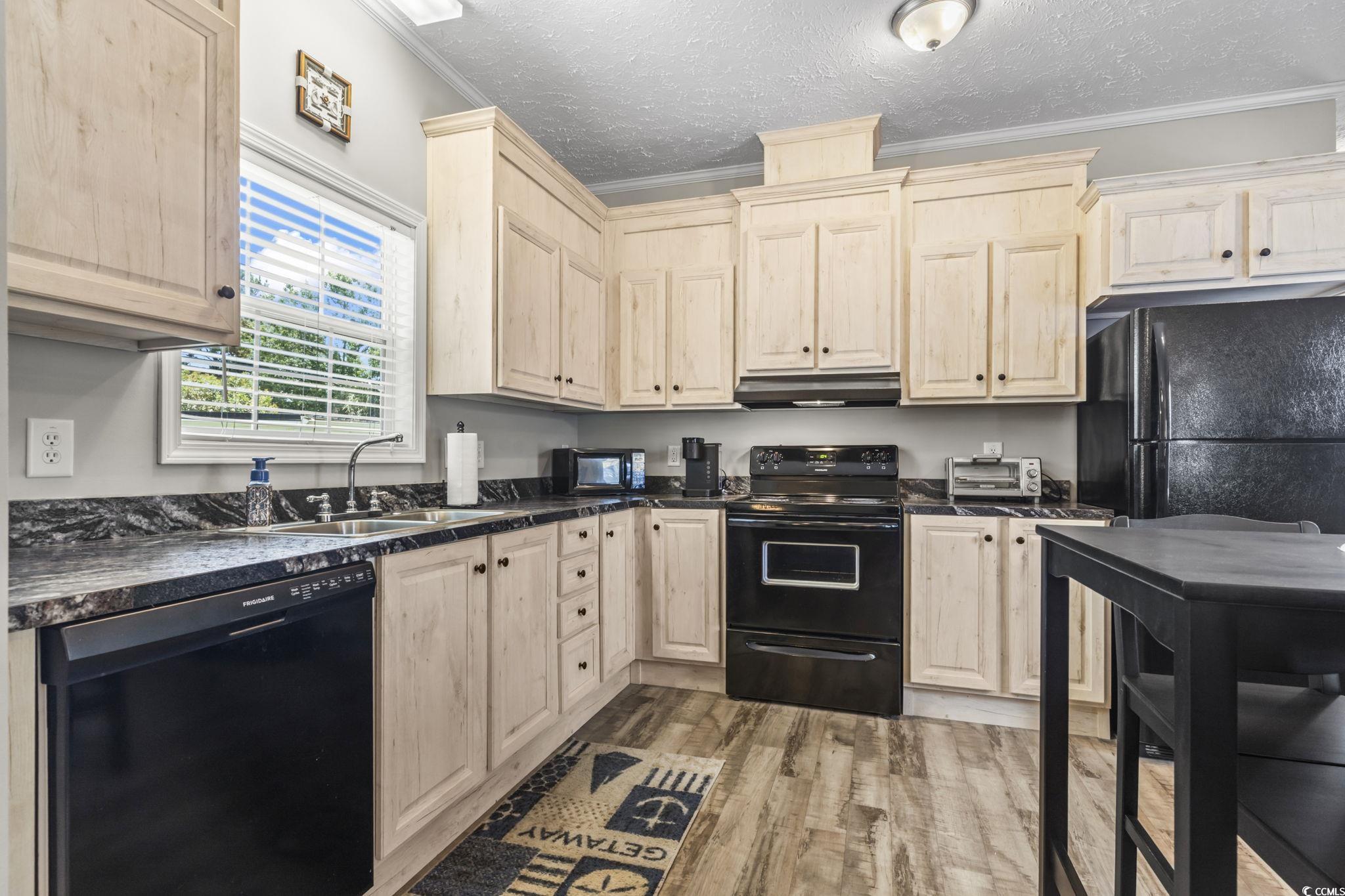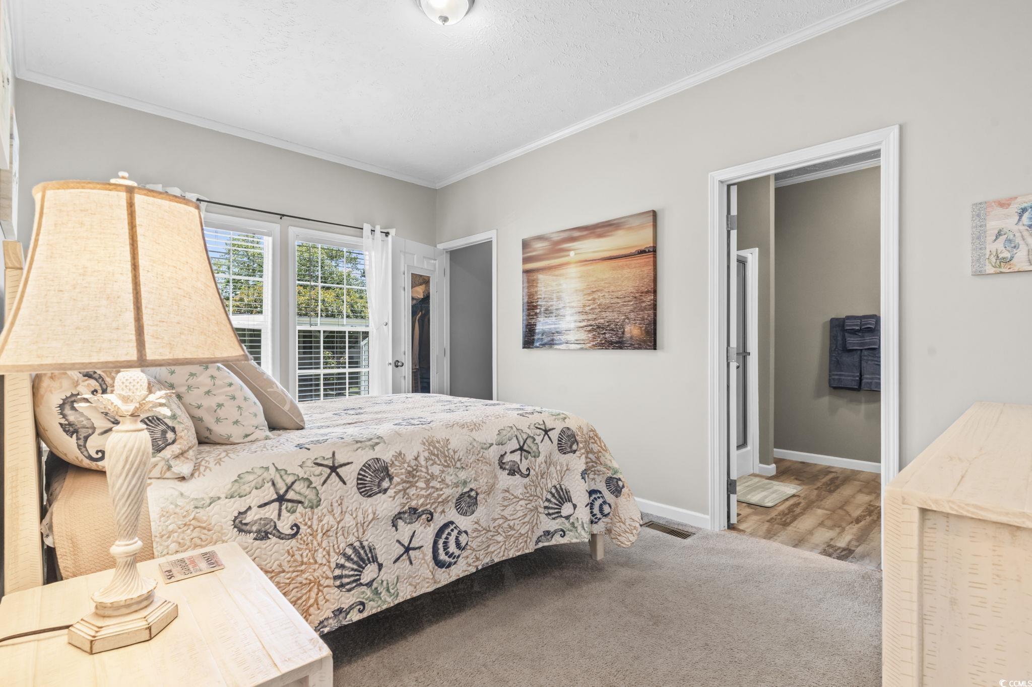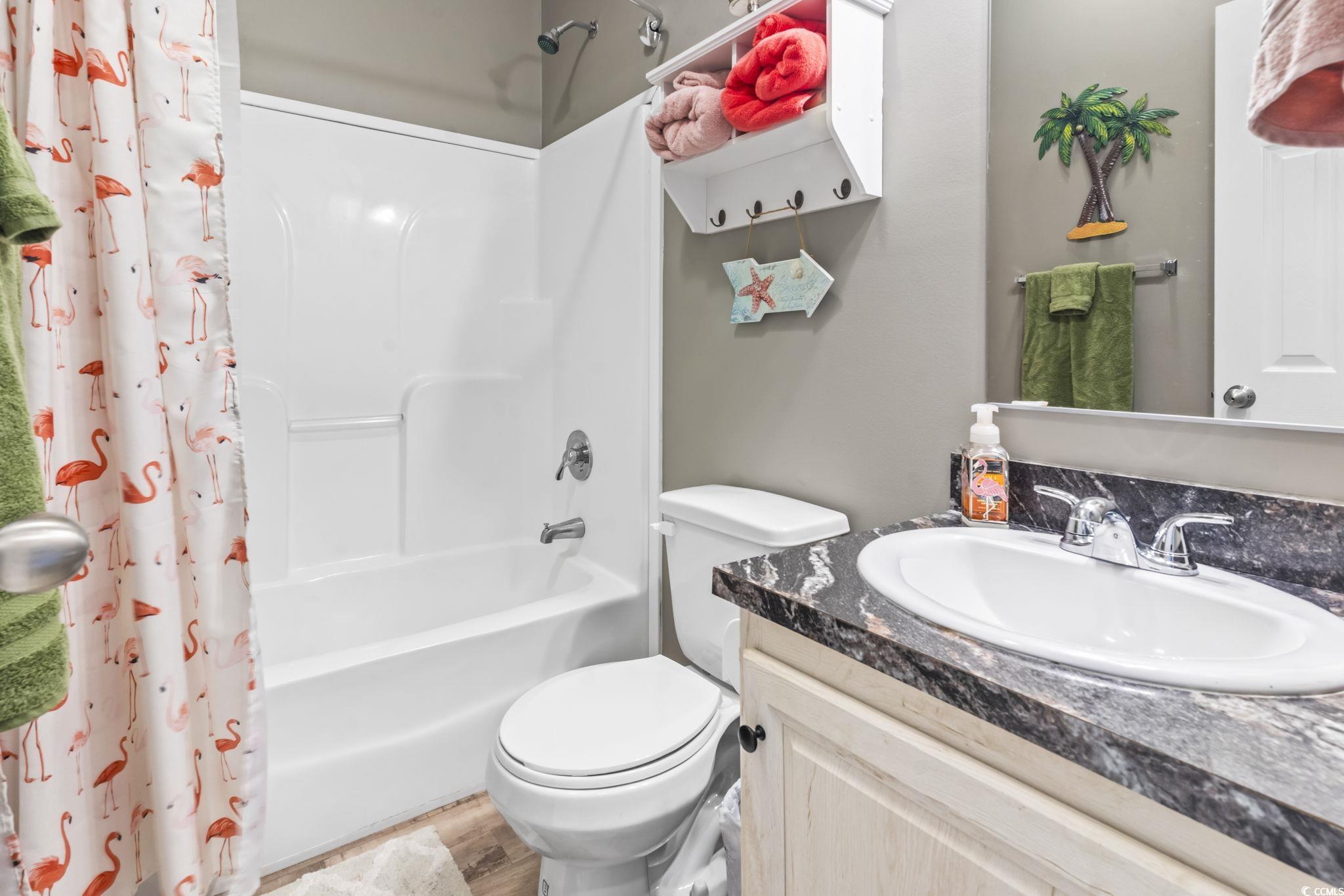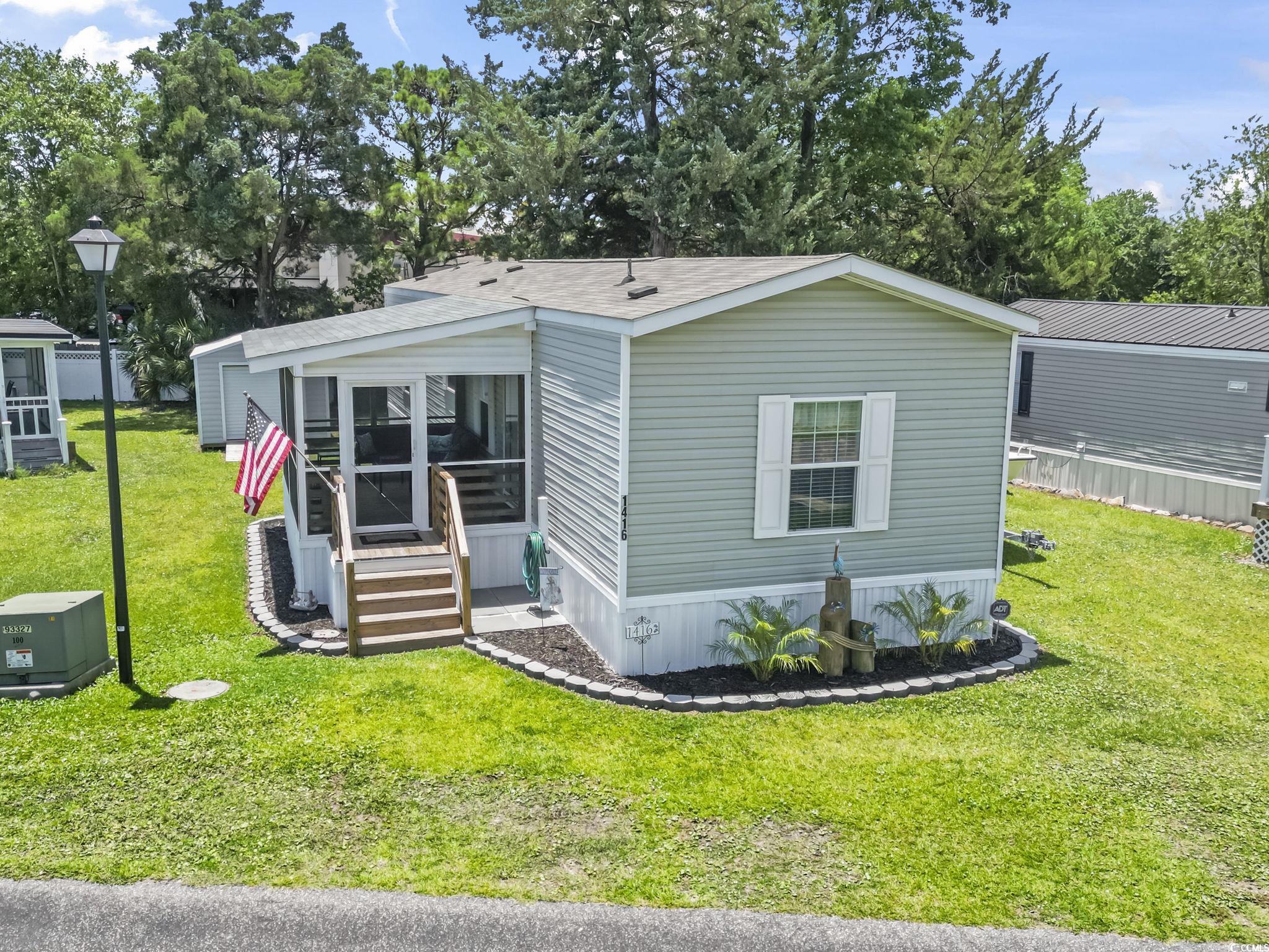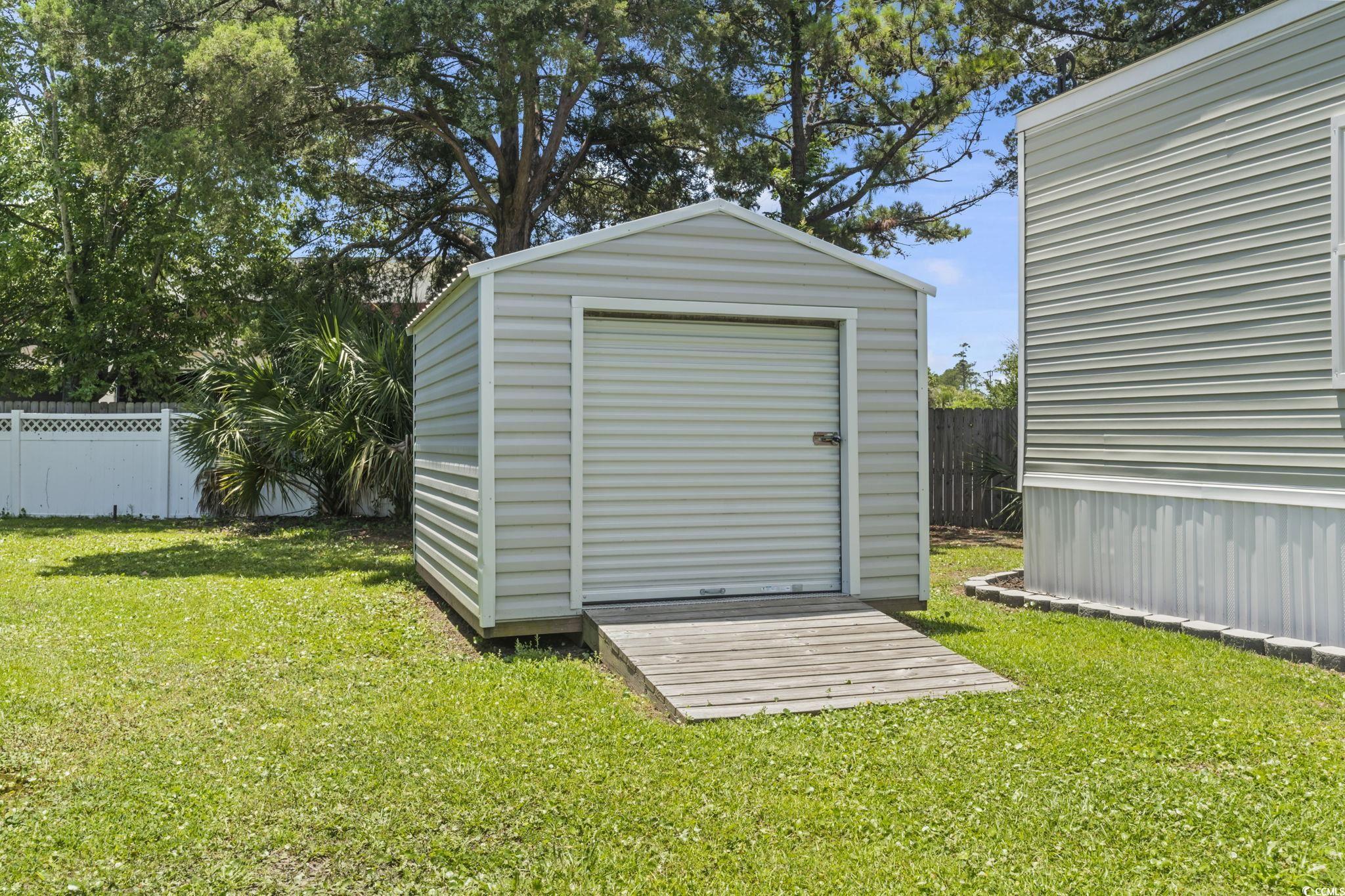 THIS IS THE ONE YOU'VE BEEN WAITING FOR!!! Welcome to your coastal retreat!!! Located just 1 mile from the sandy shores in the sought-after community of Waterway View, this meticulously maintained turnkey gem is fully furnished!!! Tastefully decorated and exuding coastal charm, this beauty is ready for you to call home! Just a short golf cart ride to the Atlantic ocean and close to the intracoastal waterway, 1416 Circle Dr is conveniently located to all that North Myrtle Beach has to offer including golf, fishing, boating, restaurants, shopping and local attractions. Waterway View will SOON be adding a beautiful NEW POOL, modern community room and a BBQ and picnic area for gathering & relaxing. THIS IS NOT your average manufactured home! Step inside and be wowed by the soaring 9-foot ceilings and crown molding throughout, giving this exquisite home a spacious, modern feel along with smooth sheet-rocked walls freshly painted in 2024! The open-concept layout seamlessly connects the living area and the well-appointed kitchen, featuring beautiful light wood cabinetry offering plenty of storage, generous counter space, Frigidaire appliances and a new black pub table with seating for 4 perfect for dining, gathering or game night! Make your way past the laundry area hosting a GE Washer and Dryer on your way to the owner's suite. The primary ensuite is a true retreat, complete with a queen sleigh bed, matching furnishings and walk-in closet. The primary bath is fully equipped with a large vanity, shower and built in cabinetry featuring 3 extra roomy cabinets for housing all of your towels, linens and bathroom storage needs. The second spacious bedroom is situated on the the other side of the home giving way to a split-bedroom plan ensuring privacy for both you and your family or guests. Complete with a queen bed and walk-in closet, this tranquil bedroom is located directly beside the second full bathroom featuring a tub shower combo and a flamingo vibe! Enjoy coastal breezes from the relaxing and serene 16x10 screened-in porch with decking, the perfect spot for morning coffee or evening unwinding. This is sure to be favorite spot for all. The detached outdoor shed with a roll-up steel door, can accommodate a golf cart as well as all of your beach gear. EXCITING NEWS!!! Waterway View will SOON be adding a beautiful NEW POOL, modern community room and a BBQ and picnic area for gathering & relaxing!!! Completion should be spring or early summer 2026!!! Whether you're looking for a vacation getaway or a year-round residence, this charming home offers a rare blend of comfort, style, and location. Schedule your showing today! This one won't last long!