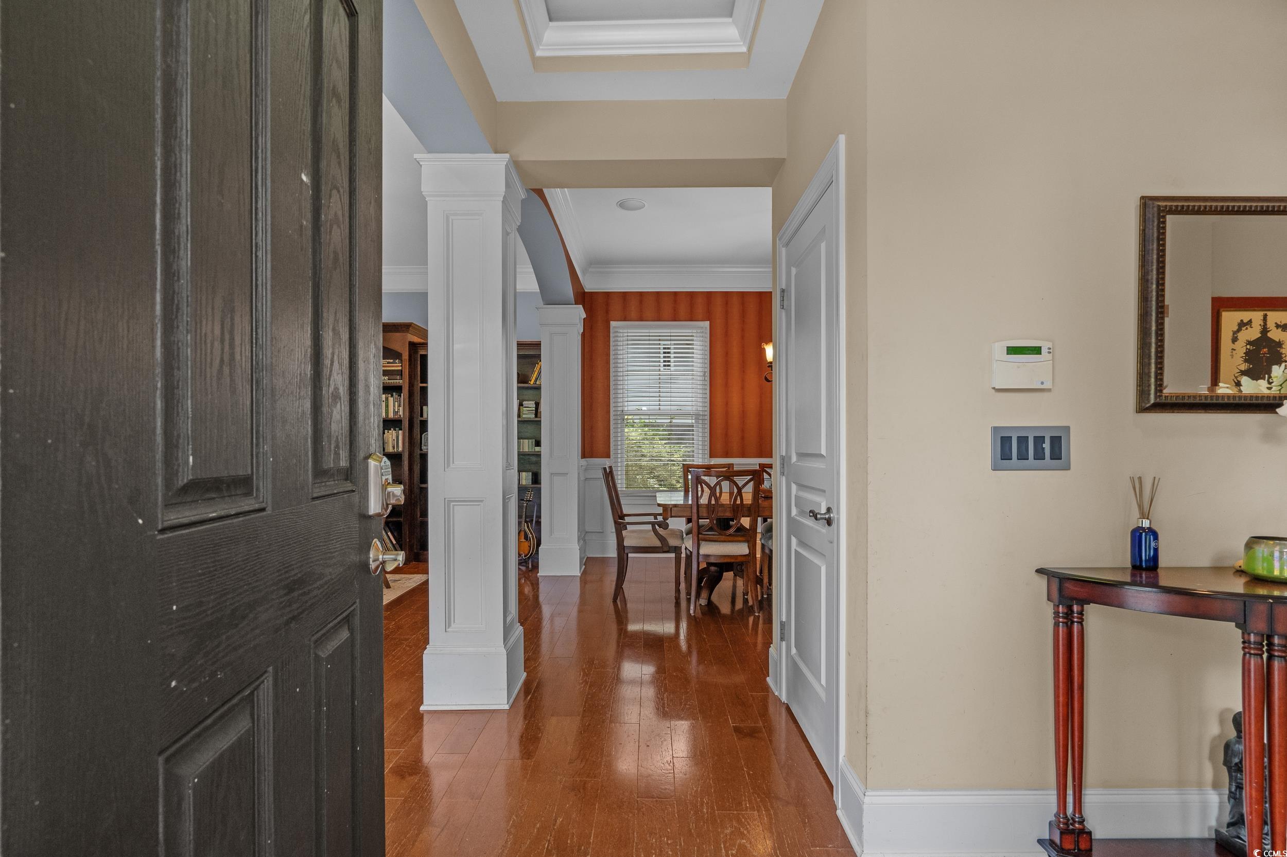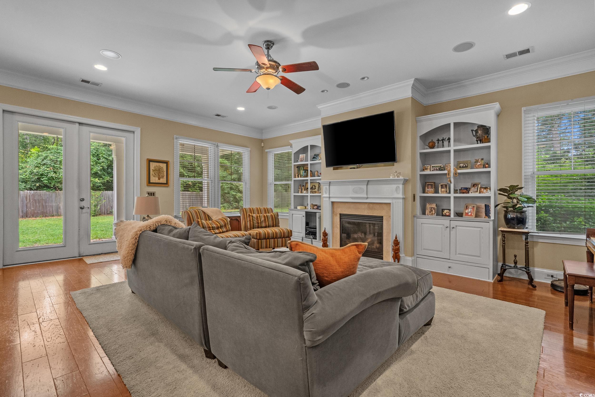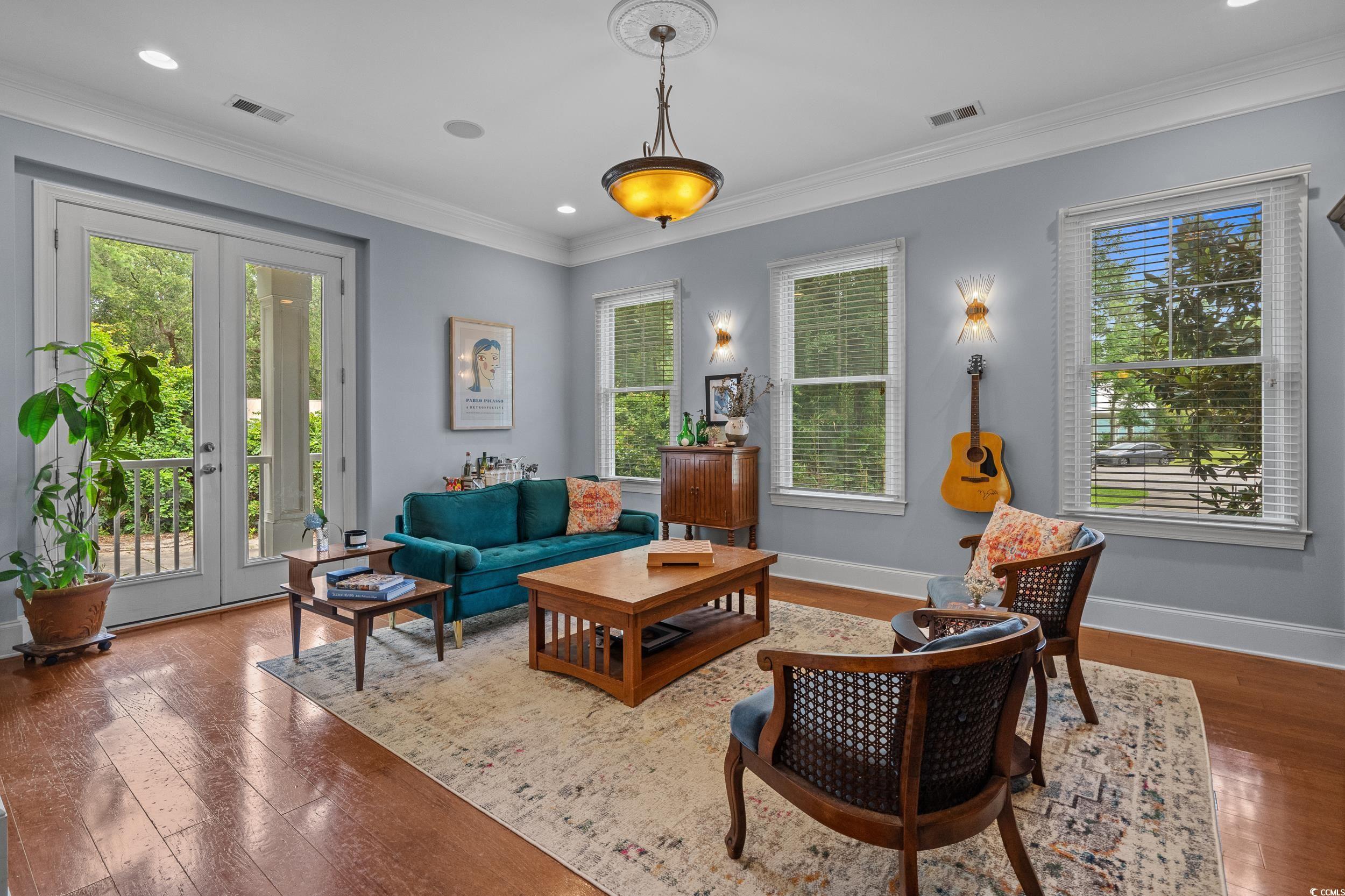 OPEN HOUSE 9/27 12-2 LOCATION This custom built Charleston style home was perfectly placed on the lot to maintain privacy and keep all the gorgeous mature trees. NO HOA and a short walk or bike ride to beautiful North Litchfield beach. This home has 10 foot ceilings and custom moldings throughout, it even has a beautiful lighted stained glass fixture as you walk in. The first floor has a welcoming open concept, with a kitchen that is open to one of the 2 Living rooms, a huge pantry and dining space and half bath. The 2nd floor has a spacious primary suit with both shower and tub, a laundry room, 2 bedrooms with walk in closets and a hall bath, it even has 2 side porches and a large covered back porch with a fenced in yard. It is the perfect home for indoor and outdoor entertaining The 3rd level has a large room with its own bathroom closet and huge walk in storage closet with a walk in attic. The entire house is so spacious and well laid out. This home is a must see!