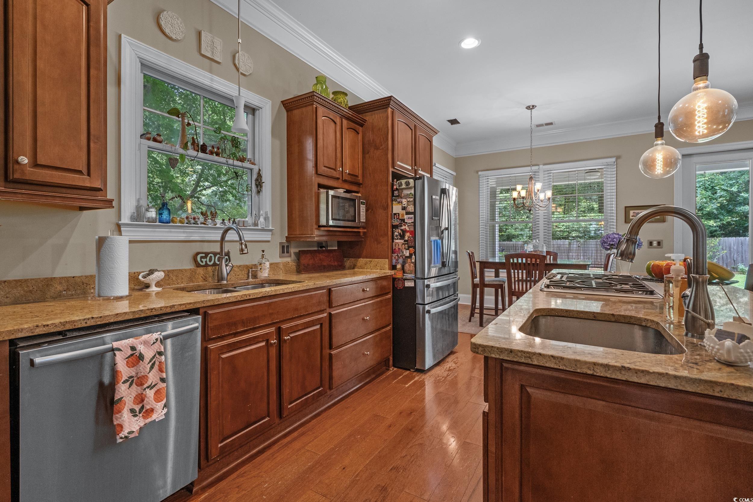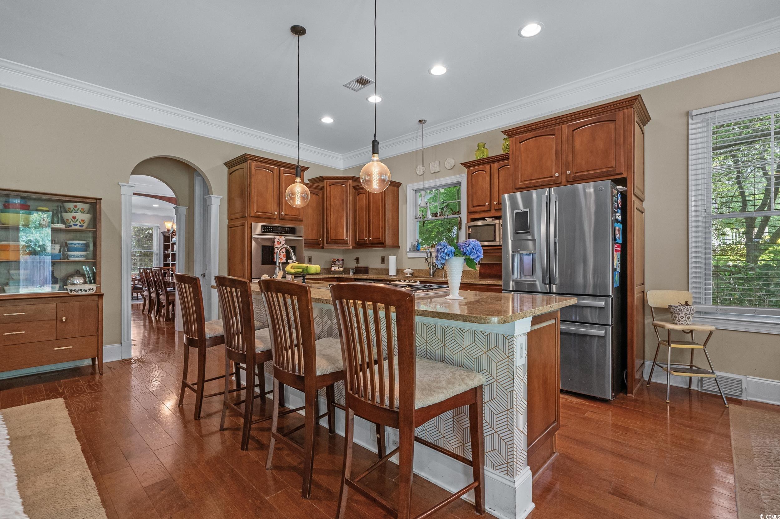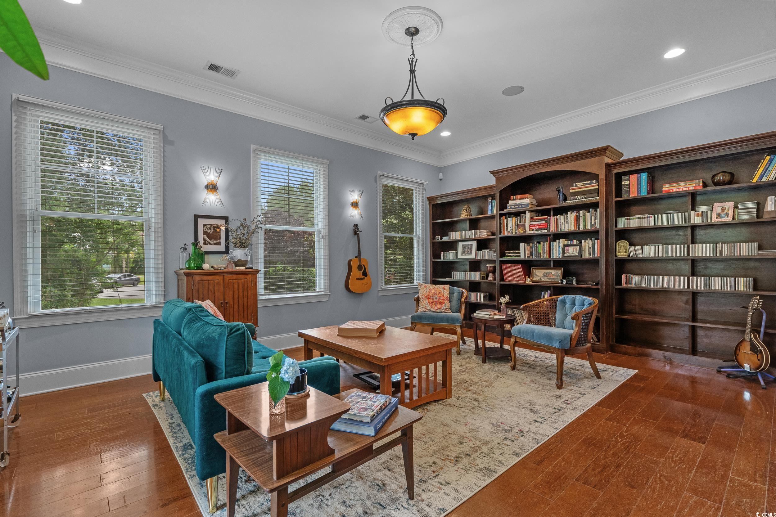 OPEN HOUSE 9/27 12-2 LOCATION This custom built Charleston style home was perfectly placed on the lot to maintain privacy and keep all the gorgeous mature trees. NO HOA and a short walk or bike ride to beautiful North Litchfield beach. This home has 10 foot ceilings and custom moldings throughout, it even has a beautiful lighted stained glass fixture as you walk in. The first floor has a welcoming open concept, with a kitchen that is open to one of the 2 Living rooms, a huge pantry and dining space and half bath. The 2nd floor has a spacious primary suit with both shower and tub, a laundry room, 2 bedrooms with walk in closets and a hall bath, it even has 2 side porches and a large covered back porch with a fenced in yard. It is the perfect home for indoor and outdoor entertaining The 3rd level has a large room with its own bathroom closet and huge walk in storage closet with a walk in attic. The entire house is so spacious and well laid out. This home is a must see!