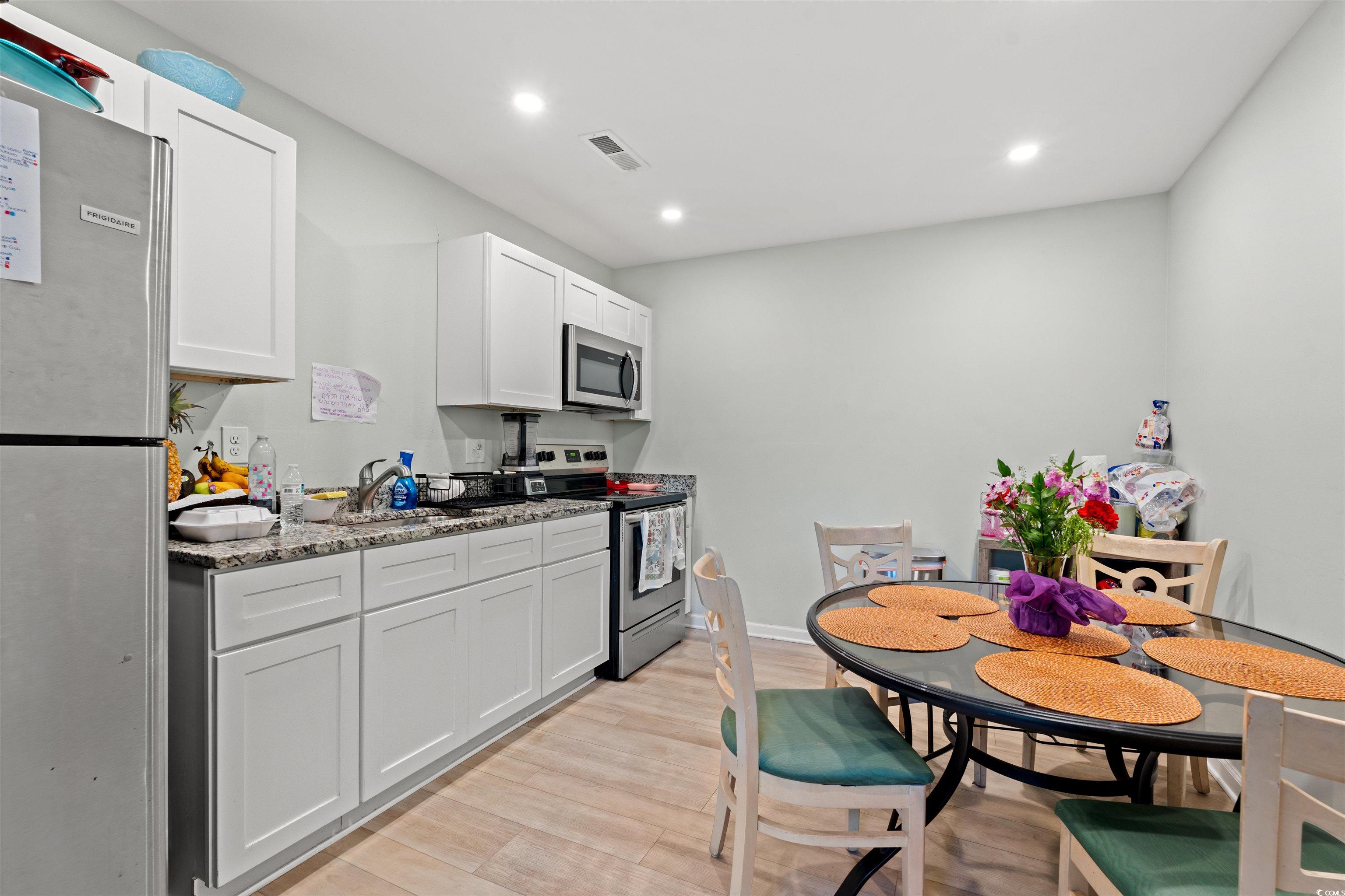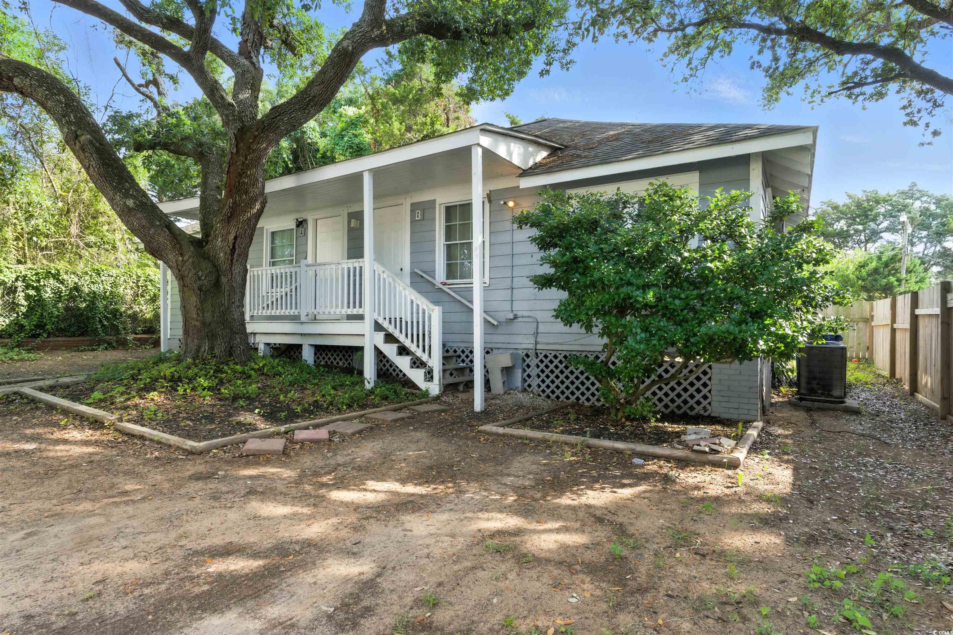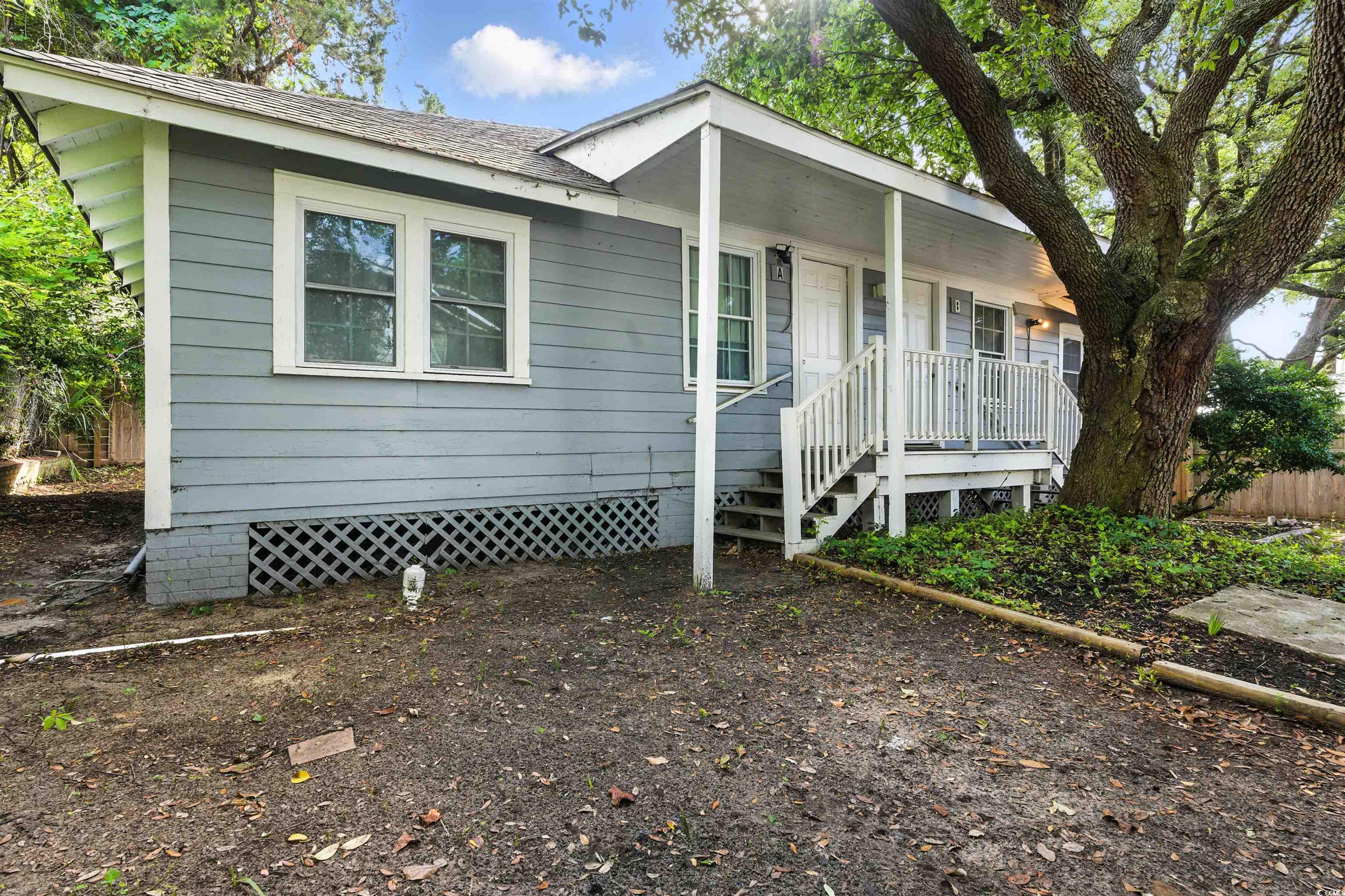Excellent opportunity to own a quadplex just steps from the beach, with ocean views from the front balcony of one of the two buildings. The property features two separate duplexes, totaling four units. Each unit has two bedrooms. The two units in the two-story building each include one and a half baths, while the units in the other building each have one full bath. Cosmetic updates were completed throughout the property over the past few years, including upgraded flooring, bathroom improvements, paint, tile showers, granite countertops, backsplashes, and stainless steel appliances. Not all features are present in every unit, but each unit includes a mix of these enhancements. Zoned MU-H, the property allows for both short-term and long-term rentals, offering strong flexibility for investors or future redevelopment. Located in the heart of Myrtle Beach, just minutes from shopping, dining, entertainment, and everything the Grand Strand has to offer.