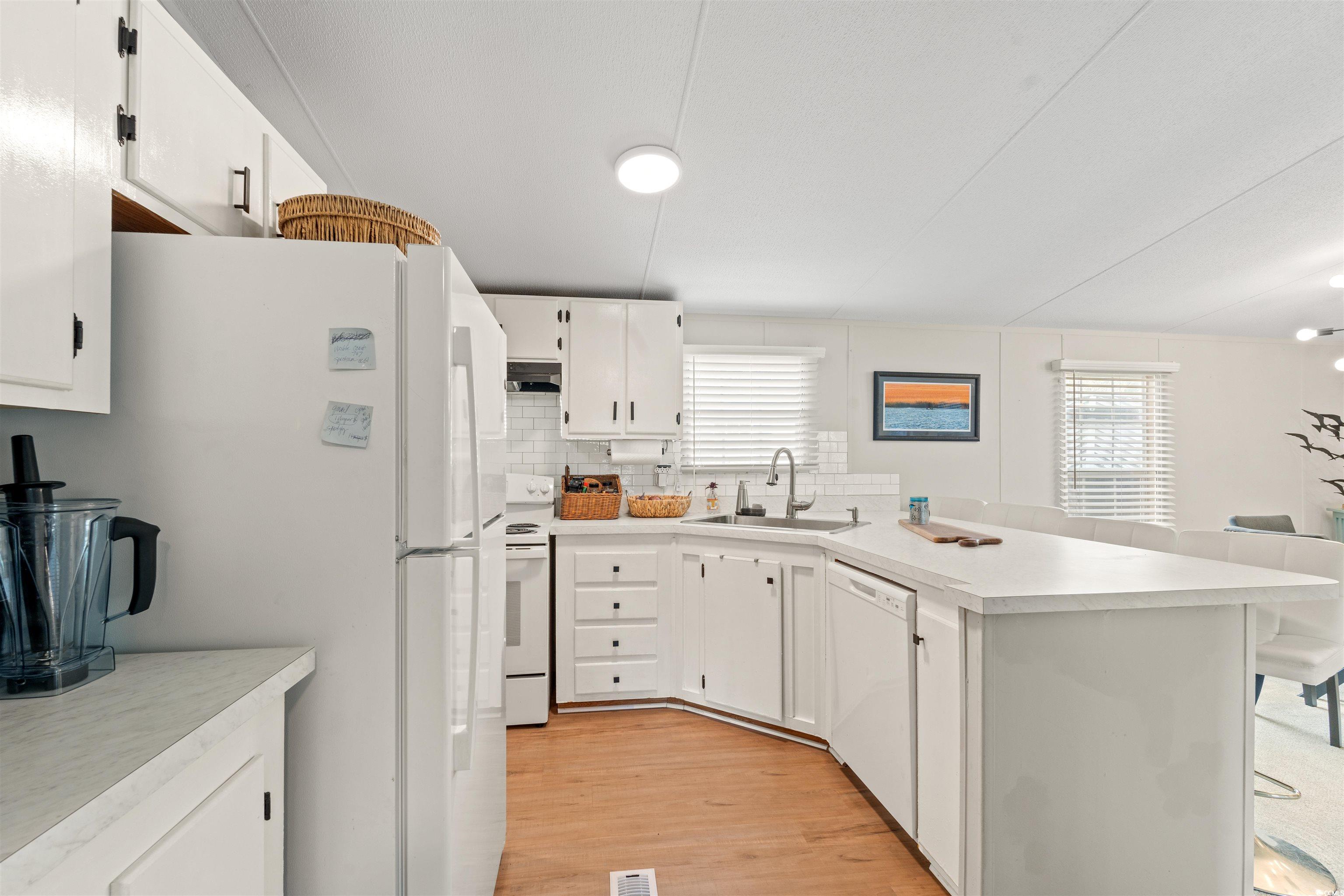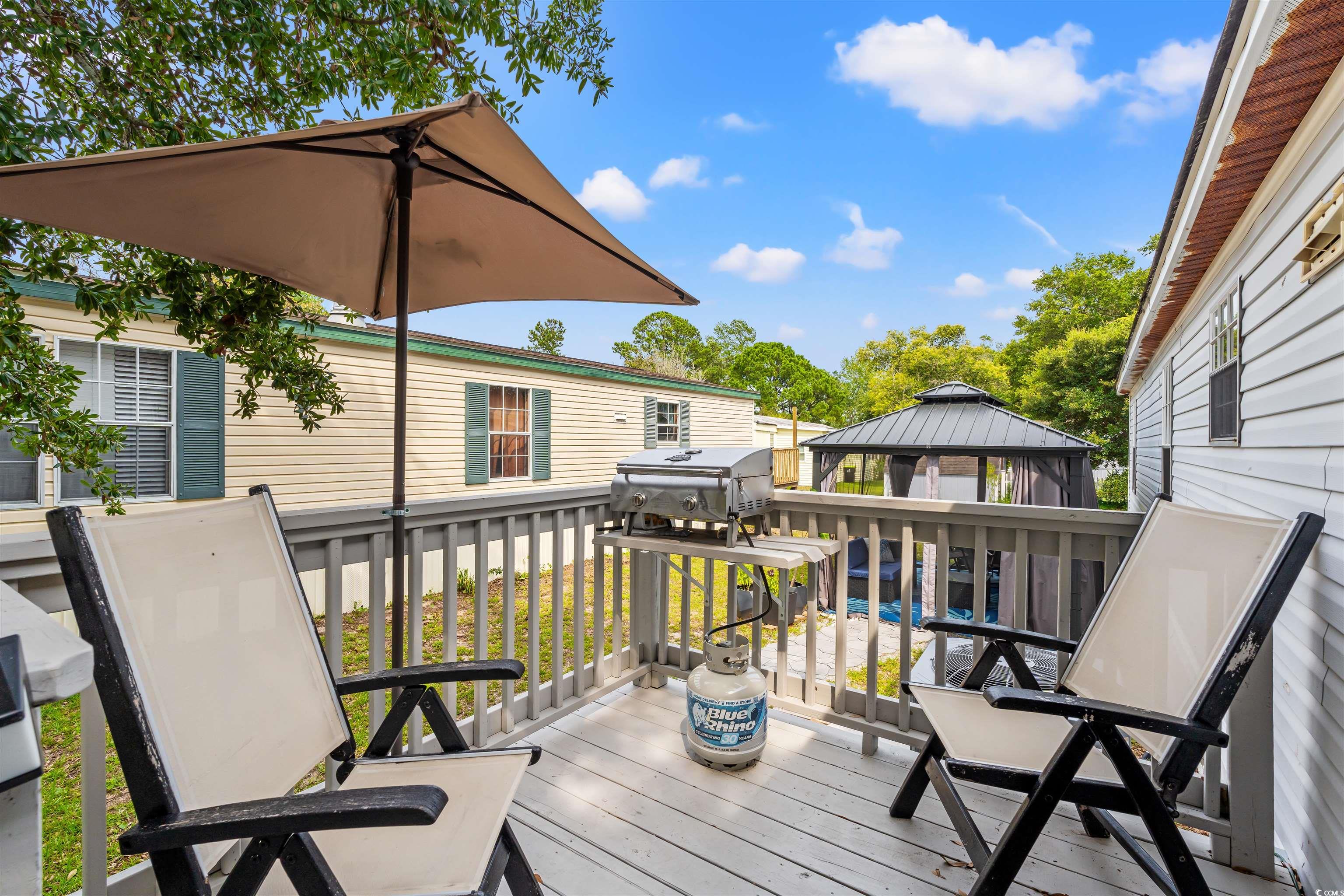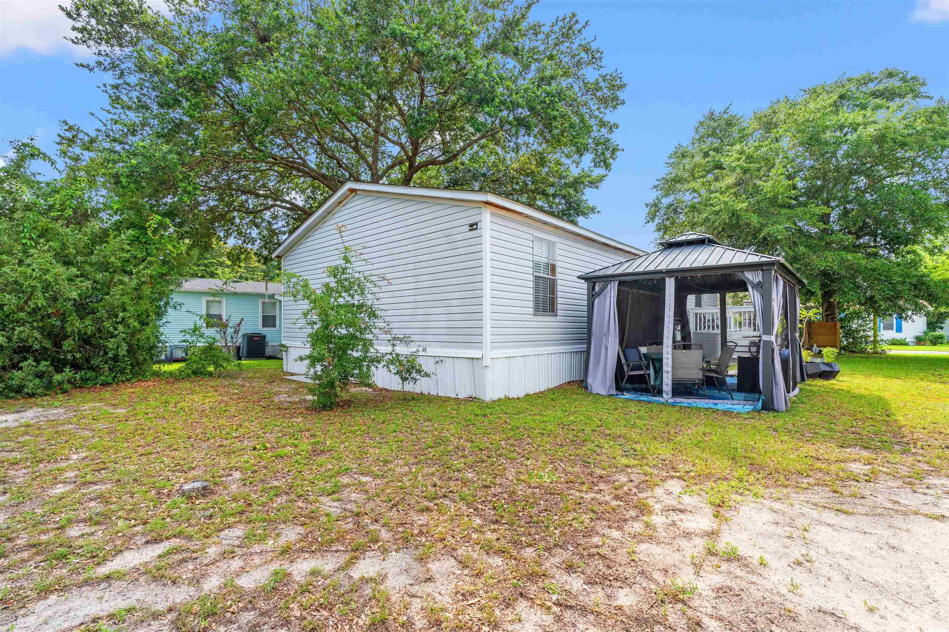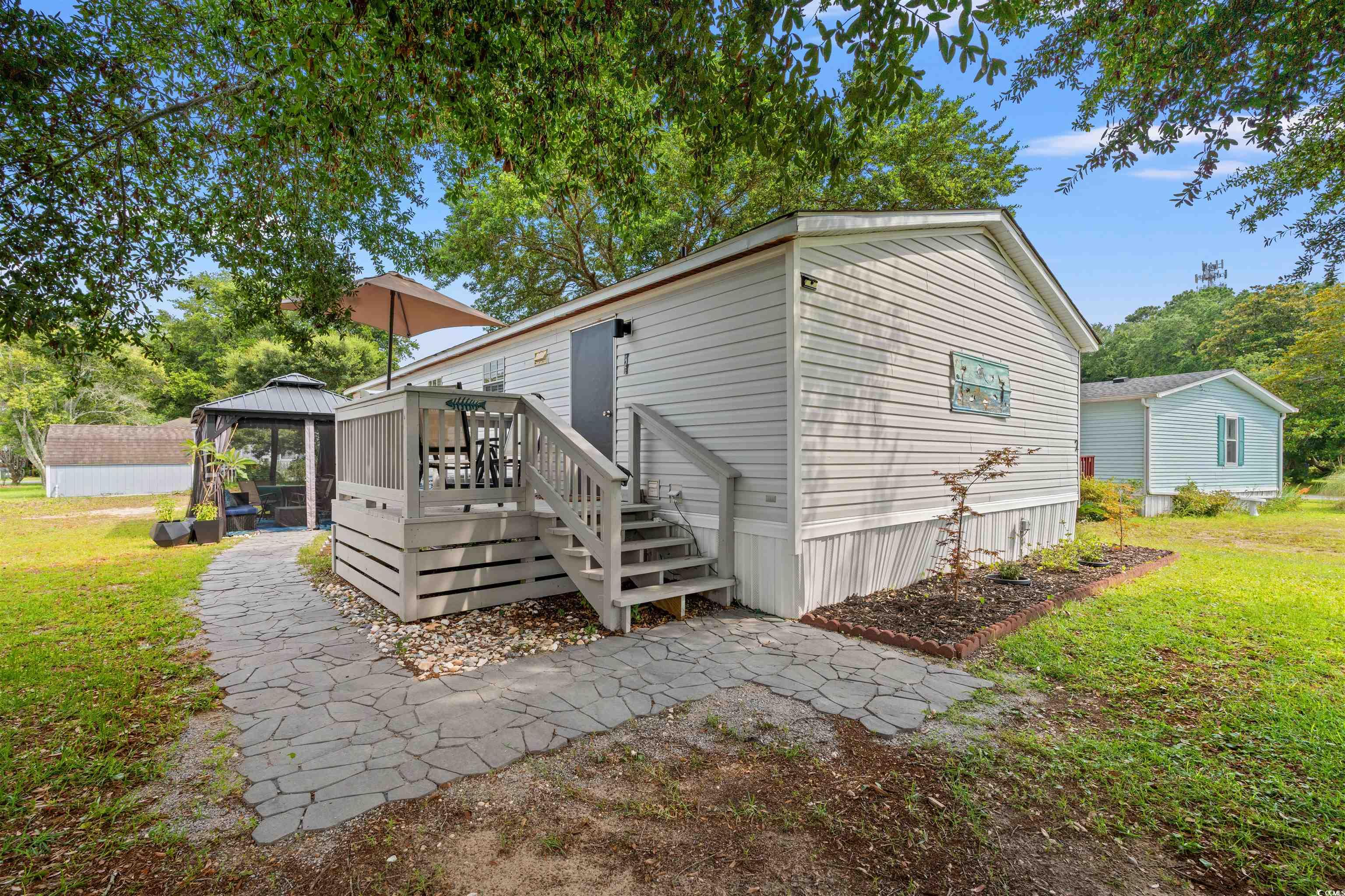 Welcome to 2 Musket Street this is a charming coastal, well-maintained home in Oceanside Landing. This double-wide manufactured home is turnkey and furnished and offers 3 bedrooms, 2 bathrooms, a spacious living room, formal dining area, and a large kitchen with ample cabinet and counter space. Enjoy the coastal lifestyle from your back deck on an oversized lot. Recent updates within the last 2 years include: new front and side decks, a 10' x 14' steel-roof gazebo with screen panels and outdoor seating, new slate walkway, updated LED lighting and ceiling fans, new carpet and faux wood blinds, a kitchen remodel with GE appliances, updated bathrooms, and a new HVAC system (May 2022). The laundry area features a new Whirlpool washer/dryer and added pantry space. A new large-capacity water heater has also been installed. Located minutes from the Murrells Inlet MarshWalk, Brookgreen Gardens, and Huntington Beach State Park, Oceanside Landing offers easy access to golf, beaches, dining, and all the charm of coastal living just 10 miles south of Myrtle Beach and 7 miles north of Pawleys Island.