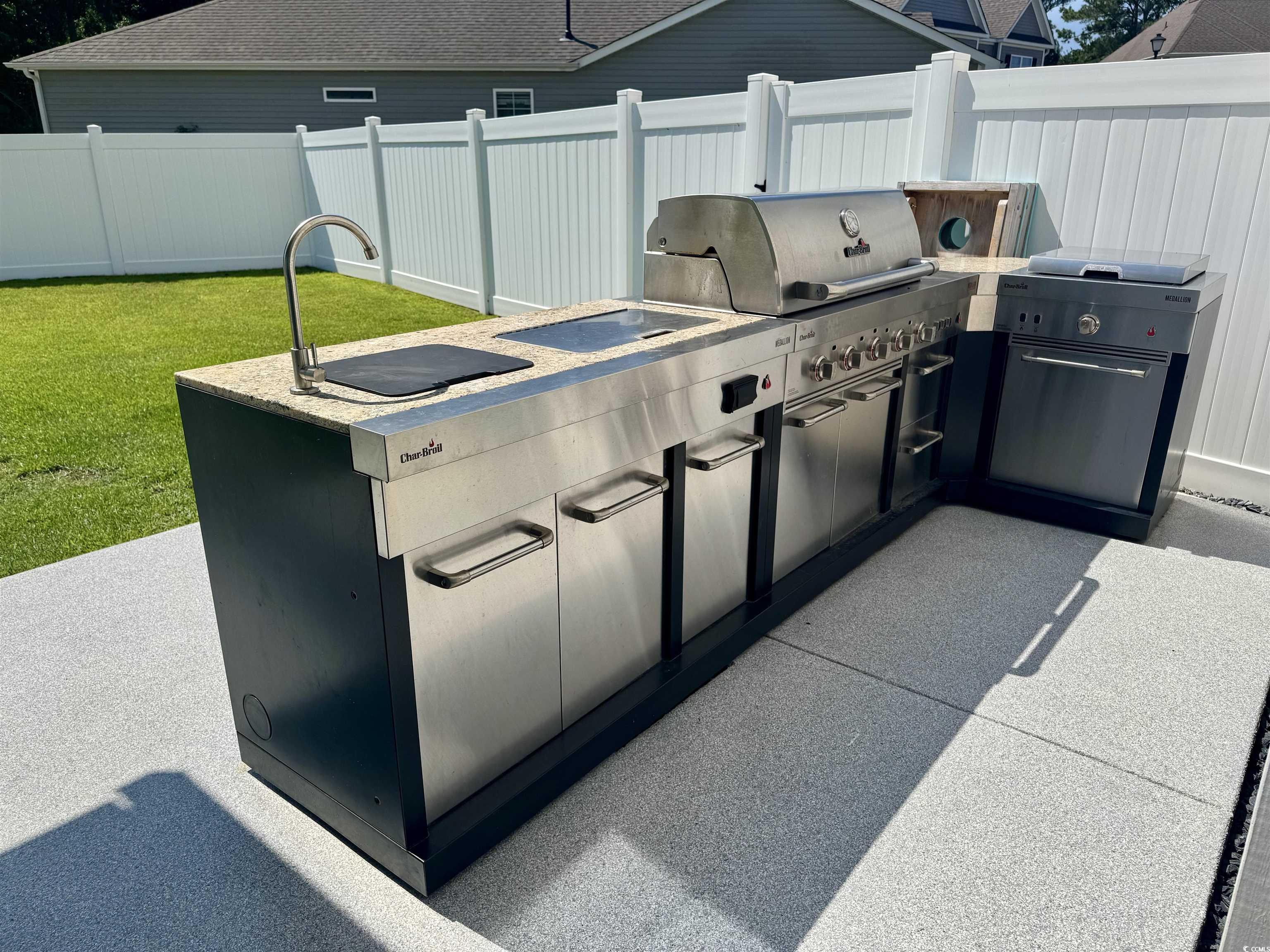 Exterior Features: Fence, SprinklerIrrigation, OutdoorKitchen, Porch, Patio