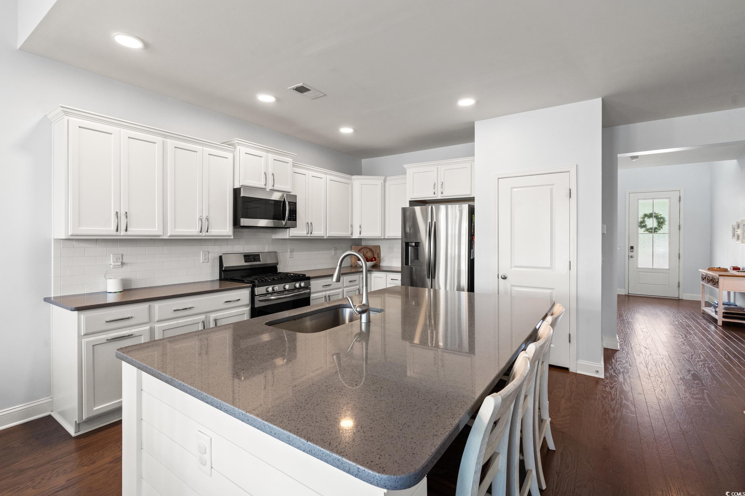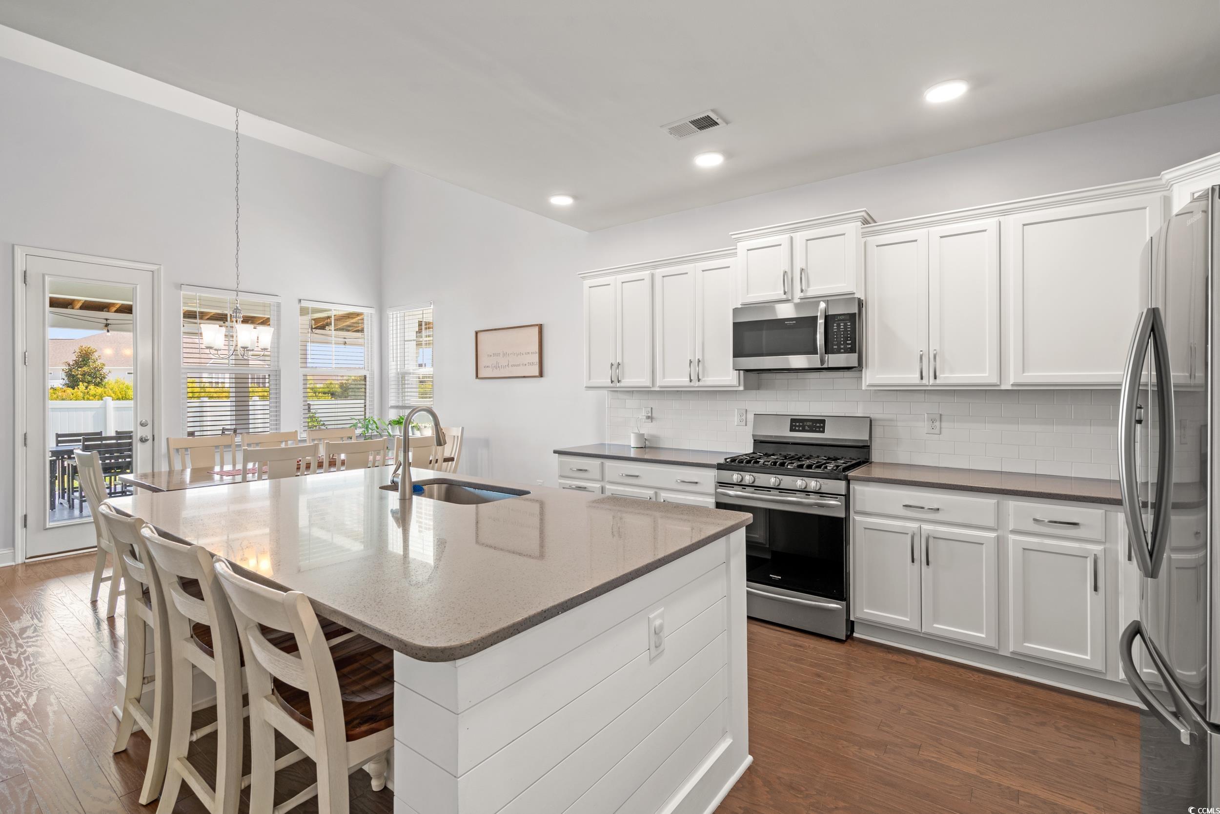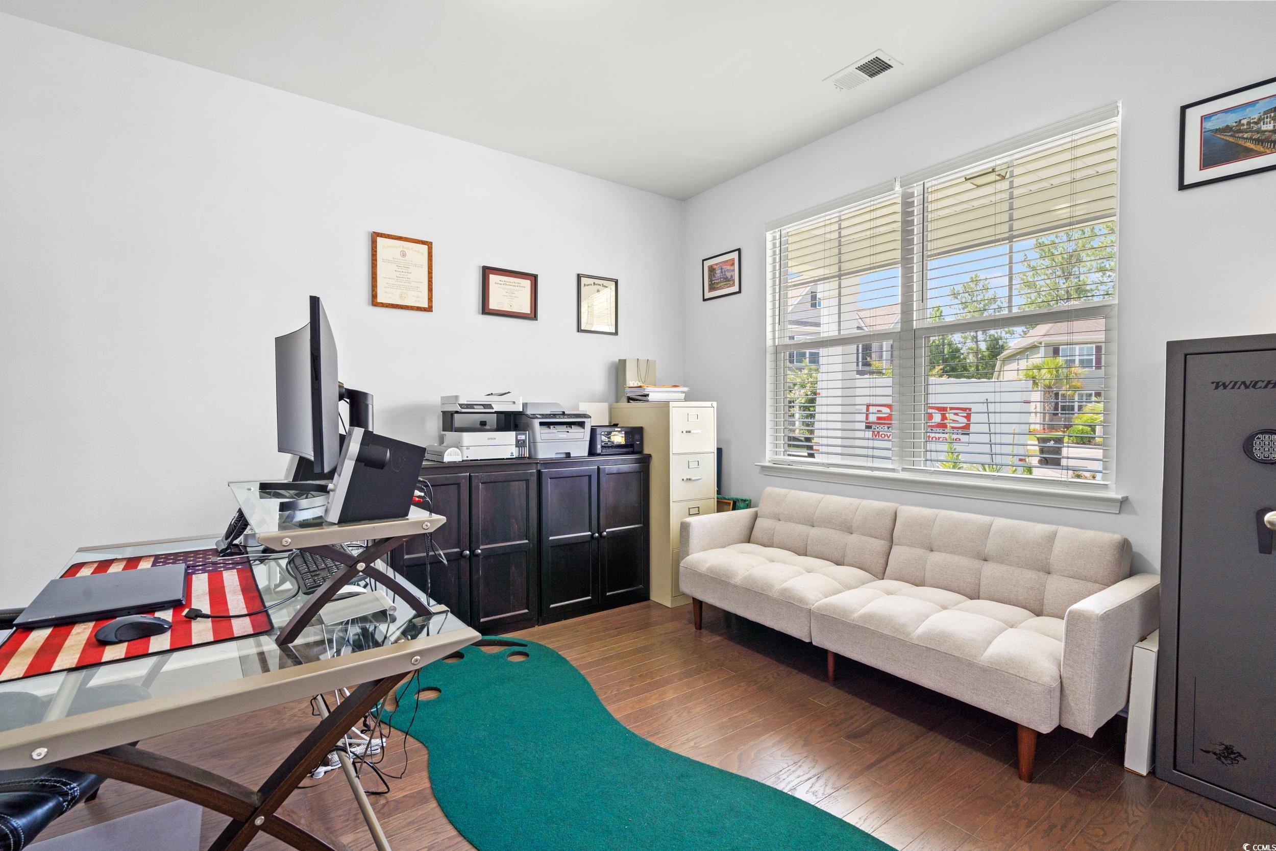 This beautifully upgraded 4 bedroom, 3.5 bath home sits on over a quarter acre and offers the perfect blend of comfort, functionality, and style, all less than 10 minutes from the beach. Located in the sought-after community of Hidden Brooke, you'll enjoy fantastic amenities including a large lake perfect for kayaking or paddle boarding, as well as a spacious community pool with a workout facility. Step inside to discover a bright, open floor plan with wood floors throughout the main level and a dedicated home office framed by elegant glass French doors. The gourmet kitchen is a chefs dream, featuring stainless steel appliances, a natural gas range, Quartz countertops, and a spacious layout that flows seamlessly into the living and dining areas. The main-level master suite is a true retreat, boasting a fully custom solid wood closet system and a spa-inspired en suite bathroom with a luxurious 8-foot tiled walk-in shower. Upstairs, a second master suite with a private bath provides the perfect space for adult children, extended family, or guestsideal as a mother-in-law suiteas well as a large loft that can easily serve as a second living area, playroom, or media space. Step outside to your private backyard oasis, where a huge covered porch creates the ultimate space for outdoor living and entertaining. Enjoy meals and lounging under the covered area with a wall-mounted TV, and gather around the stunning 5-foot-long natural gas fire table for cozy evenings. The custom outdoor kitchen features a five-burner natural gas grill, dedicated griddle, sink, and built-in cooler, ideal for hosting family and friends. The fully fenced yard also includes a storage shed and an irrigation system for easy upkeep. Additional highlights include a two-car garage and a custom solid wood laundry organization system in the laundry room. Dont miss your chance to own this stunning home in a highly desirable location near shopping, dining, and the beautiful South Carolina coast. Schedule your private showing today!***Seller is a licensed SC Real Estate Agent***