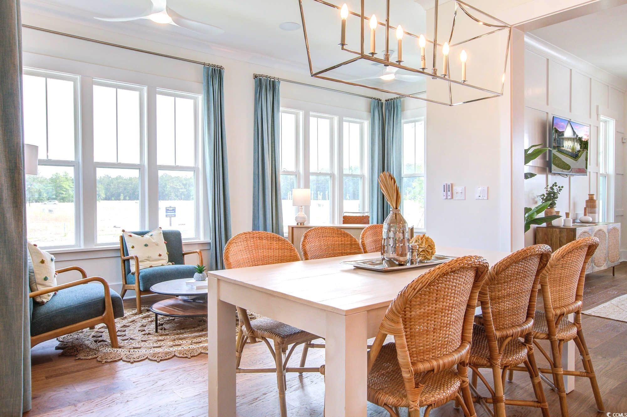 Builder is a Popular Regional Builder in North Carolina/South Carolina markets for over 30 years building Low Country/Coastal Style New Homes. Always paying attention to architectural details. Quality and Customer service is tops with this builder! COASTAL CHARM WITH ELEGANT FINISHES!! This coastal-style home features welcoming double front doors, and a wrap-around front porch for relaxing. Inside, you'll find an open-concept layout ideal for entertaining. Family Room, Kitchen, and Sunroom are enhanced by 10 ft. ceilings, abundant natural light from expansive windows, and elegant 5"" Cove Crown Molding, Trimmed Windows and Doors. The Gourmet Kitchen is a Chef's dream, boasting of a Natural Gas Cooktop with hood vent, a built-in wall oven and microwave, a farmhouse-style Kohler white sink beneath an exterior window. Timberlake Linen Cabinetry, stylish backsplash, Pendant lighting above Island, and stunning quartz countertops. Engineered Mohawk hardwood flooring flows throughout the mail level and continues into First Floor Primary Bedroom, hardwood on stairs and second floor loft area. A large built-in drop zone in the hallway adds convenience and organization. The first-floor primary suite offers quartz countertops, and a serene retreat, complete with a spa-like bath featuring a freestanding soaking tub and a separate tiled shower. Second Floor offers a loft, and two spacious guest bedrooms with full bath, This home blends luxurious finishes with thoughtful design in a layout that's perfect for modern living and entertaining! Lawn sprinkler and security systems included. Hardi- board exteriors, raised foundations and attractive landscaping. Across the street from this home are preserved woods and in rear behind the homesite is a common area...so no home in front of it nor directly behind it. Some homeowners with ARB approval have installed their dream plunge pool and outdoor patio living space! IT IS A LIFESTYLE IN SAYEBROOK!! .Life is good at Sayebrook. Beautiful tree-lined streets with sidewalks, parks, walking trails, lakes, community meeting house, pool, covered pavilion, playground, basketball court,4 pickleball courts, fire pit, Dog Park. Coastal, small-town charm within walking/golf cart distance to Sayebrook Town Center. Homeowners can actually golf cart over to Market Common District from SayeBrook !! A natural gas community. Come tour our staged model home and available homes for quick move-in! See onsite agent for any available builder promotions. SHORT DRIVE TO MALLS, AIRPORT, BEACHES, MEDICAL, AND MORE!! Estimated Completion of home is Spring 2025. All measurements and sq. ft. are estimated only and not guaranteed by agent nor builder. Pictures shown are for illustrative purposes only and are interior pictures of our Barrington Model Home plan.