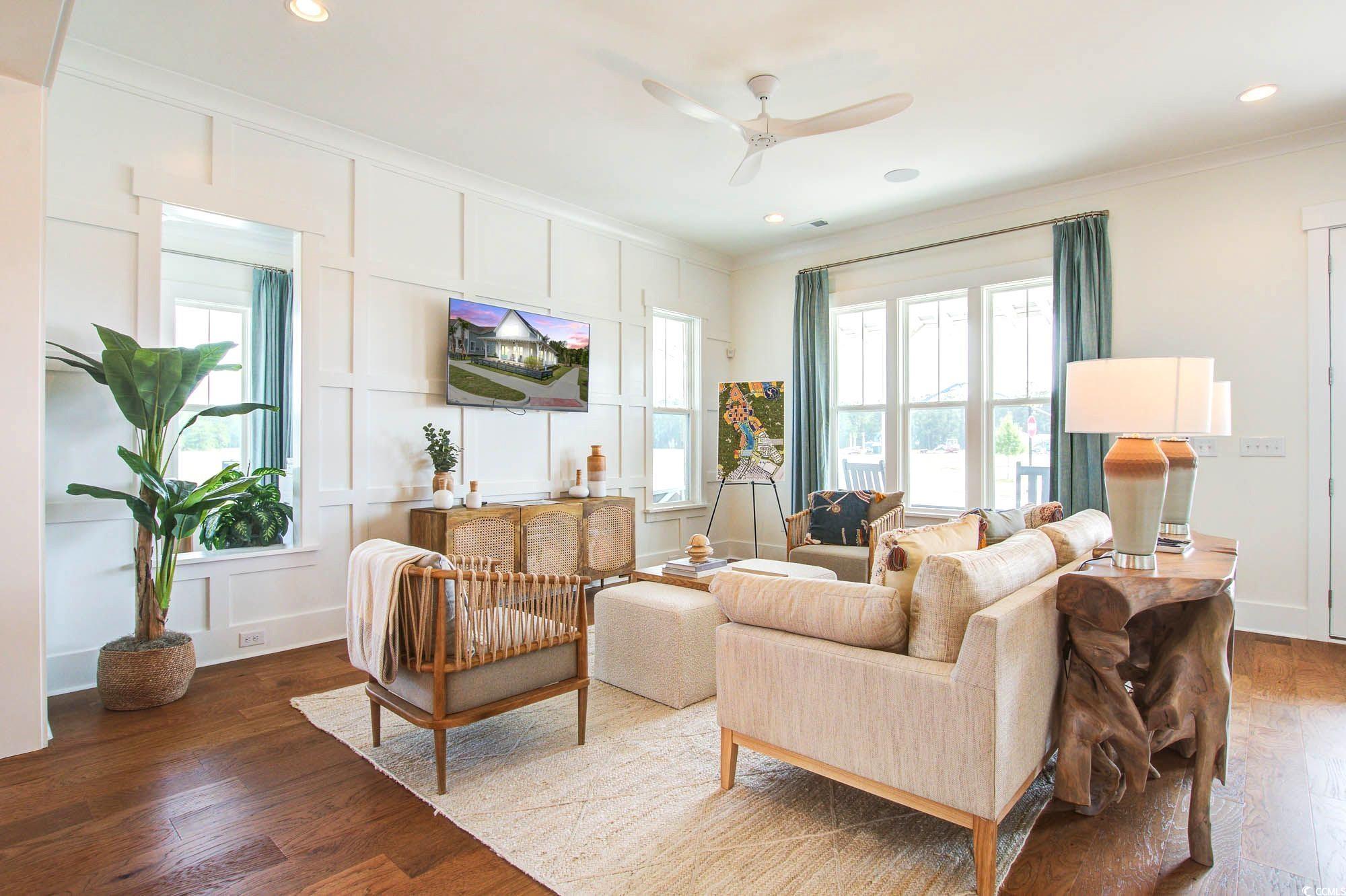 Builder is a Popular Regional Builder in North Carolina/South Carolina markets for over 30 years building Low Country/Coastal Style New Homes. Always paying attention to architectural details. Quality and Customer service is tops with this builder! COASTAL CHARM WITH ELEGANT FINISHES!! This coastal-style home features welcoming double front doors, and a wrap-around front porch for relaxing. Inside, you'll find an open-concept layout ideal for entertaining. Family Room, Kitchen, and Sunroom are enhanced by 10 ft. ceilings, abundant natural light from expansive windows, and elegant 5"" Cove Crown Molding, Trimmed Windows and Doors. The Gourmet Kitchen is a Chef's dream, boasting of a Natural Gas Cooktop with hood vent, a built-in wall oven and microwave, a farmhouse-style Kohler white sink beneath an exterior window. Timberlake Linen Cabinetry, stylish backsplash, Pendant lighting above Island, and stunning quartz countertops. Engineered Mohawk hardwood flooring flows throughout the mail level and continues into First Floor Primary Bedroom, hardwood on stairs and second floor loft area. A large built-in drop zone in the hallway adds convenience and organization. The first-floor primary suite offers quartz countertops, and a serene retreat, complete with a spa-like bath featuring a freestanding soaking tub and a separate tiled shower. Second Floor offers a loft, and two spacious guest bedrooms with full bath, This home blends luxurious finishes with thoughtful design in a layout that's perfect for modern living and entertaining! Lawn sprinkler and security systems included. Hardi- board exteriors, raised foundations and attractive landscaping. Across the street from this home are preserved woods and in rear behind the homesite is a common area...so no home in front of it nor directly behind it. Some homeowners with ARB approval have installed their dream plunge pool and outdoor patio living space! IT IS A LIFESTYLE IN SAYEBROOK!! .Life is good at Sayebrook. Beautiful tree-lined streets with sidewalks, parks, walking trails, lakes, community meeting house, pool, covered pavilion, playground, basketball court,4 pickleball courts, fire pit, Dog Park. Coastal, small-town charm within walking/golf cart distance to Sayebrook Town Center. Homeowners can actually golf cart over to Market Common District from SayeBrook !! A natural gas community. Come tour our staged model home and available homes for quick move-in! See onsite agent for any available builder promotions. SHORT DRIVE TO MALLS, AIRPORT, BEACHES, MEDICAL, AND MORE!! This home can close January or February 2026. See agents for any builder savings. All measurements and sq. ft. are estimated only and not guaranteed by agent nor builder. Pictures shown are for illustrative purposes only and are interior pictures of our Barrington Model Home plan.