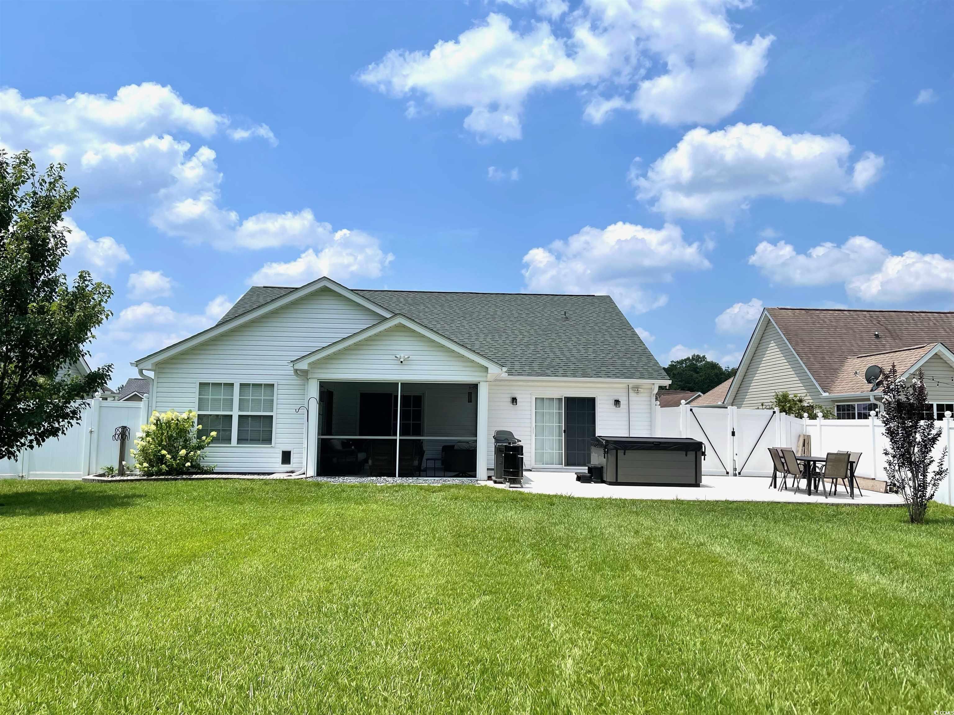Come take a look at this beautifully updated 3-bed, 2-bath home in Highland Woods, featuring an open floor plan, abundant natural light, and a fenced-in backyard. Practically everything is new including whole-house water filtration, LVP flooring throughout, fresh paint, decorative switch plates, window blinds, lighting, and ceiling fans. The kitchen shines with granite countertops, a tile backsplash, new cabinets, appliances, sink, faucet, and disposal. The primary bath offers a new tiled shower, granite vanity, and lighted mirror, while the second bath includes a new tub, granite-topped vanity, and updated fixtures. Additional highlights include a new electric fireplace, laundry room with granite counter, new washer/dryer and cabinets, garage sink, screened Carolina room, 6-person hot tub, and all-new exterior lighting. The HVAC was replaced in 2024, and the roof in 2022. Ideally located with easy access to all Myrtle Beach has to offer, this truly turnkey home has it all no detail has been overlooked!