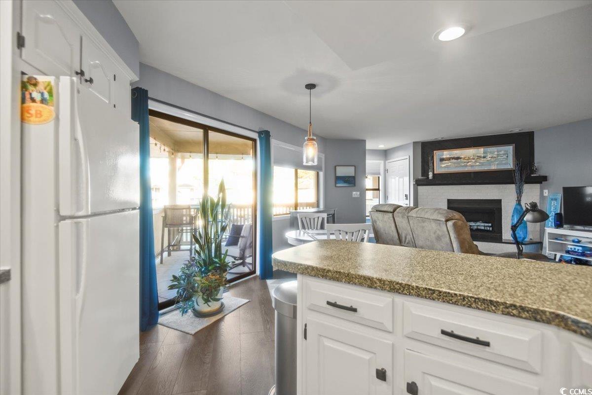 Bright, stylish, and just minutes from the beach, this spacious corner-unit condo in Cypress Bay features the largest 1-bedroom floor plan in the community. Beautifully updated and move-in ready, this 1-bedroom, 1-bathroom gem offers an open-concept layout with modern LVP flooring, a custom tiled shower, updated vanity, and a cozy fireplace that adds the perfect touch of charm. Enjoy outdoor living on two private balconies, one off the living area and one off the bedroom, ideal for soaking up the sun or relaxing after a day on the coast. Located in the heart of Little River, Cypress Bay offers residents access to a sparkling community pool and an unbeatable location just a short drive to North Myrtle Beach, Calabash, and Sunset Beach. Whether you're searching for a full-time home, weekend getaway, or smart investment property, this one checks all the boxes. Dont miss your chance to own the largest 1-bedroom layout in Cypress Bay, schedule your showing today!