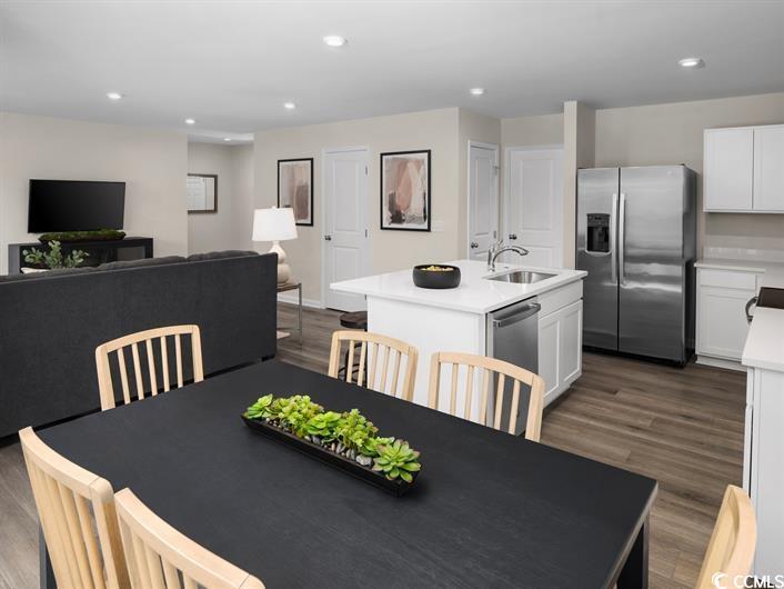 Nestled in a park-like setting with sidewalk-lined streets, Meadows Edge Single Family Homes offers new single family homes with community pool zoned to the Carolina Forest School District and just minutes to Coastal Carolina University. Meadows Edge offers easy access to everything you need. From an assortment of shopping and dining options along Hwy 501 & 544 to medical facilities such as Conway Medical Center, all the necessities are within reach. Dreaming of spending lazy days on the beach? You're in luck! Meadows Edge Single Family Homes is a mere 15-minute drive from the Grand Strand beaches, allowing you to soak up the sun any day of the week. You will also find quaint shops and delicious eateries, like Hop N' Which, just 10 minutes from home in downtown Conway featuring the Conway Riverwalk. Meadows Edge is also proudly situated near Coastal Carolina University, the home of Teal Nation. Join in on the excitement and cheer on the Chants while being just a stone's throw away from the action. Not only will you love the location of Meadows Edge Single Family Homes, but you will love our floorplan selection, too. The Iris single-family home has the space you need and the style you want. Its open floorplan invites you into the foyer. The large great room is ideal for gatherings and flows seamlessly into a gourmet kitchen and dining area with a breakfast bar. All stainless steel appliances are included. Upstairs, three bedrooms feature spacious closets and quick access to a full bath. The luxurious owner's suite features a double vanity ensuite bath and large walk-in closet. Conveniently located off of 544 with easy access to Tanger Outlets and restaurants along 501 and less than 4 minutes to Coastal Carolina University. Oversized rear patio with with a wooded treeline setting makes outdoor living easy. Rear privacy fences allowed by HOA. Community features include a community pool, and clubhouse. All Information is deemed accurate but not guaranteed Square footage is approximate and not guaranteed. Buyer responsible for verification.. All information is deemed accurate but not guaranteed.
