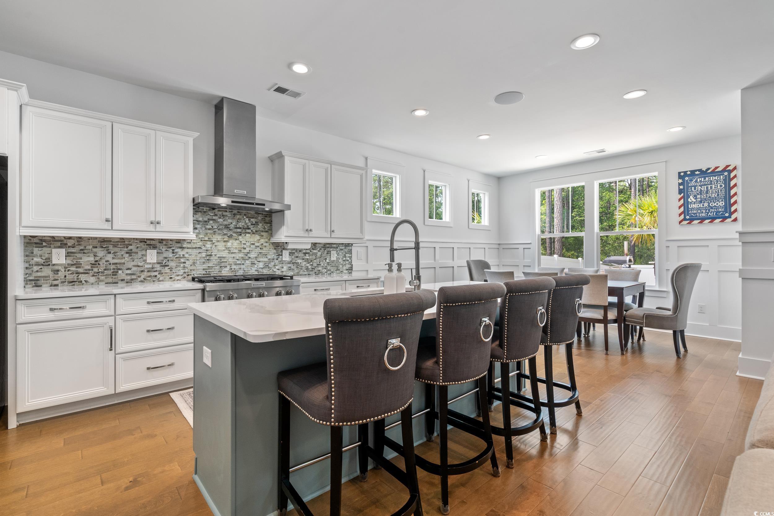 Discover luxury living in this exceptional Toll Brothers home featuring the Lancaster floor plan with 5 bedrooms, 4 bathrooms, sunroom, loft, and 3-car garage. This meticulously crafted residence offers an impressive blend of elegant design, premium finishes, and cutting-edge technology throughout. The gourmet kitchen showcases level 4 premium cabinetry with soft-close drawers, stunning quartz countertops, and a premium KitchenAid appliance package, complemented by a custom-designed pantry for optimal storage. The sophisticated living spaces include a first-floor guest suite with elegantly tiled shower, natural gas fireplace with stylish upgraded mantle, elegant Grant Craftsman trim throughout, wainscoting detailing for added character, beautiful hardwood floors as main flooring, and comfort-height vanities and toilets. The master suite features a custom closet with spacious design for ultimate comfort and organization. This home is a technology enthusiast's dream, featuring a complete smart home system with WiFi-enabled smart switches compatible with Alexa, phone, and tablet voice control, in-ceiling surround sound speakers, Sonos surround sound system, hardwired ethernet throughout the entire home for reliable internet, smart doorbell system, app and remote-controlled features, and integrated surveillance system covering the entire property. Energy efficiency and comfort are prioritized with energy-saving 3-inch closed-cell spray foam insulation in the attic, energy-efficient systems throughout, mini-split HVAC unit in the garage, smart home irrigation system with weather intelligence for water efficiency, and whole house surge protector for electrical safety. The outdoor entertainment paradise includes a fully equipped outdoor kitchen with professional-grade griddle and outdoor refrigerator, custom outdoor bar island perfect for entertaining, and ideal setup for year-round outdoor living. Additional outdoor features include a detached outdoor shed with electrical and WiFi connectivity, 6-inch gutters with low-maintenance screen toppers, and underground gutter pop-up drains for superior water management. Located in the beautiful and desirable Clearpond community, this home offers convenient access to top-rated schools, close proximity to Myrtle Beach National Golf Course, easy access to shopping and dining, short drive to pristine ocean beaches, and is near medical centers, colleges, and hospitals providing the perfect blend of tranquility and convenience. This exceptional home represents the pinnacle of modern luxury living, combining Toll Brothers' renowned craftsmanship with premium upgrades and smart home technology. Every detail has been carefully considered to create a residence that's as functional as it is beautiful, ready for immediate occupancy and perfect for discerning buyers seeking the ultimate in comfort, style, and convenience.