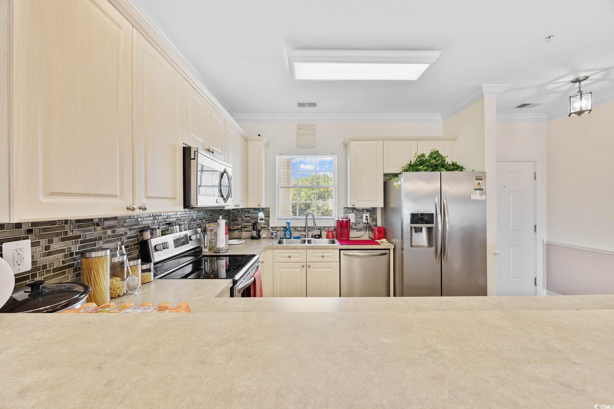 The upgrades and great view, set this one apart! Located in the desirable Magnolia Pointe community, this 2-bedroom, 2-bath condo offers a comfortable and convenient coastal lifestyle just minutes from the beach. Inside, youll find an open-concept layout with a bright living area, a modern kitchen featuring stainless steel appliances and a breakfast bar, along with a spacious primary suite complete with a walk-in closet and private bath. The second bedroom and full guest bath provide flexibility for visitors or a home office. Step outside to a private balcony with a peaceful view of the pondperfect for morning coffee or evening relaxation. Additional features include an in-unit laundry room. Magnolia Pointe offers access to community pools, walking paths, and is ideally situated near top golf courses, shopping, dining, and Myrtle Beach attractionsmaking it a great choice for a primary residence, vacation home, or investment property.