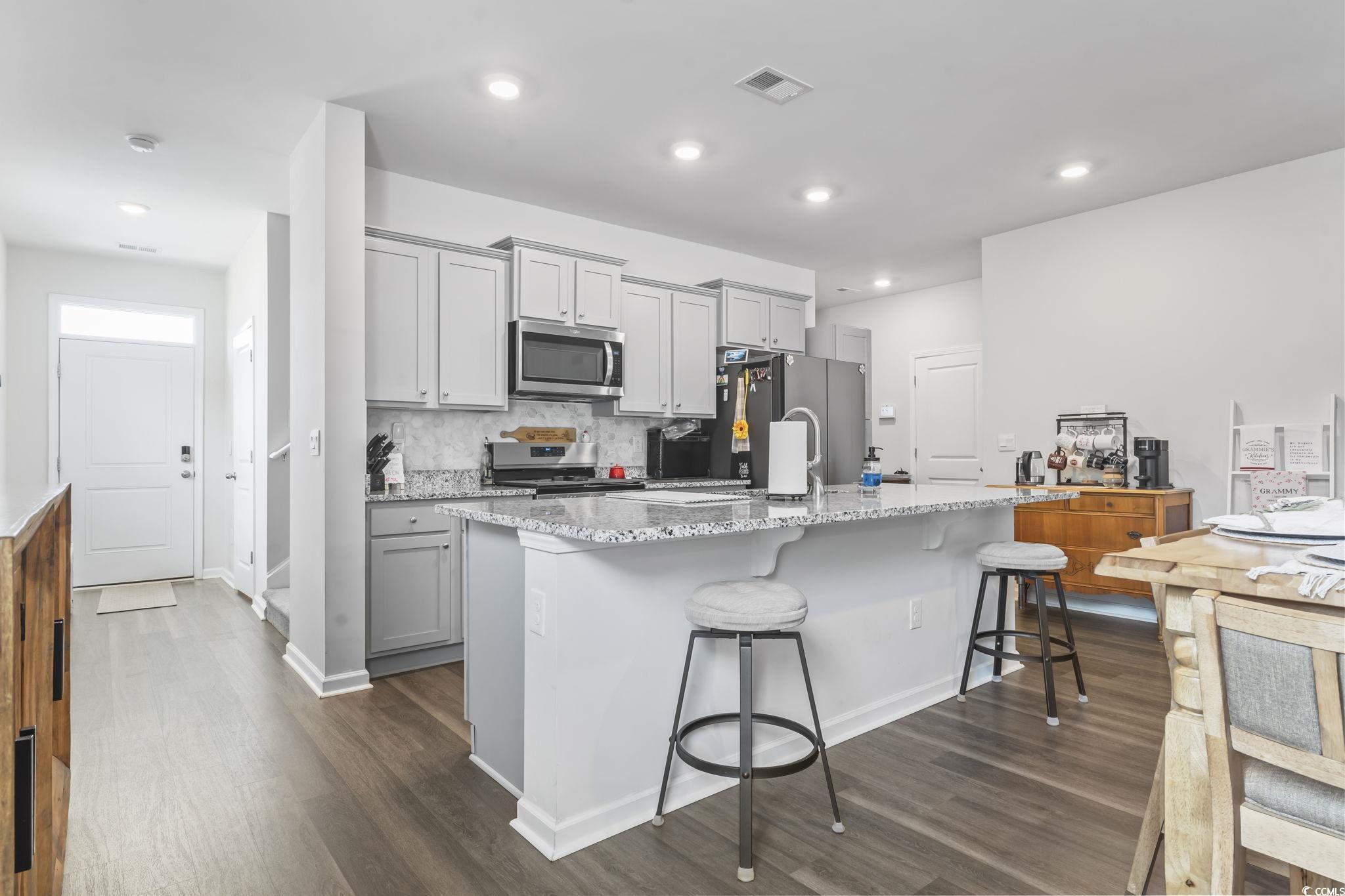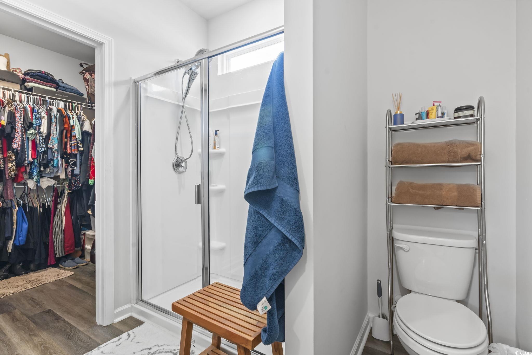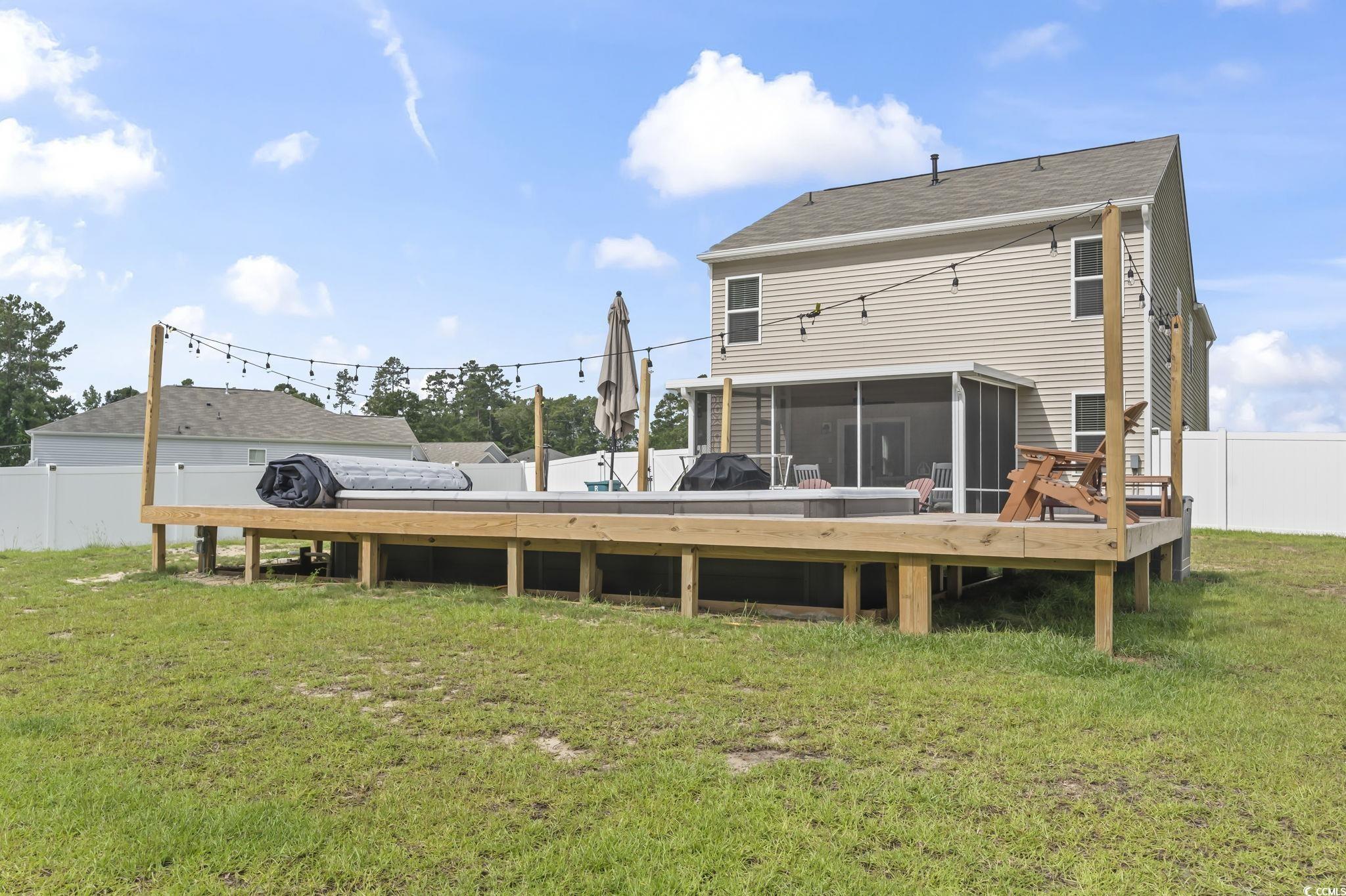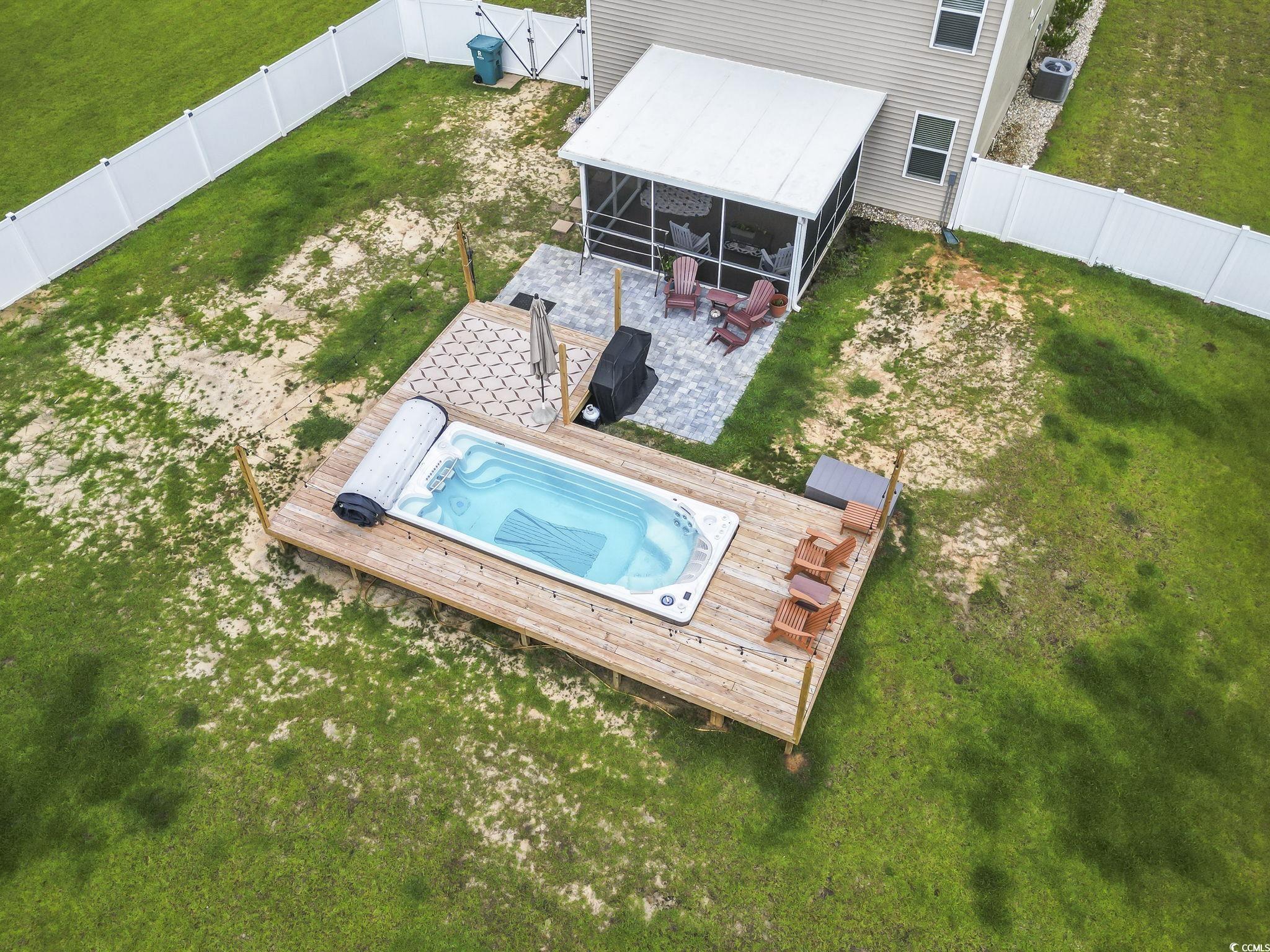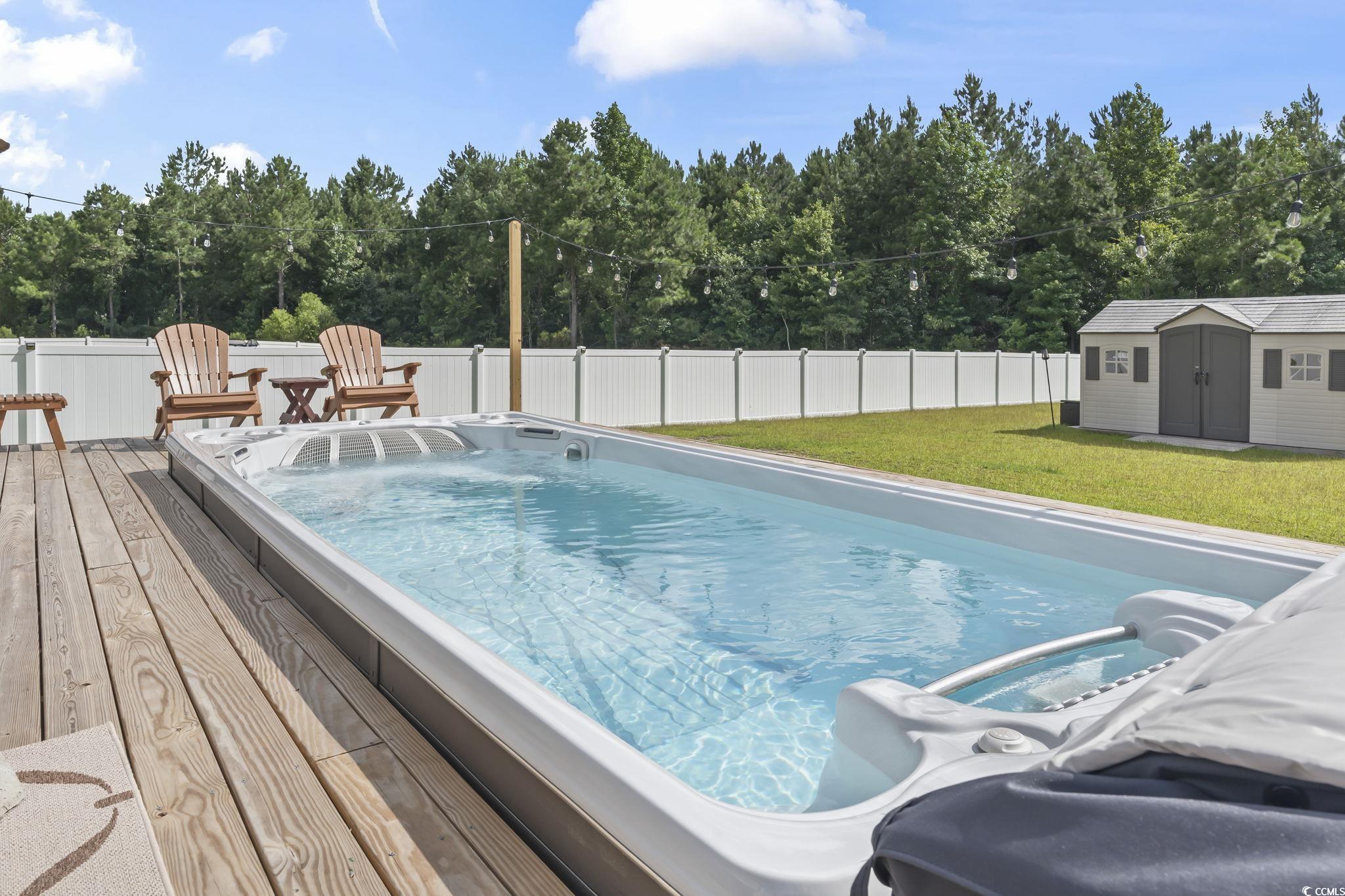 Olde Mill community offers a peaceful living experience close to Myrtle Beach. This home is minutes from the beach, schools, shopping, dining, and healthcare facilities and so much more. This well-maintained, turn-key home features several open-concept common areas. With bedrooms on each floor, including a first-floor master suite and a second-floor flex room with pond views, this home provides a flexible layout. The open kitchen, dining, and living room areas offer ample space and views of the fenced backyard. The property provides almost double the acreage of most in the community and adjoins a non-buildable HOA common area. Enjoy the screened-in back patio overlooking a Hydropool 19EX self-cleaning swim spa, perfect for family use, exercise, or relaxation. The large yard space is ideal for kids and pets, with a shed for storage or a workshop. The swim spa, shed, and fencing are all new and permitted. Schedule a tour and make an offer, don't delay.