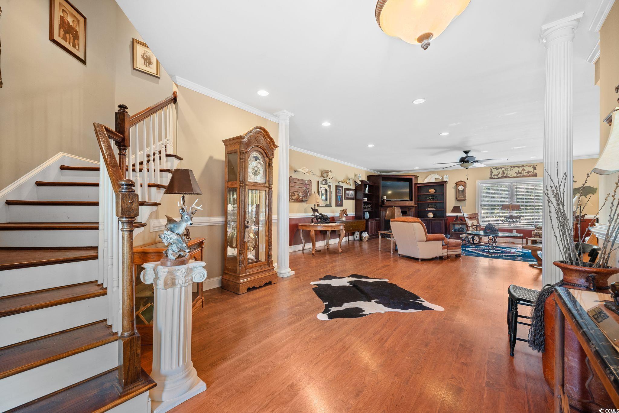 Country living only 30 minutes to the beach! Say hello to your new home-sweet-home at 2420 Mt Zion Road, a sprawling estate on nearly 8 ACRES of property! A long driveway and mature trees welcome you home as you approach the 3300 square feet brick ranch featuring 4 bedrooms, 2.5 bathrooms, and all the space you could ever need. Every room in the home is large, and the living spaces are massive. The kitchen is the heart of this home and could definitely win an award for the most cabinet space, and the most countertop space EVER. The living spaces of this home truly provide the ideal setting for hosting gatherings with your family and friends. Let's talk bedrooms - downstairs is home to the owner's suite (private ensuite bathroom and closets galore) and a secondary bedroom, as well as a hall bathroom, half bath, and the laundry room. Upstairs features 2 more bedrooms, and an unfinished storage room that could become a 5th bedroom (heated and cooled already). Venture outdoors to the expansive 7.52 acreage that features enormous front and back yards, a horse barn complete with 4 horse stalls, storage, and a horse shower, a two-acre stocked pond for fishing, mature trees providing ample shade throughout, two car attached garage, and relaxing covered porches to sip on your sweet tea on a warm South Carolina afternoon. Country living with a coastal flare. With Myrtle Beach being only 30 minutes away, location is key keeping you conveniently close to several top beaches, local attractions, and all of the dining/shopping you could possibly need. All while being tucked away on your land to enjoy the tranquility, serenity, and the country living that this home can provide. Endless opportunities for recreation and enjoyment for the whole family, at home or nearby! Schedule your showing today, and be sure to bring your cowboy boots and beach hat!