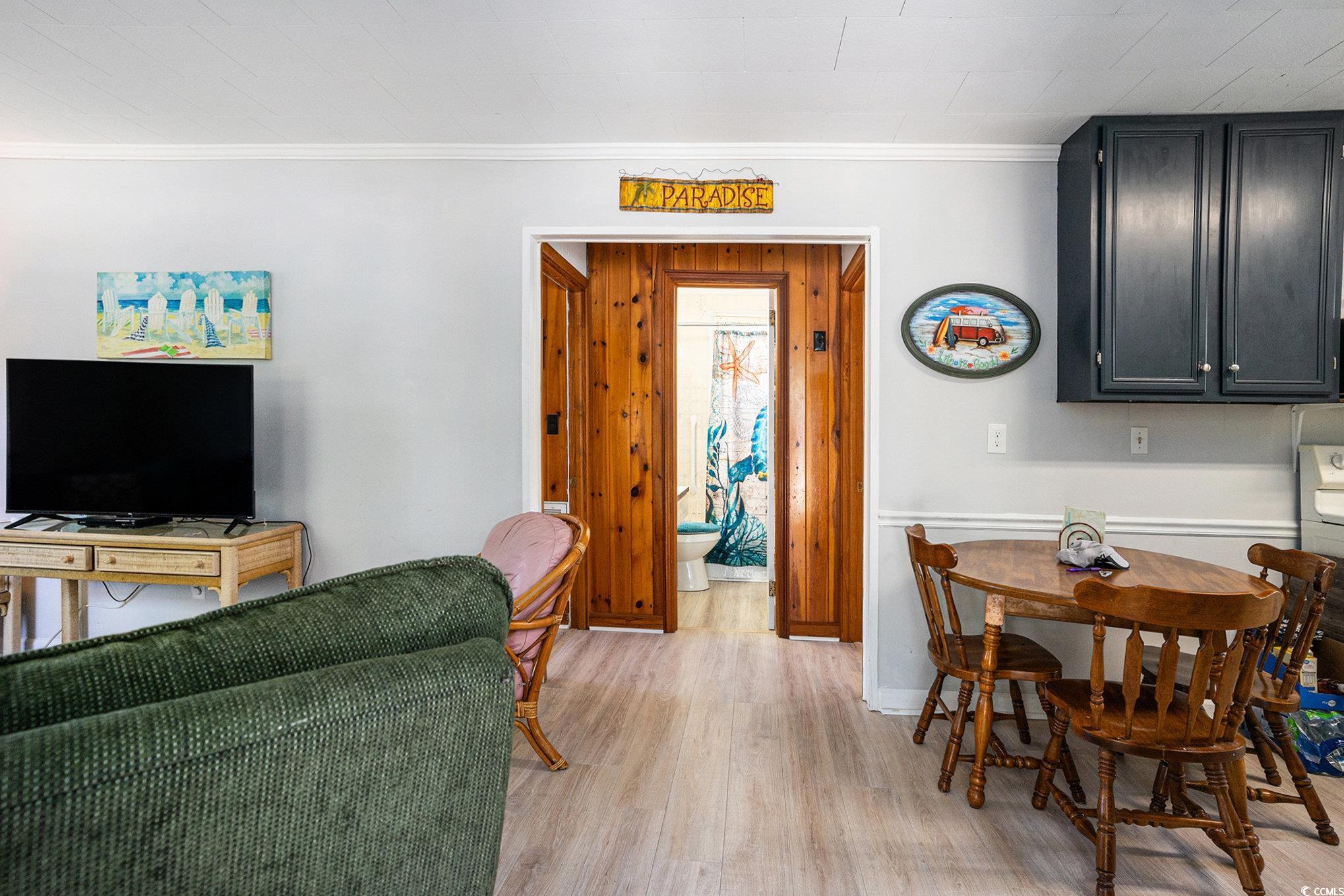 Discover the perfect blend of coastal charm and everyday convenience with this delightful 2-bedroom, 1-bath cottage, ideally located just a short walk or golf cart ride from the beach, and NO HOA! Enjoy your mornings on the sweet front porch, soaking in the coastal breeze. Inside, you'll find a welcoming open-concept kitchen with an eat-in dining area that flows into the cozy living room, creating a warm and functional space for entertaining or relaxing after a day at the beach. Whether you're seeking a primary residence, vacation escape, or income-producing investment, this home checks all the boxes. This charming cottage offers endless possibilities, schedule your showing today and make beachside living a reality! Tucked away on a peaceful street just east of Highway 17, this home sits in the highly sought-after Crescent Beach neighborhood of North Myrtle Beach. Ideally located, you're only moments from popular dining spots, shopping, and endless entertainment options. Just minutes from Barefoot Landing, world-class golf courses, and upscale retail, you'll find yourself in the heart of North Myrtle Beach's vibrant and ever-evolving luxury district.