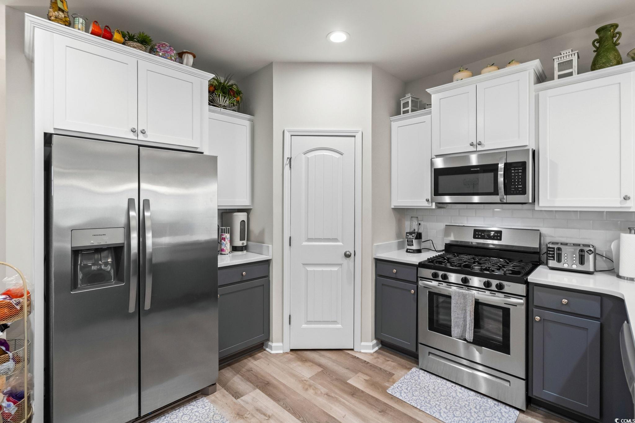 Modern Comforts Near the Atlantic Ocean Nestled just 1.9 miles from the white sandy beaches of the South Carolina coast, and the ever-changing coastline of the Atlantic Ocean, this two-year-old residence offers a unique blend of modern sophistication and coastal serenity. Designed for those who cherish the rhythm of the tides and the need for ocean breezes, the home stands as a testament to the enduring allure of coastal living. Stepping through the front door, you are welcomed by an airy foyer flooded with natural light. The open-concept design immediately reveals the homes modern sensibility. Wide-plank LVP floors stretch into the spacious living room and the entire 1st floor. The living area flows seamlessly into the dining area, which can easily fit a table for 8a natural gathering place for family dinners or lively weekend brunches. The efficient kitchen is a cooks dream. Beautiful white countertops and subway tile backsplash gleam beneath recessed lights, and the generous breakfast bar provides both workspace and casual seating. Stainless steel appliancesfrom the 5-burner gas range to the double-door refrigeratorfit harmoniously into 2 tone cabinetry, white upper cabinets and deep rich blue-gray lower cabinets featuring the quincentennial farm house sink. A walk-in pantry, ensures that ingredients and supplies are always within reach. A large dining area nestled in front of a double window, offers the perfect spot to savor a morning coffee Built with modern technology in mind, this home includes wi-fi garage door, energy-efficient windows and insulation keep the house cool in summer and cozy through mild Atlantic winters. This homes recent construction allows for the inclusion of the latest building best practices. Enjoy high-efficiency gas HVAC system, tankless water heater and gas range. The home features 3 bedrooms, each thoughtfully designed for comfort and relaxation. The primary suite is a sanctuary, complete with LVP flooring, and ensuite bath with double vanities, a walk-in shower. Two additional upstairs bedrooms offer flexibility with plush carpeting, whether for children, guests, or a dedicated home office. Every room is suffused with natural light. In addition to the master bath, the home includes a full bathroom upstairs and a half bath powder room downstairs for guests. Each is outfitted with modern fixtures and ample storage. The low maintenance backyard is an entertainers paradise. A 8x19 ft covered patio extends from the living room, plenty of room for alfresco dining and also stands ready for a hammock! The additional 16 ft. uncovered patio is perfect for grilling and enjoying the warm South Carolina sun. An attached two-car garage offers storage for beach chairs, bikes, and surfboards, ensuring youre always ready for a spontaneous outing to the ocean. Within a short drive, golf cart ride, or pleasant bike ride, youll discover a charming seaside community, fresh seafood restaurants, and amazing cafs. The local schools are highly regarded, making the area popular with families as well as retirees drawn to its easy pace and scenic beauty. Being just 6 minutes from the Atlantic Ocean, the beach is both a daily backdrop and a constant invitation. Early risers will relish morning jogs along the surf, while sunset promises a magical show of color and light. Whether youre an avid surfer, shell collector, or simply love to stroll barefoot along the shore, the Atlantic is always close enough to shape your daily life. Lovely landscaping completes the picturesque comfort and beauty of this home.