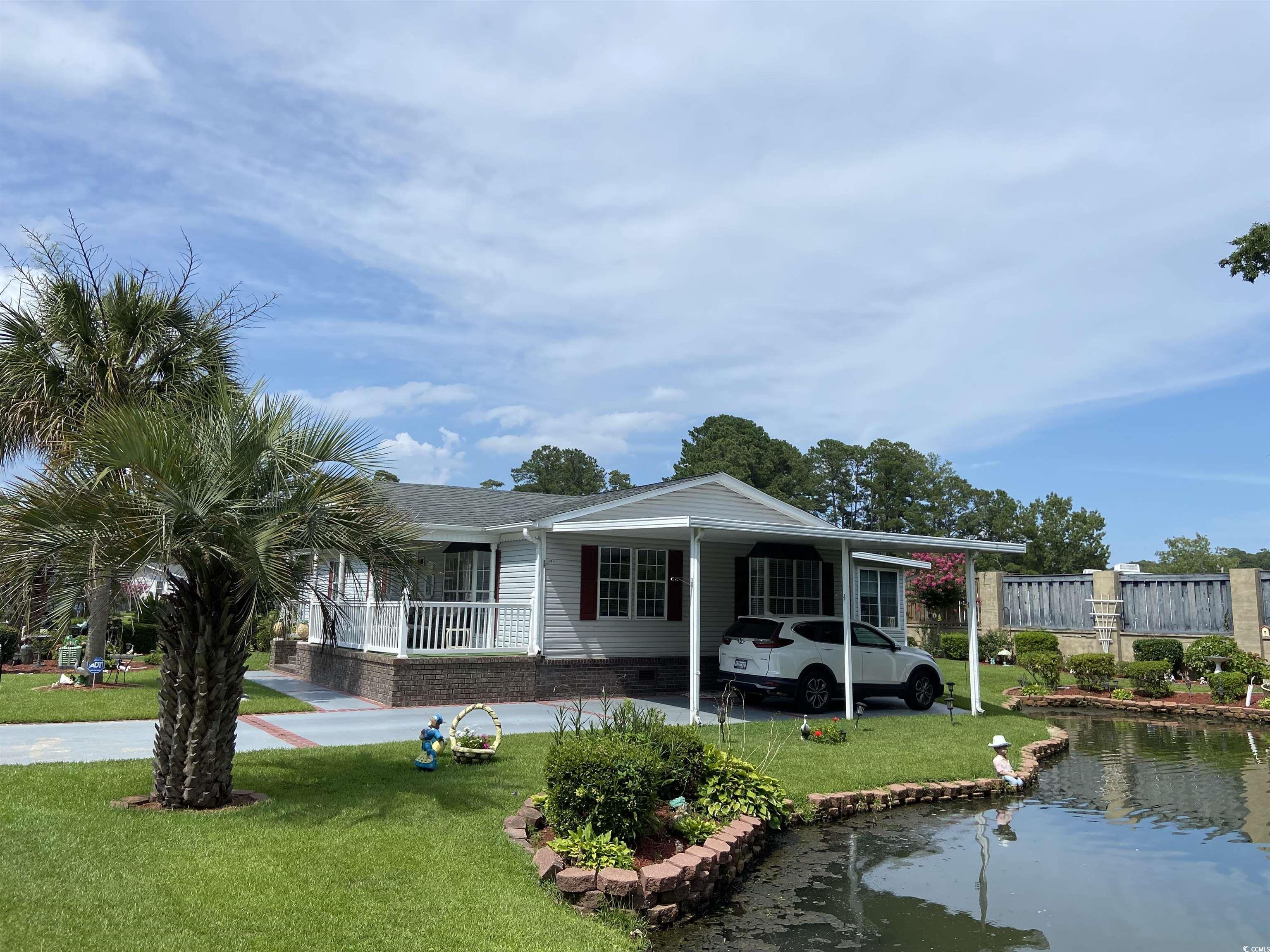 MOTIVATED SELLER...BRING AN OFFER! Impeccably kept home on a gorgeous landscaped lot with a pond! Enjoy the serenity from your front porch, back porch, back patio, or heated and cooled Carolina room. This Carolina room is massive and features two ceiling fans, pull down blinds and room for the whole family. It is sure to be your favorite room in the house! Can be used as a third bedroom. The open living room has a vaulted ceiling which adds to the spacious feel. The master ensuite bath has a separate bath and shower as well as double sinks. Roof is only two years old and many of the appliances are new. Washer and dryer convey. As an added bonus, the property also includes a 12x13 detached shed. The charm abounds in this home and this community! Beachwood is an active, 55+ gated community with a pool, hot tub, shuffle board, club house (with a kitchen), and billiard room. Beachwood residents also enjoy access to the amenities at the Lakewood Camping Resort. To top it off, this neighborhood is across the street from Myrtle Beach State Park and is a 4 minute commute to the beach. Sound dreamy? Seller is motivated so come see it today and bring your offer!