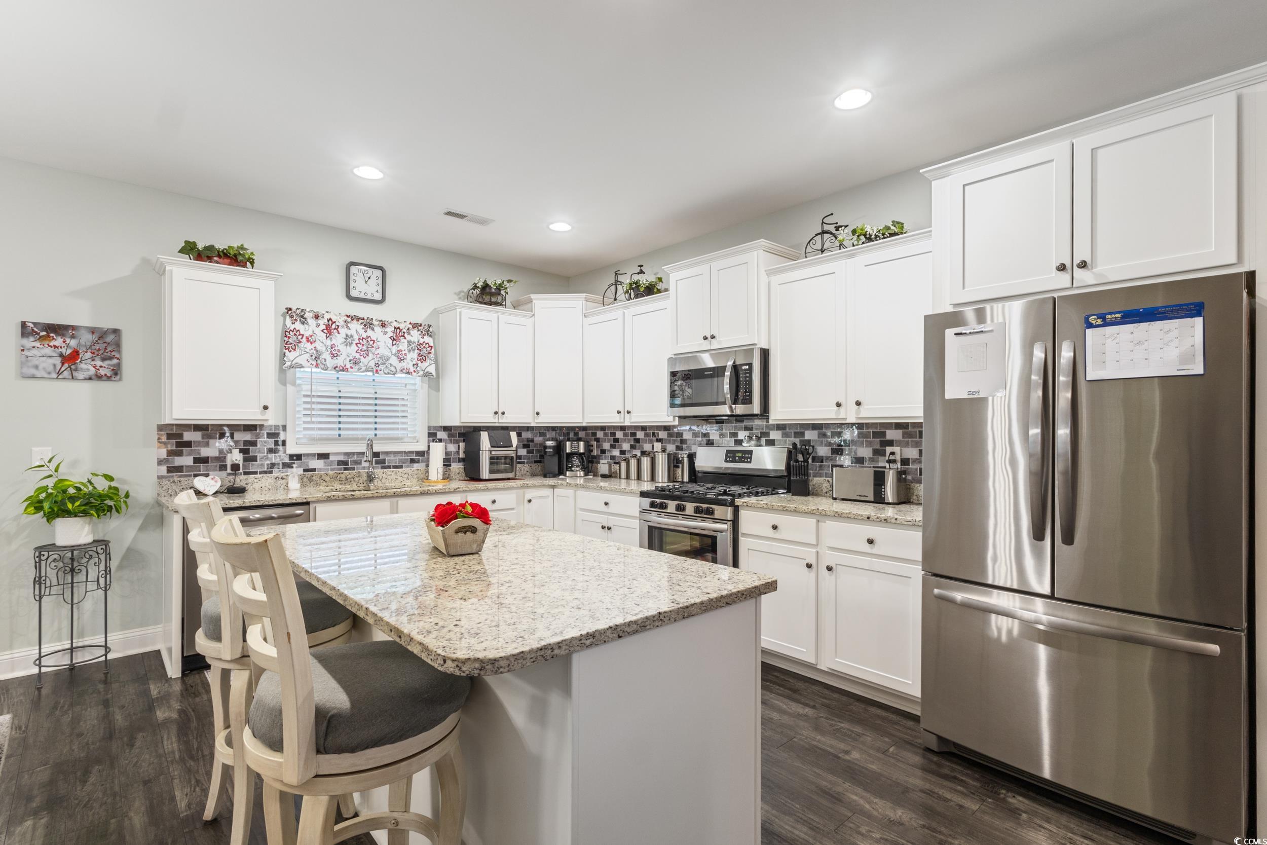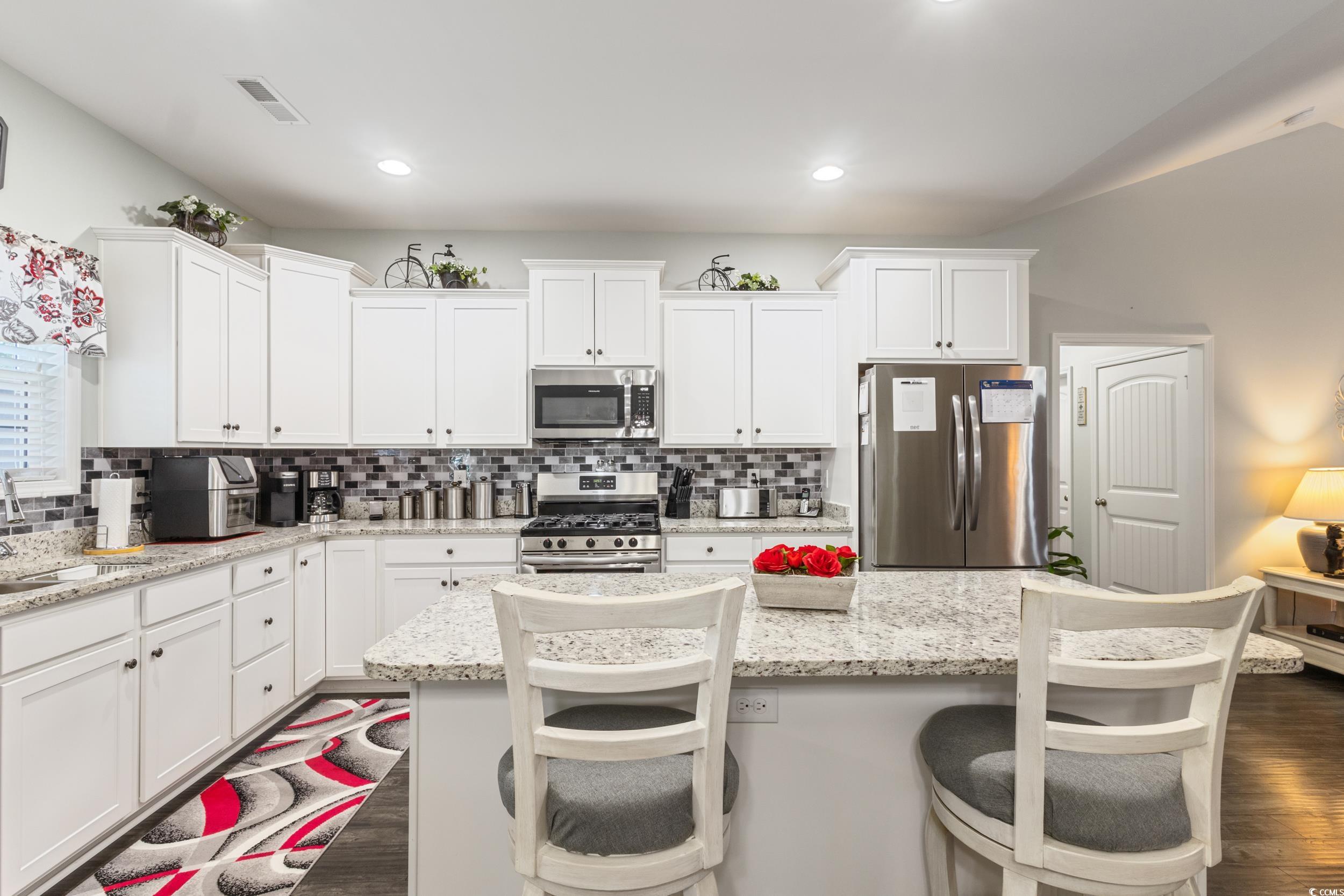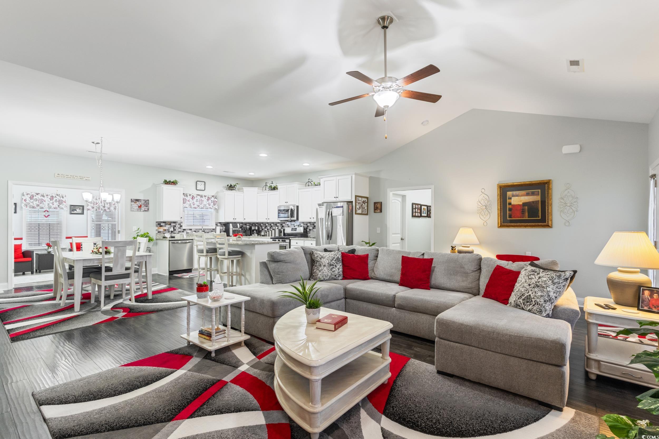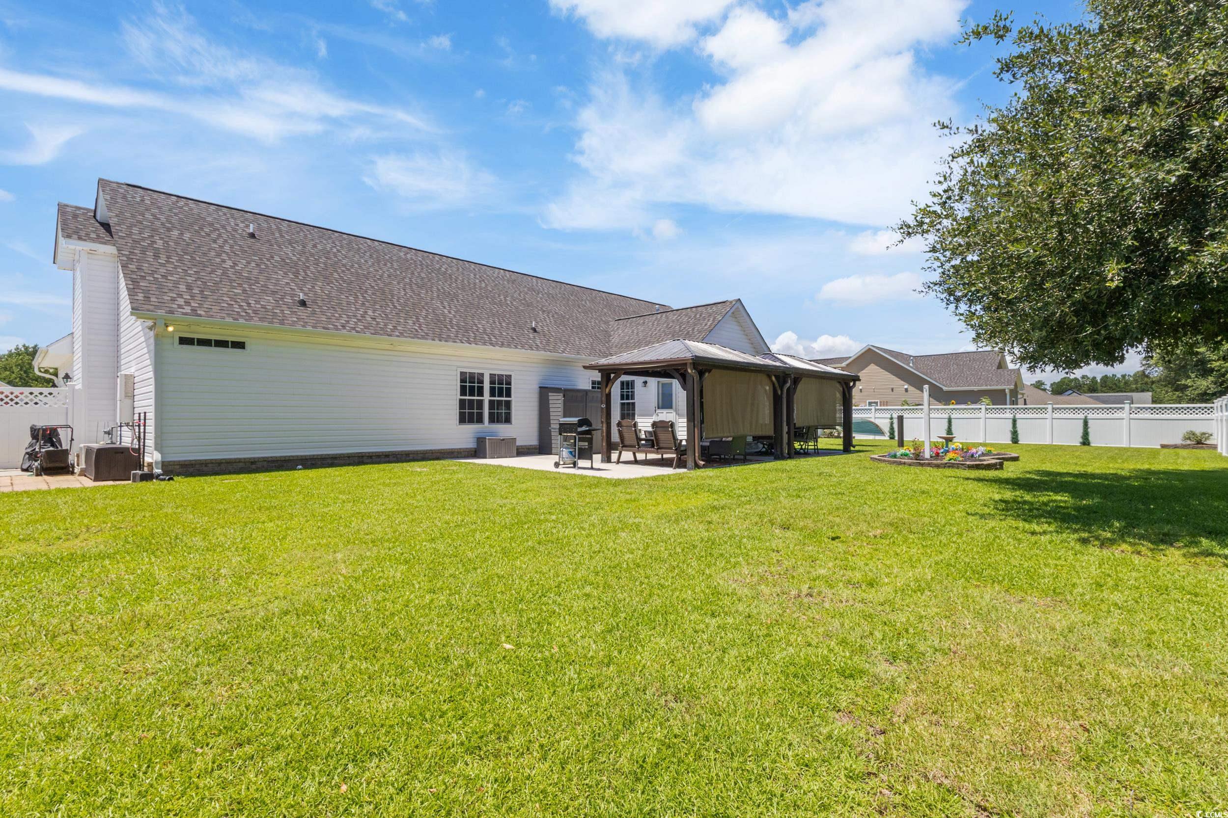 This beautiful home boasts 4 spacious bedrooms and 3 bathrooms, perfect for families or those who love to entertain. Upon entering, you'll notice the open-concept kitchen, living, and dining area that flows seamlessly together, creating a perfect space for socializing and everyday living. The kitchen is equipped with stunning granite countertops, a convenient work island, and sleek stainless steel appliances. The living room features a striking cathedral ceiling with a ceiling fan, adding to the sense of openness and airiness. Adjacent to the living area is the Carolina Room, providing additional space for relaxation and enjoyment. The primary bedroom is a serene retreat, complete with not one but two walk-in closets, a tray ceiling, and a ceiling fan. The ensuite primary bath is equally impressive, featuring a 4-foot shower and double sinks for added convenience. Additional features of this fantastic home include a laundry room with a utility sink, a Rinnai hot water system for efficient hot water supply, and natural gas for energy efficiency. The exterior of the property is just as impressive, with an attached 2-car garage, a 24x24 2 car detached garage and extended driveway all this allows for easy parking for approx 10 cars. The beautifully landscaped yard features a white vinyl privacy fence, complete with two 10x12 gazebos and approximately 600 square feet of patio space, perfect for outdoor entertaining or relaxation. A detached storage shed provides additional storage options, while landscape lighting, curb-scape edging, and a sprinkler system in the front yard add to the property's curb appeal. Located on a generous 0.51-acre lot, this home offers the perfect blend of indoor and outdoor living, making it an ideal choice for those seeking a spacious and comfortable residence. Easy access to Downtown Conway and the Riverwalk, Myrtle Beach and all the Grand Strand has to offer!