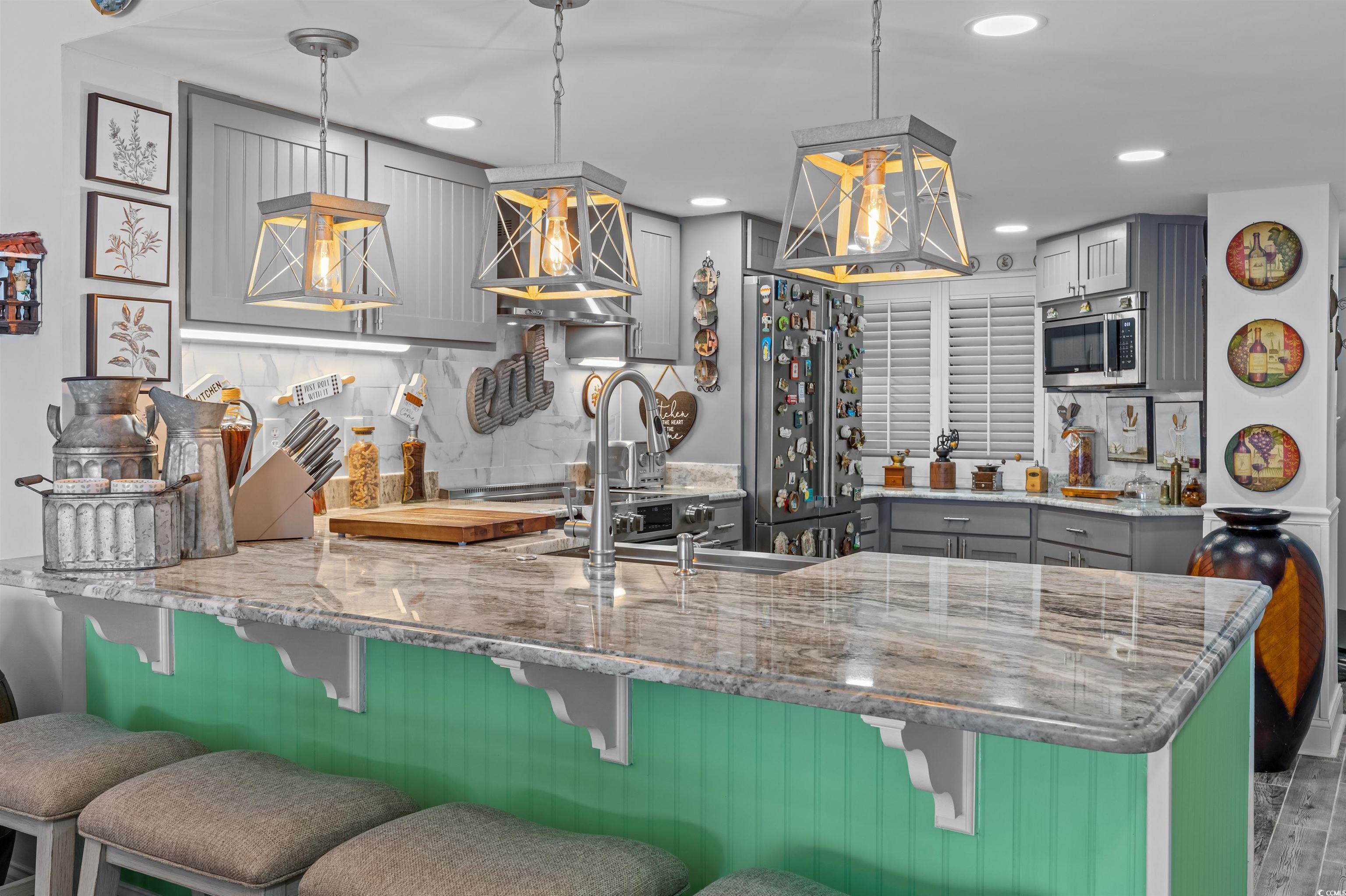 Please pause your search to check out the fine details of this beautiful two-bedroom oceanfront condo that literally left no stone unturned! The work and detail put into this condo become extremely clear as soon as you step into the foyer. This unit, located on the top floor of Xanadu II in North Myrtle Beach comes equipped with beautiful tile floors throughout the common area that are better than what you see in most luxury homes. The kitchen is unlike anything you will ever see, including marble countertops, a touch faucet, all Beko stainless steel appliances, and custom cabinets with soft close feature. Also, the convectional stove can also work as an air fryer, and the dishwasher is Wi-Fi! The generously sized living area is complemented with large window with its own seating area, and the sectional couch has built-in speakers and can be designed in any configuration you desire. The master bedroom, which is Ocean Front, has a nice walk-in closet, its own access to the balcony, and a master bathroom, that will make your jaw drop complete with a beautifully tiled, walk-in shower, upgraded vanities, and even a view of the coast from your shower. The second bedroom is of abundant size as well, and the second full bathroom also has a tiled shower and upgraded vanity. This unit also comes with a large laundry room, equipped with top-notch Wi-Fi washer and dryer, giving you all the comforts of home. However, lets not forget everybodys favorite part, which would be the oversized balcony that wraps around the condo to give you a beautiful view of the coast and Hog Island! Did I mention location? Xanadu II is only minutes away from all the shopping, ocean front restaurants, and pubs that Cherry Grove and Sea Mountain Highway have to offer. I could go on all day about this condo, but honestly, it needs to be viewed in person, so book your appointment today and dont miss out!