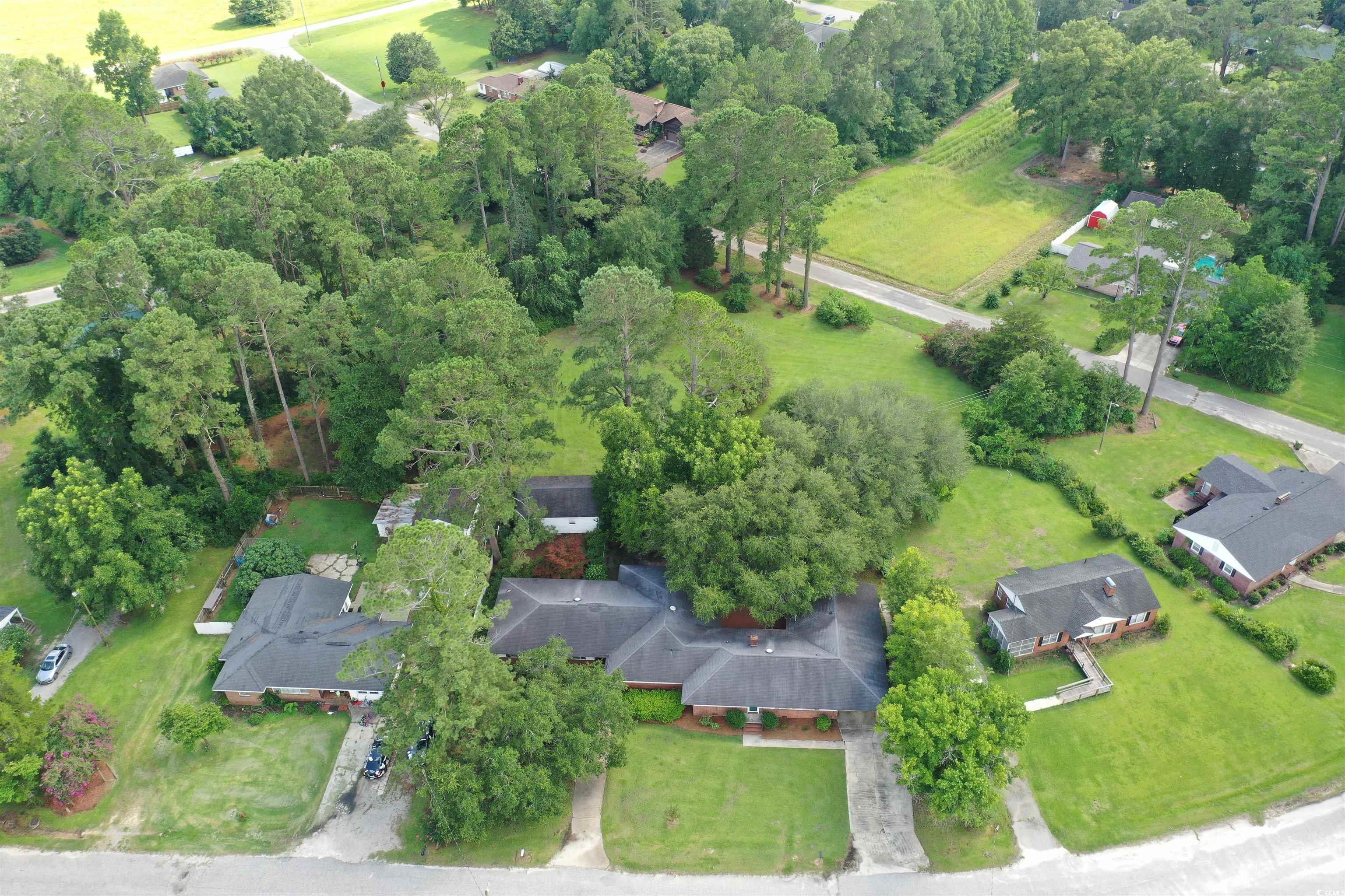 Wow! This stunning property offers a spacious layout with 5 bedrooms, 3 full bathrooms, and a half bathroom, plus two versatile flex or bonus rooms. The main home is estimated at 3,000 heated square feet, and with the attached apartment, the total heated square footage is approximately 4,000. Inside, youll find beautiful features such as crown dentil molding, a formal dining room, formal living room, and an oversized den with vaulted ceilings. The home has a mix of updates and charm, with new carpet and linoleum in some areas, while preserving the character of original hardwood floors in others. Sitting on approximately 1.67 acres, the property is serviced by three HVAC units (installed in July 2014, August 2024, and July 2025). A fantastic addition is the attached mother-in-law suite/apartment, connected by a breezeway to offer both convenience and privacy. This separate living space is estimated at 1,000 heated square feet and includes one bedroom, one full bathroom, a fully equipped kitchen, and a spacious living room. Both the main house and apartment have separate electric, water, and sewer meters, as well as their own driveways, offering a truly independent setup. Located approximately 63 miles from the beach, youre close enough to enjoy coastal living when you choose, yet far enough to avoid the hustle and traffic. Buyer is responsible for verifying all measurements. Owner is related to listing agent.